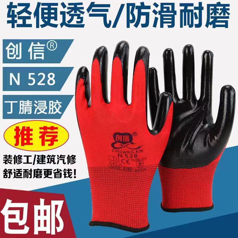 정품 Chuangxin N518N528 니트릴 코팅 보호 노동 보호 고무 내마모성 통기성 미끄럼 방지 디핑 장갑 얇은스토어 가기