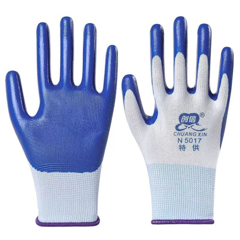 정품 Chuangxin N518N528 니트릴 코팅 보호 노동 보호 고무 내마모성 통기성 미끄럼 방지 디핑 장갑 얇은