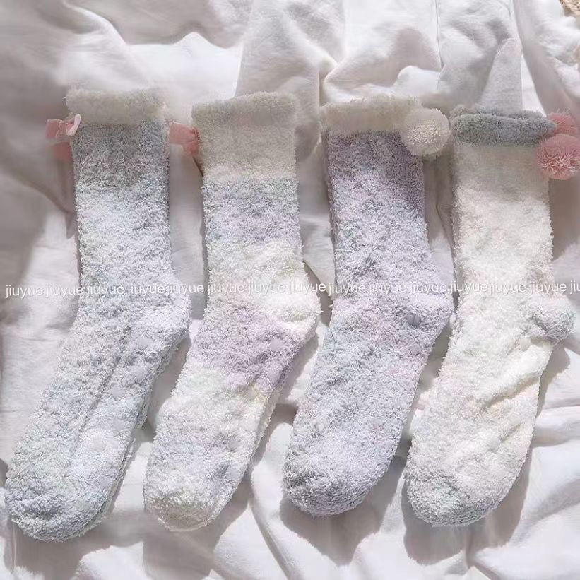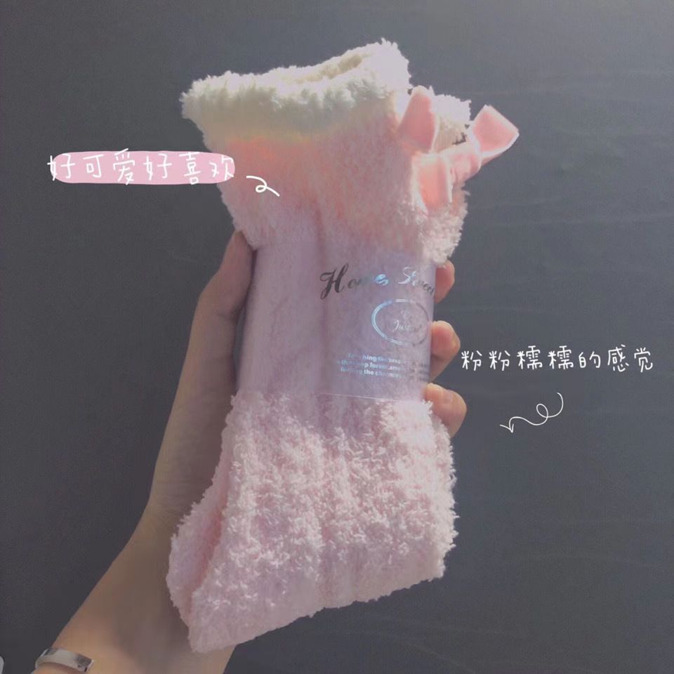 마카롱 색상 대비 귀여운 산호 양털 수면 양말 어린이 가을과 겨울 두꺼운 따뜻한 실리콘 홈 바닥 봉제 양말스토어 가기