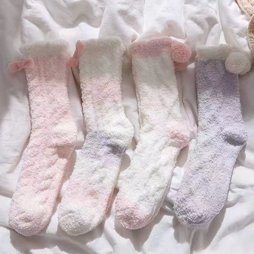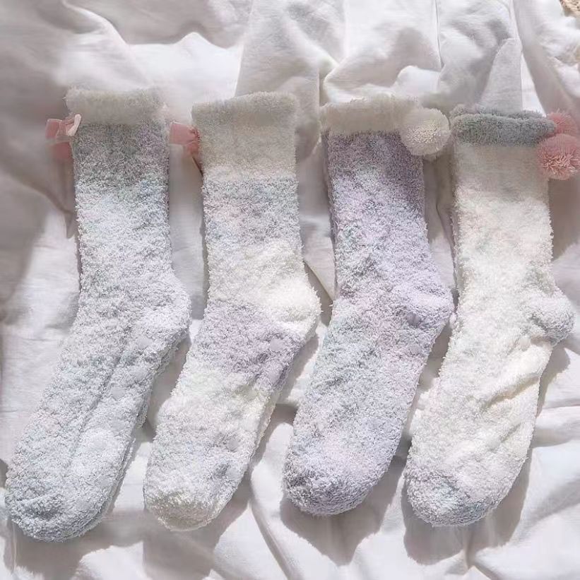 마카롱 색상 대비 귀여운 산호 양털 수면 양말 어린이 가을과 겨울 두꺼운 따뜻한 실리콘 홈 바닥 봉제 양말