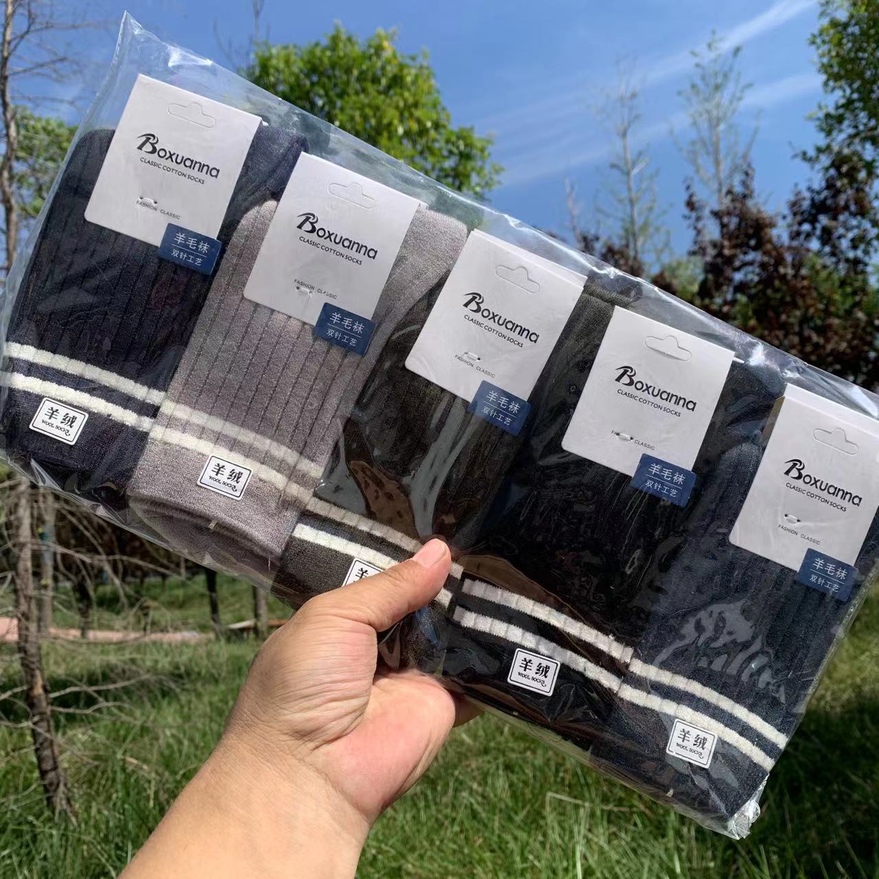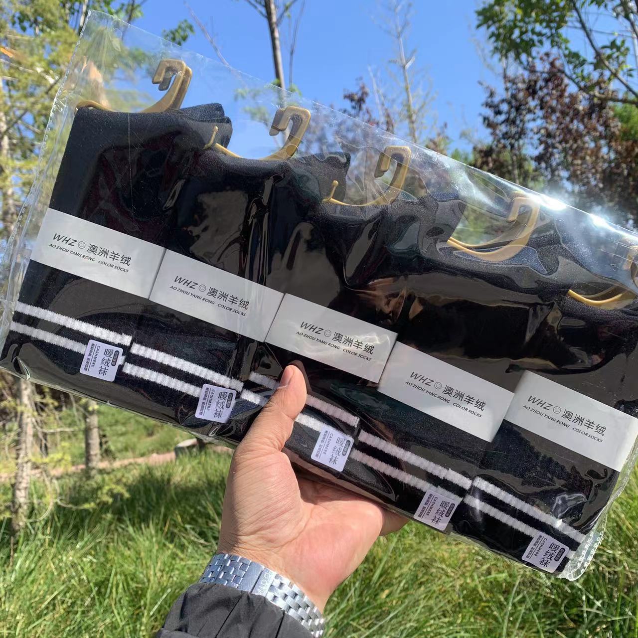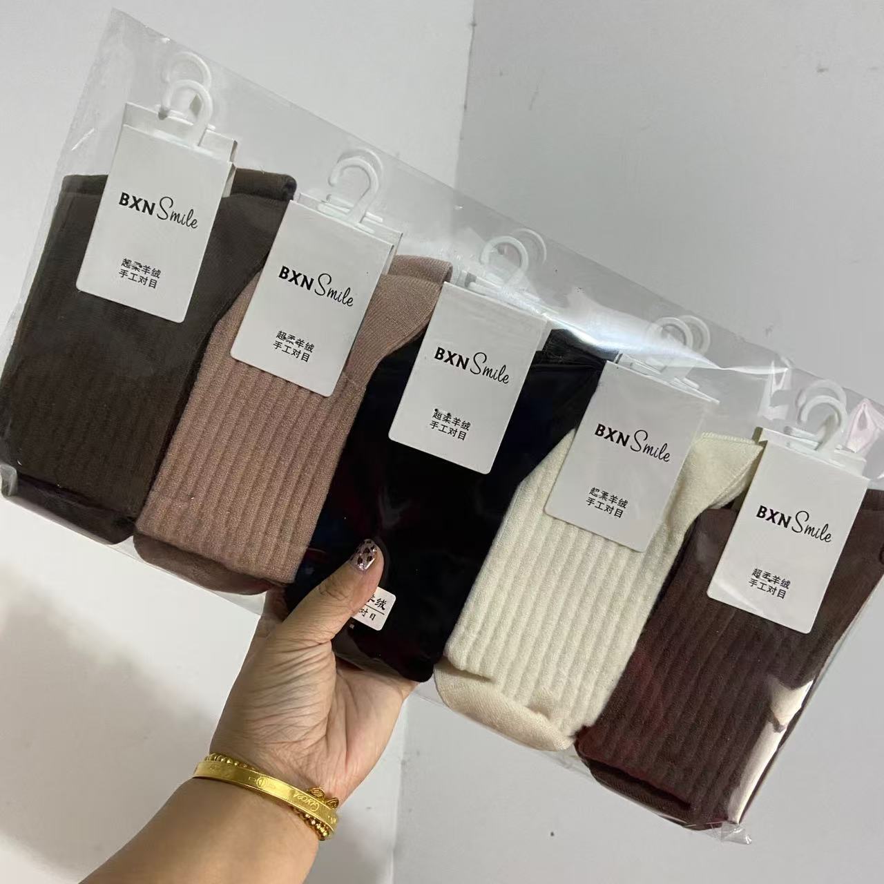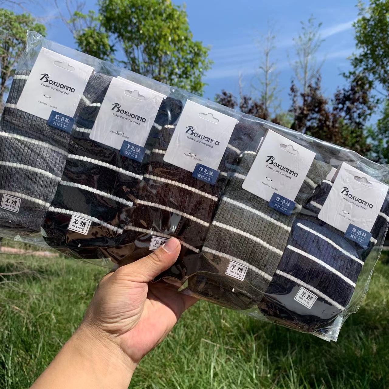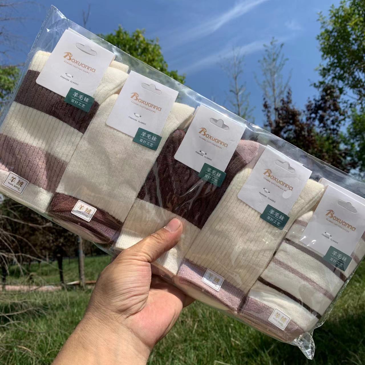 남성과 여성을위한 캐시미어 양말 가을과 겨울 중간 배럴 두꺼운 캐시미어 스타킹 스택 단색 줄무늬 이중 바늘 공예스토어 가기