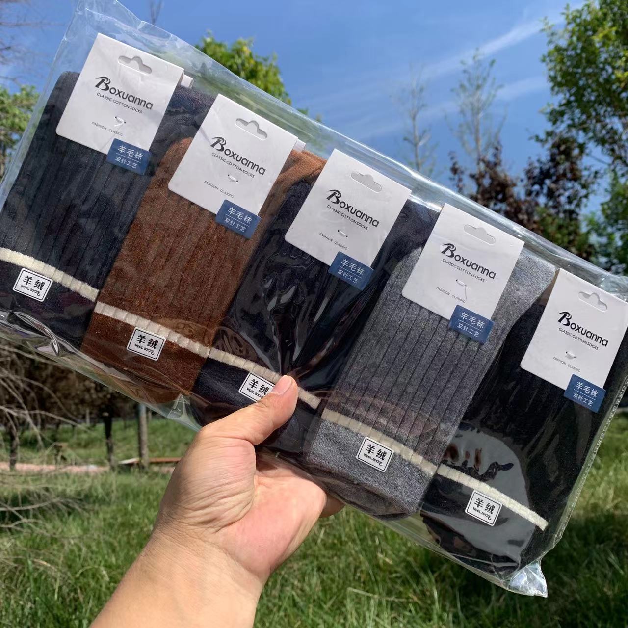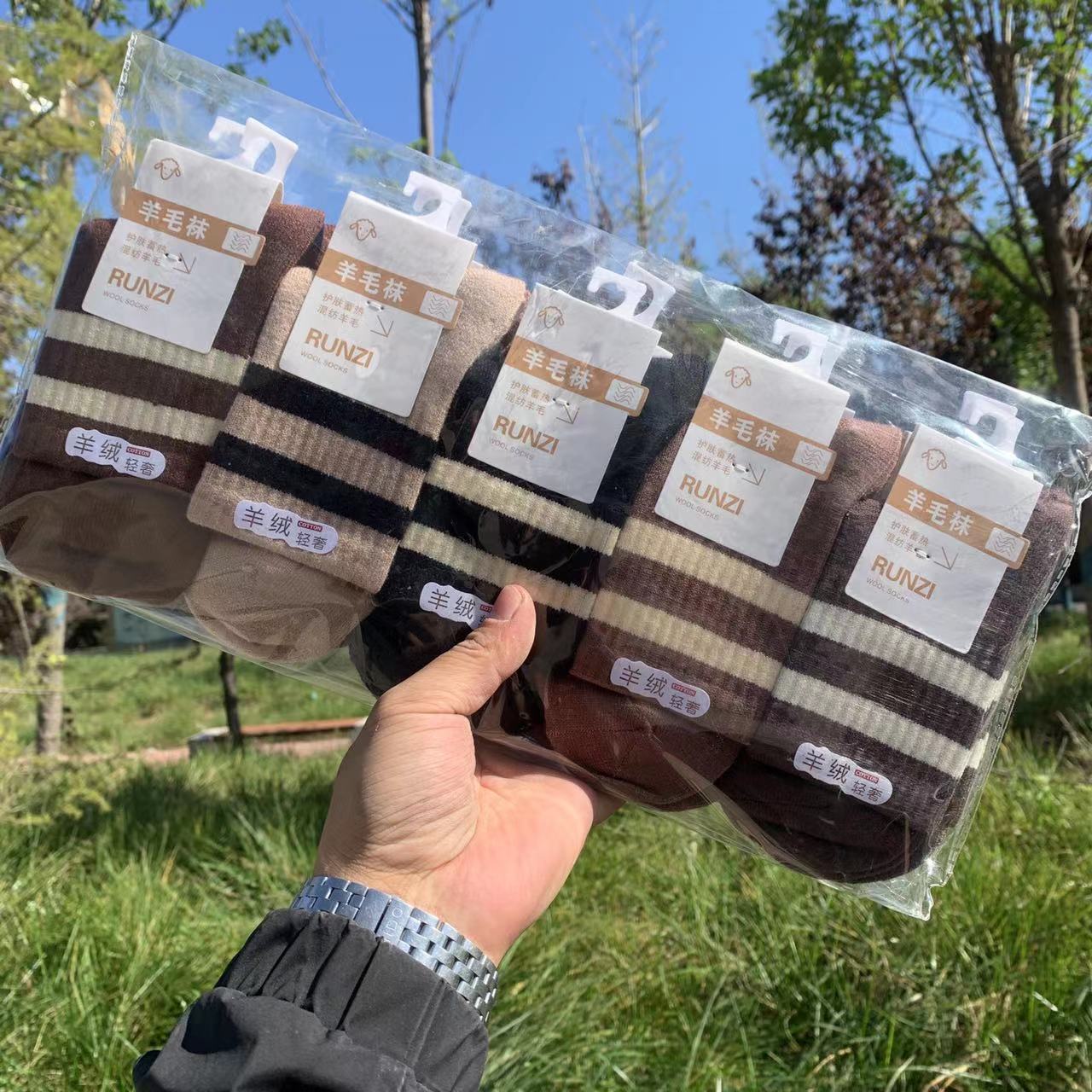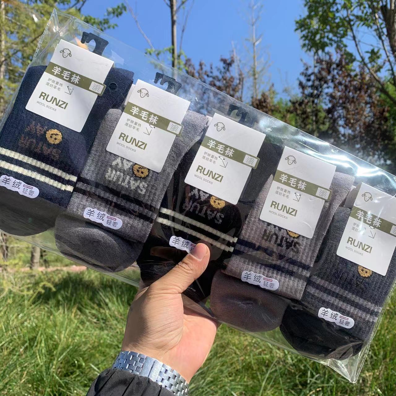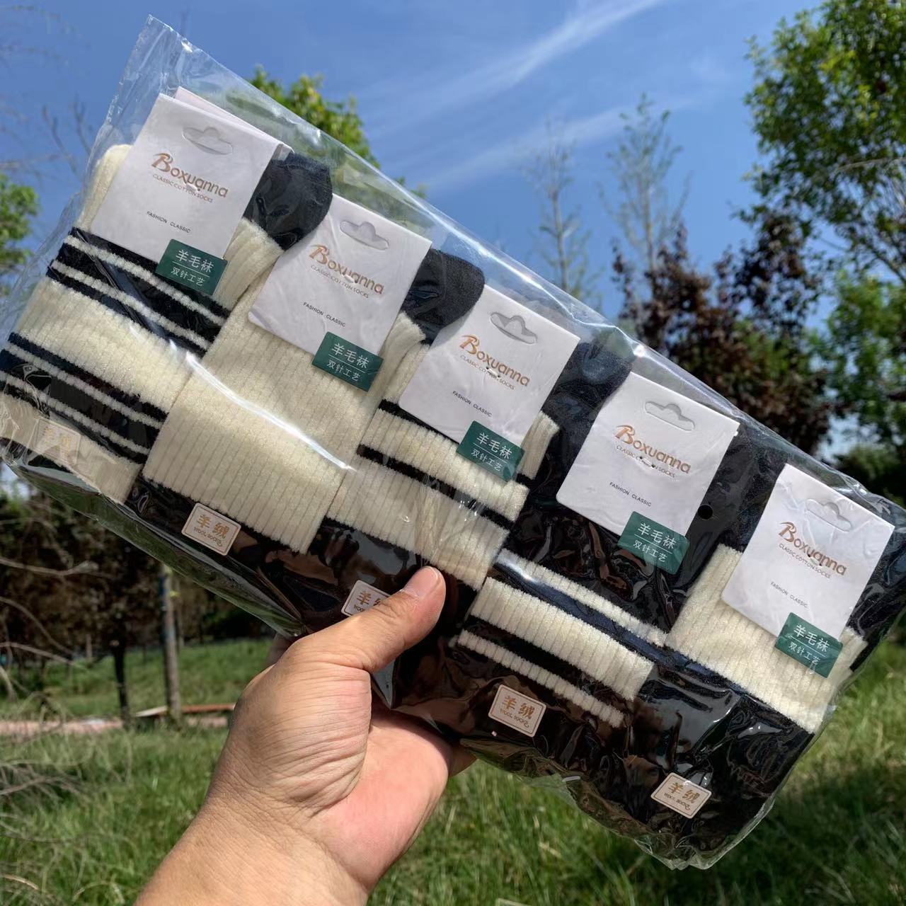 남성과 여성을위한 캐시미어 양말 가을과 겨울 중간 배럴 두꺼운 캐시미어 스타킹 스택 단색 줄무늬 이중 바늘 공예스토어 가기
