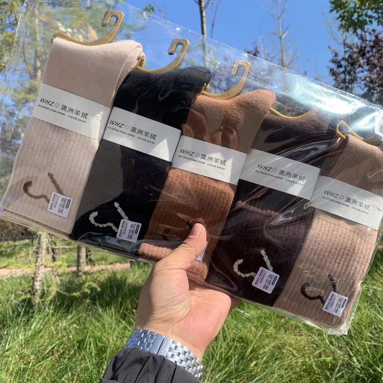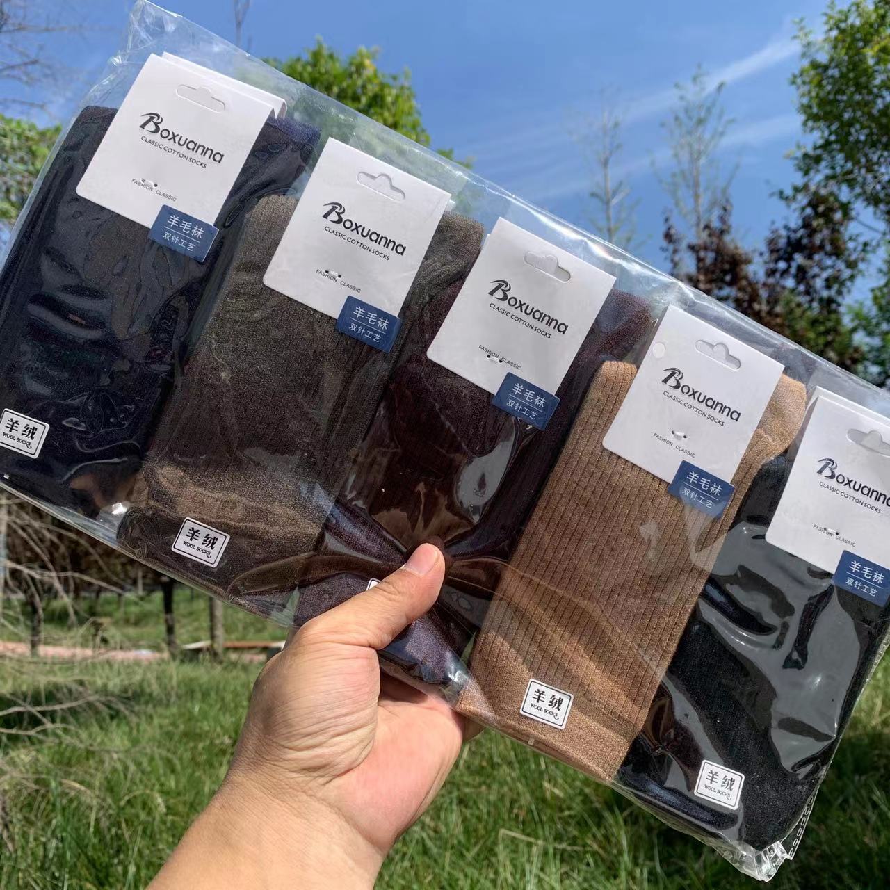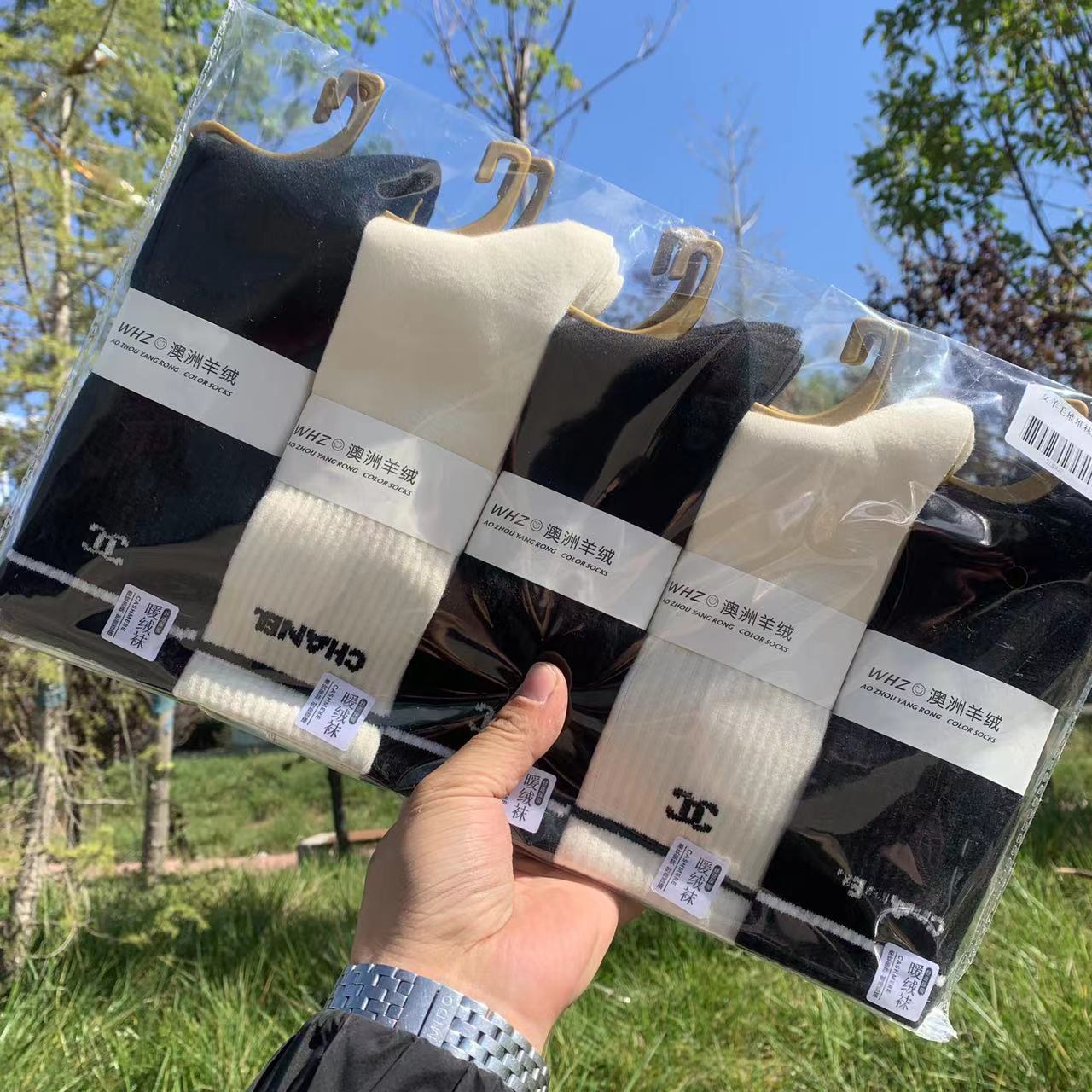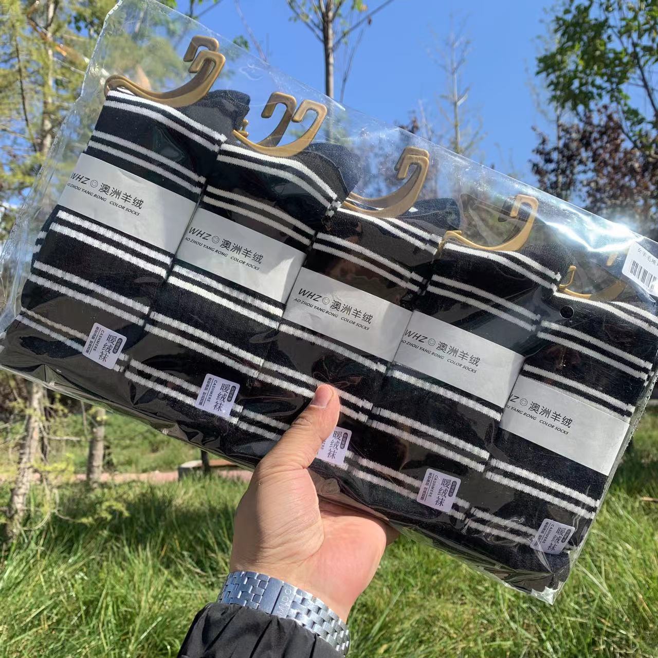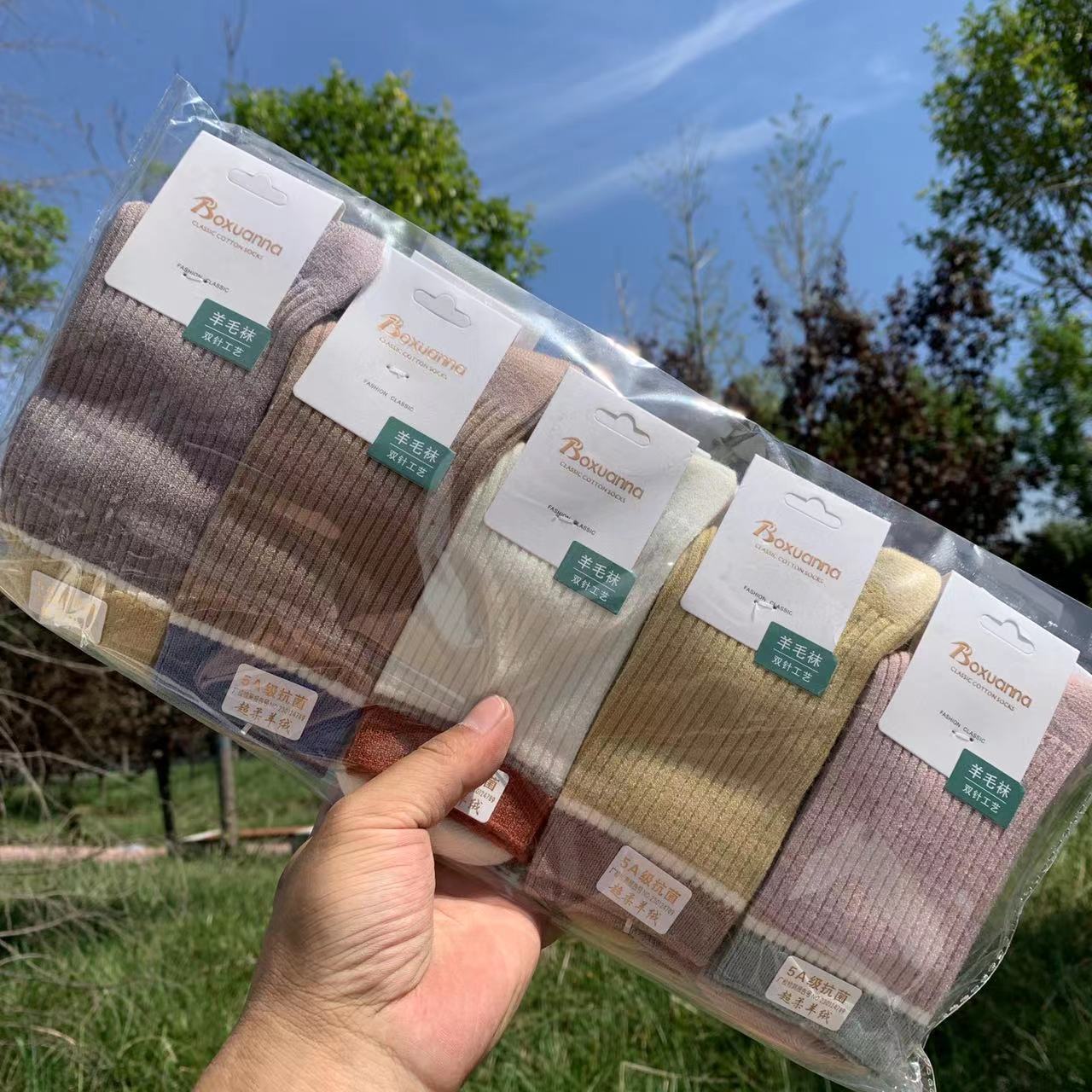 남성과 여성을위한 캐시미어 양말 가을과 겨울 중간 배럴 두꺼운 캐시미어 스타킹 스택 단색 줄무늬 이중 바늘 공예스토어 가기