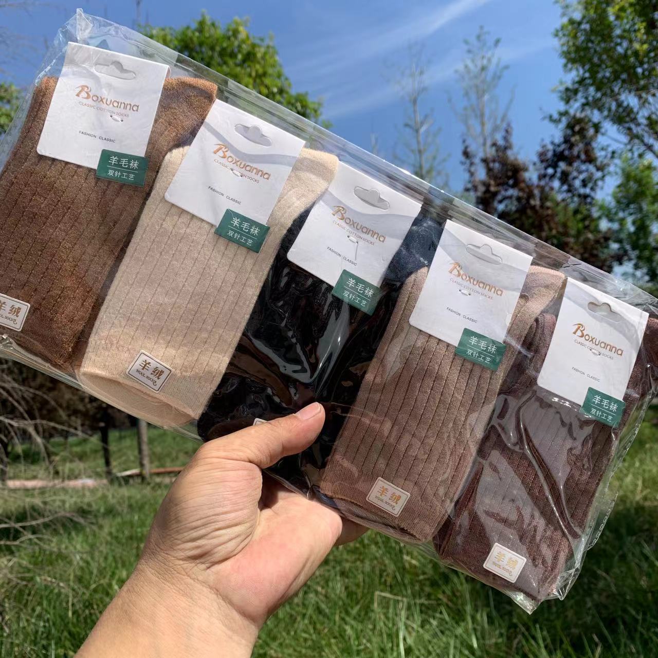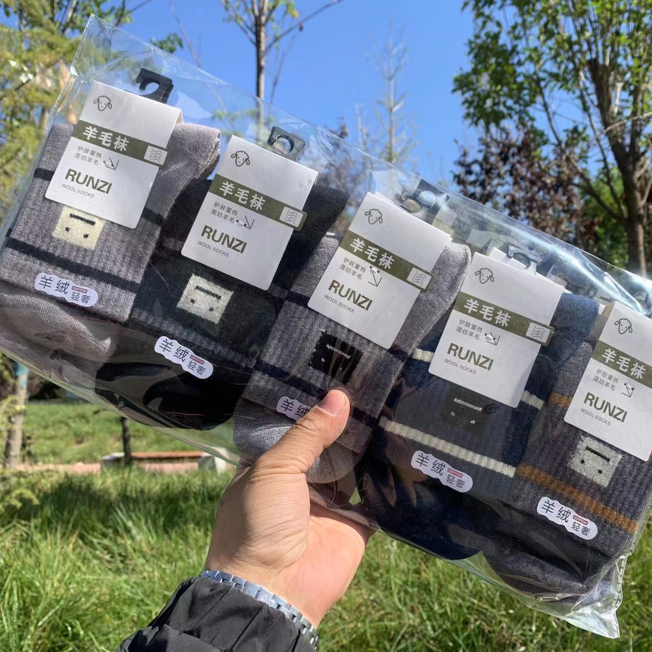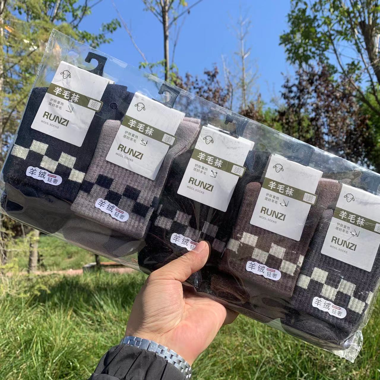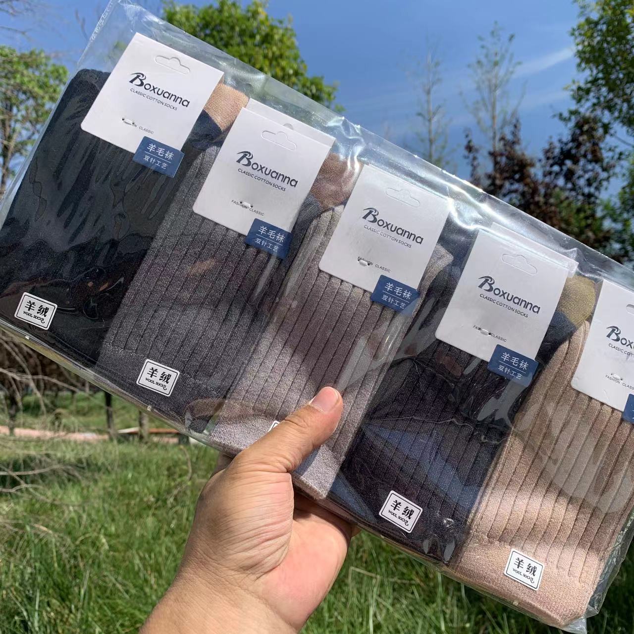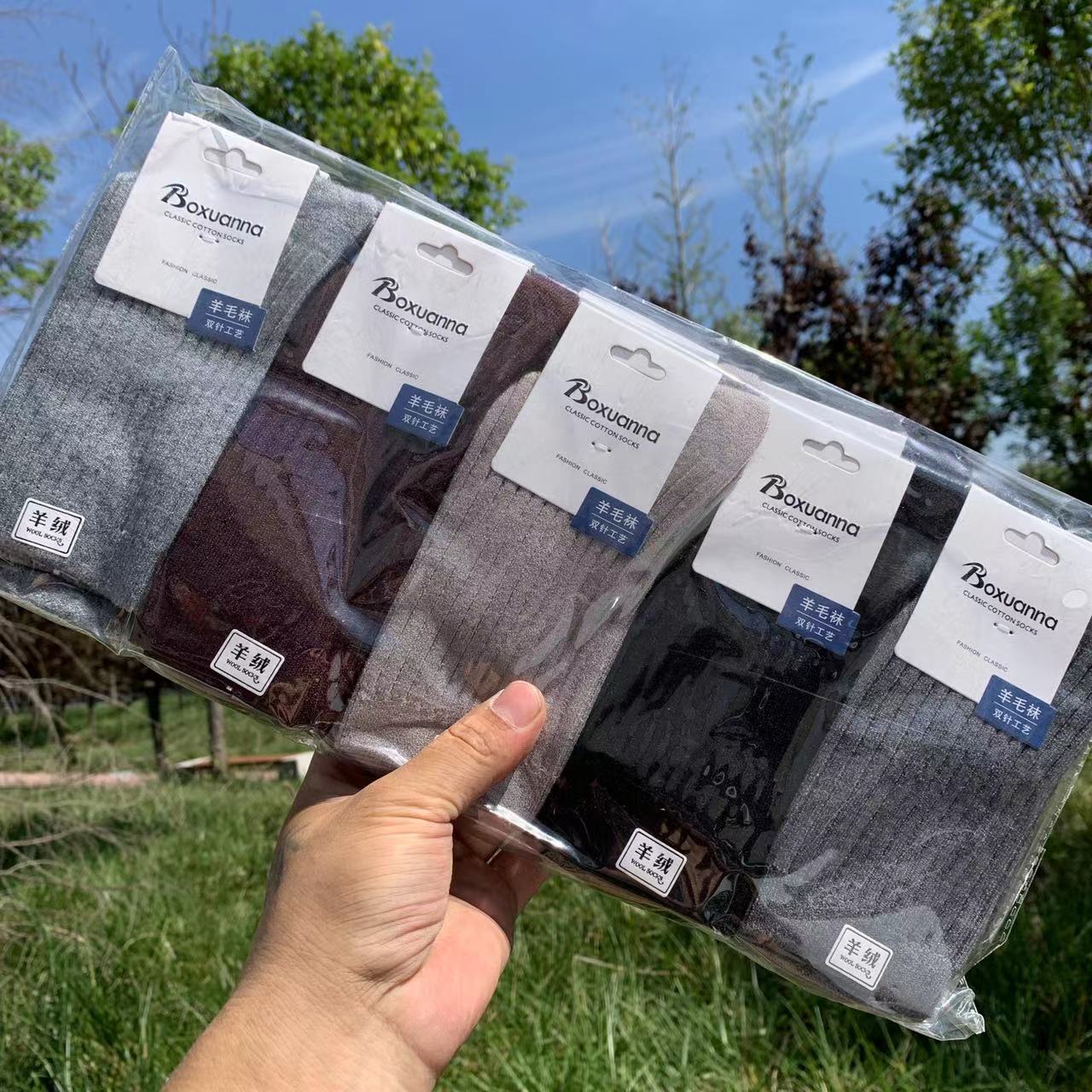 남성과 여성을위한 캐시미어 양말 가을과 겨울 중간 배럴 두꺼운 캐시미어 스타킹 스택 단색 줄무늬 이중 바늘 공예스토어 가기