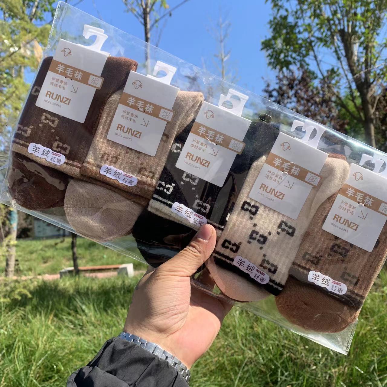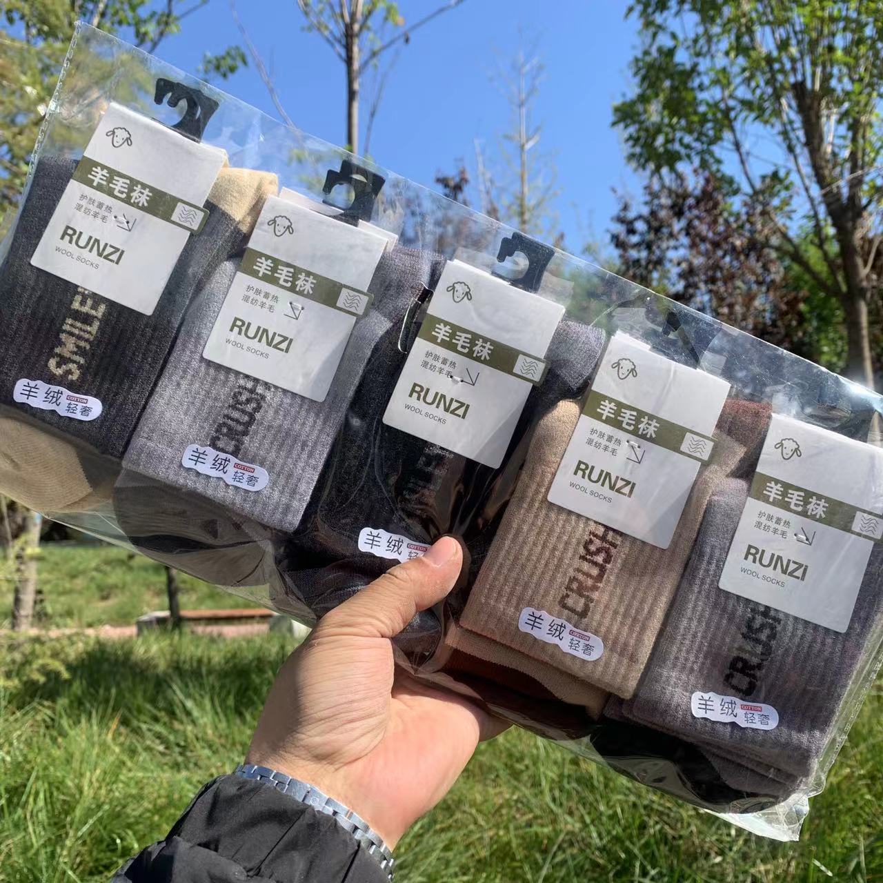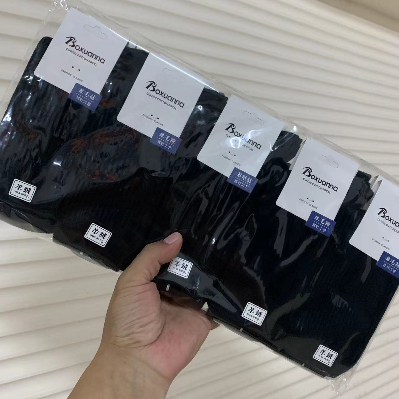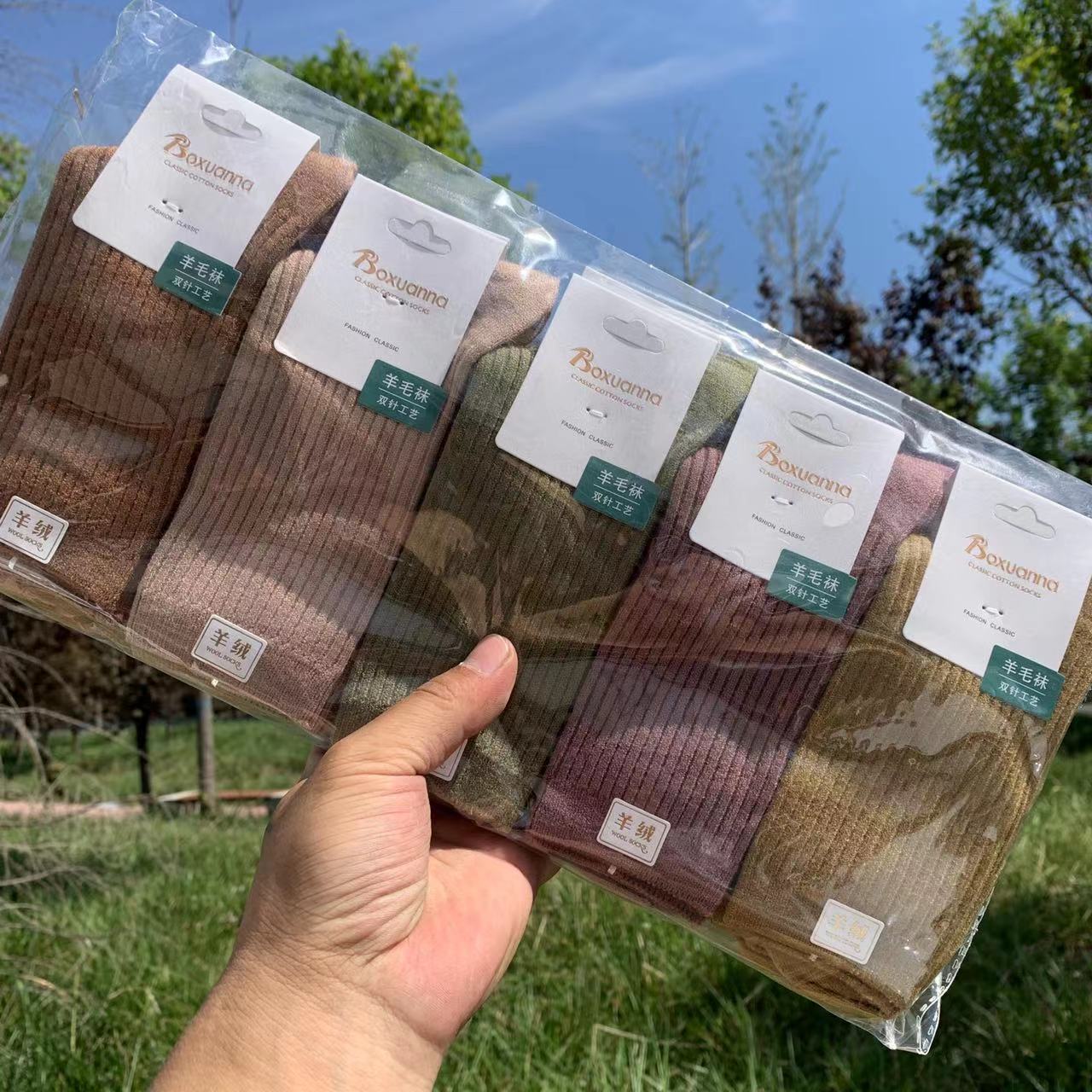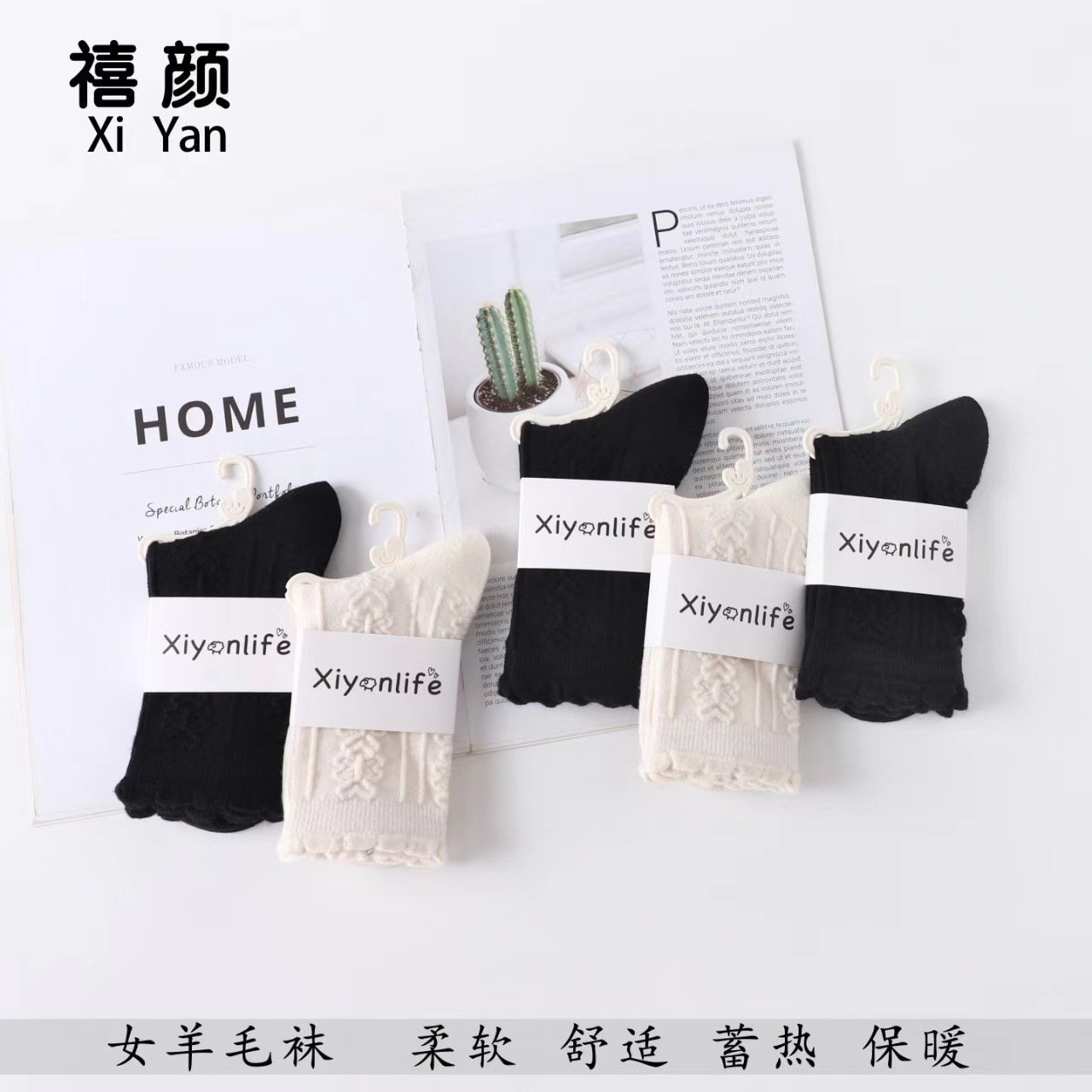 남성과 여성을위한 캐시미어 양말 가을과 겨울 중간 배럴 두꺼운 캐시미어 스타킹 스택 단색 줄무늬 이중 바늘 공예스토어 가기