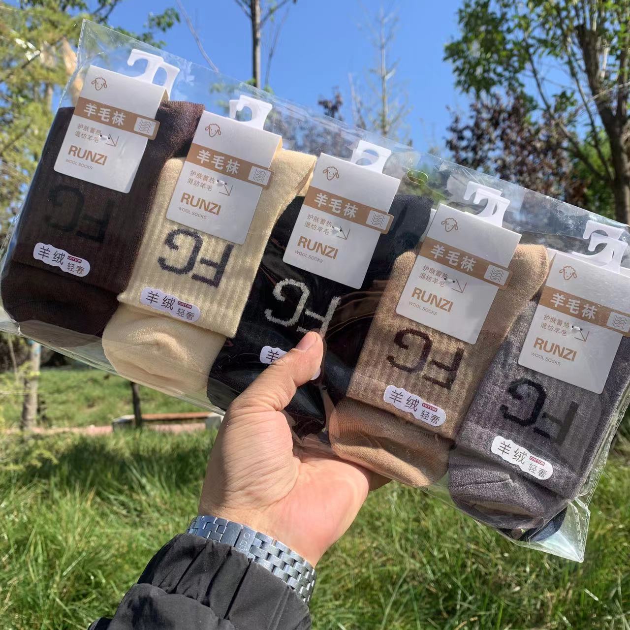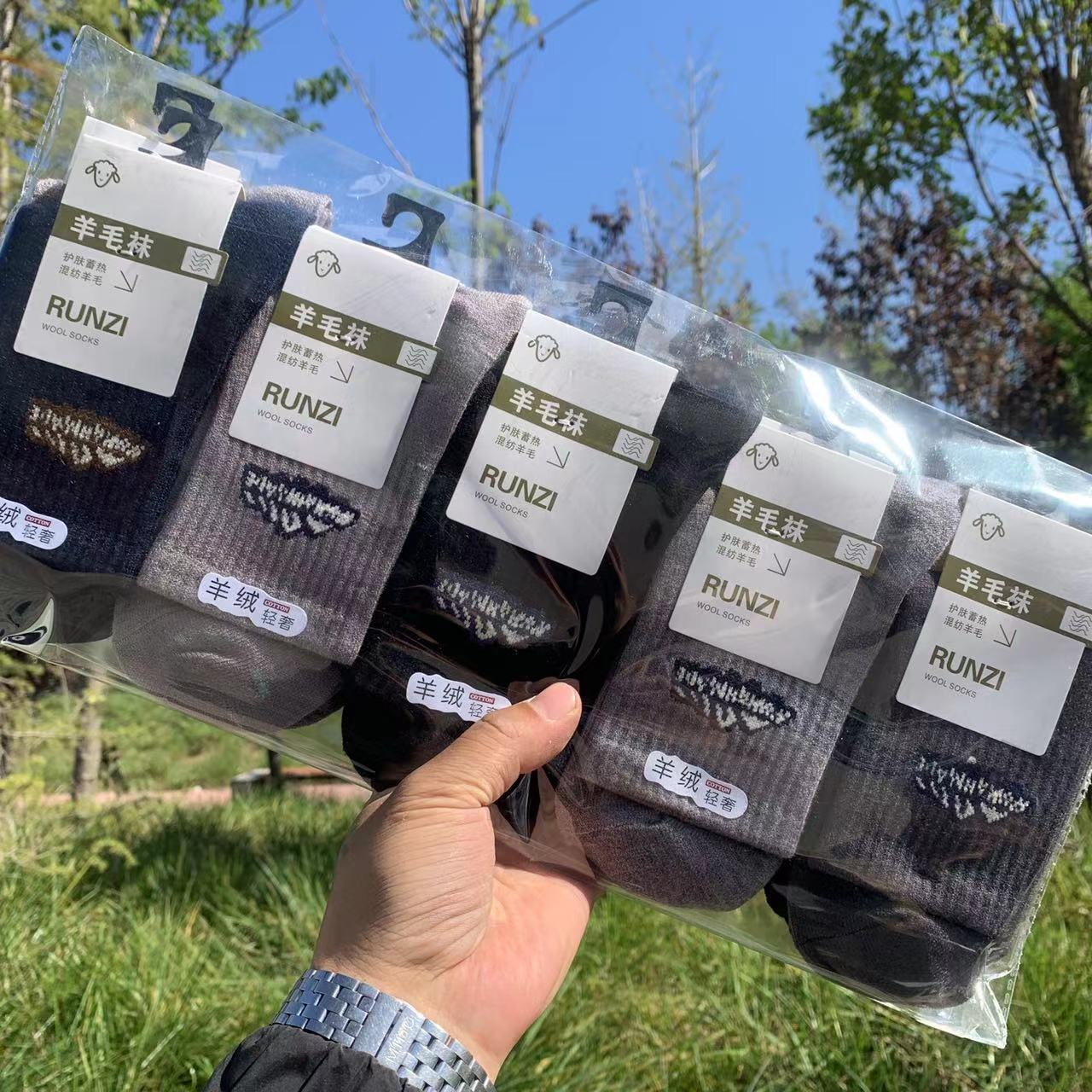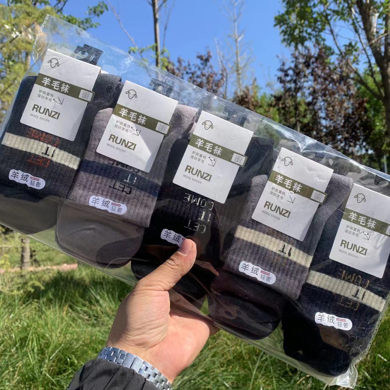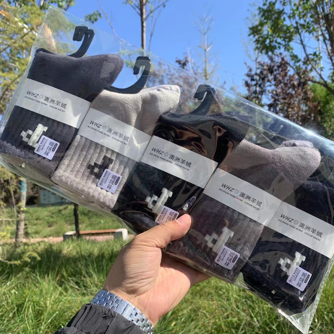 남성과 여성을위한 캐시미어 양말 가을과 겨울 중간 배럴 두꺼운 캐시미어 스타킹 스택 단색 줄무늬 이중 바늘 공예스토어 가기