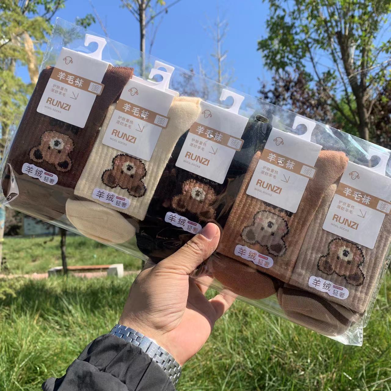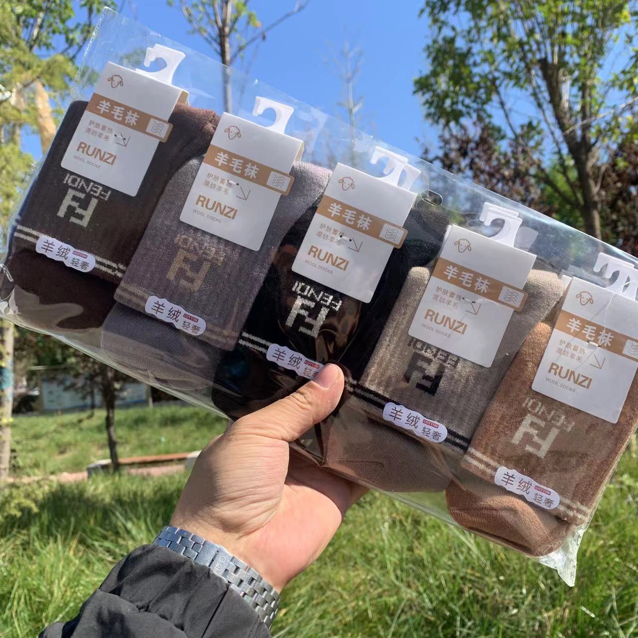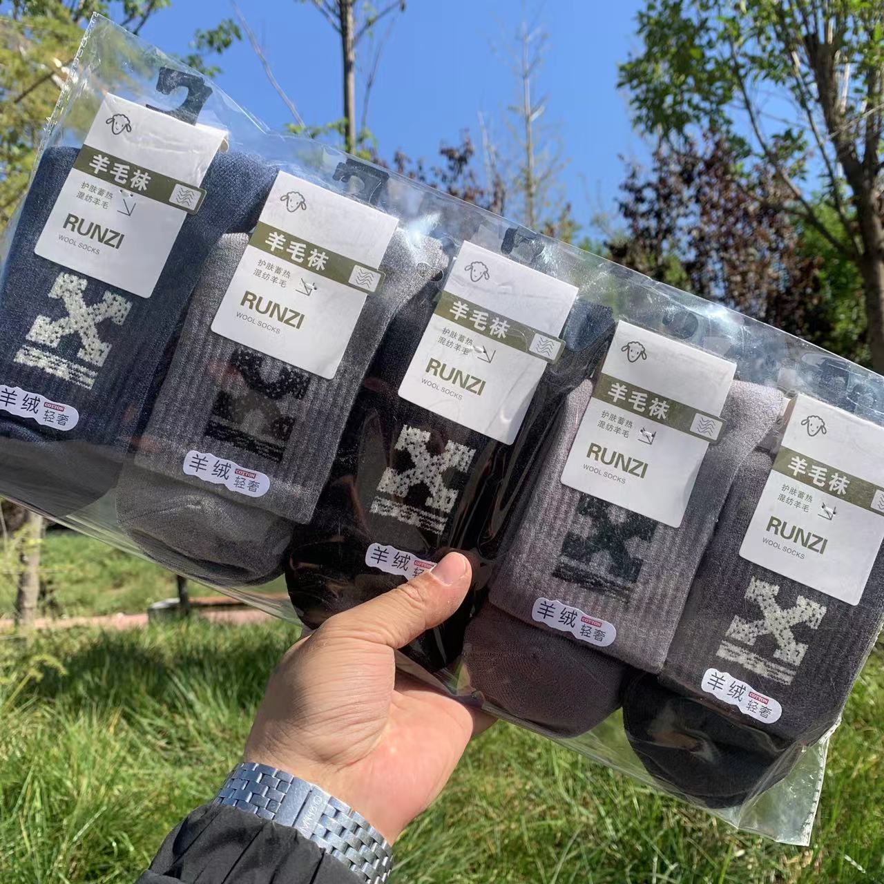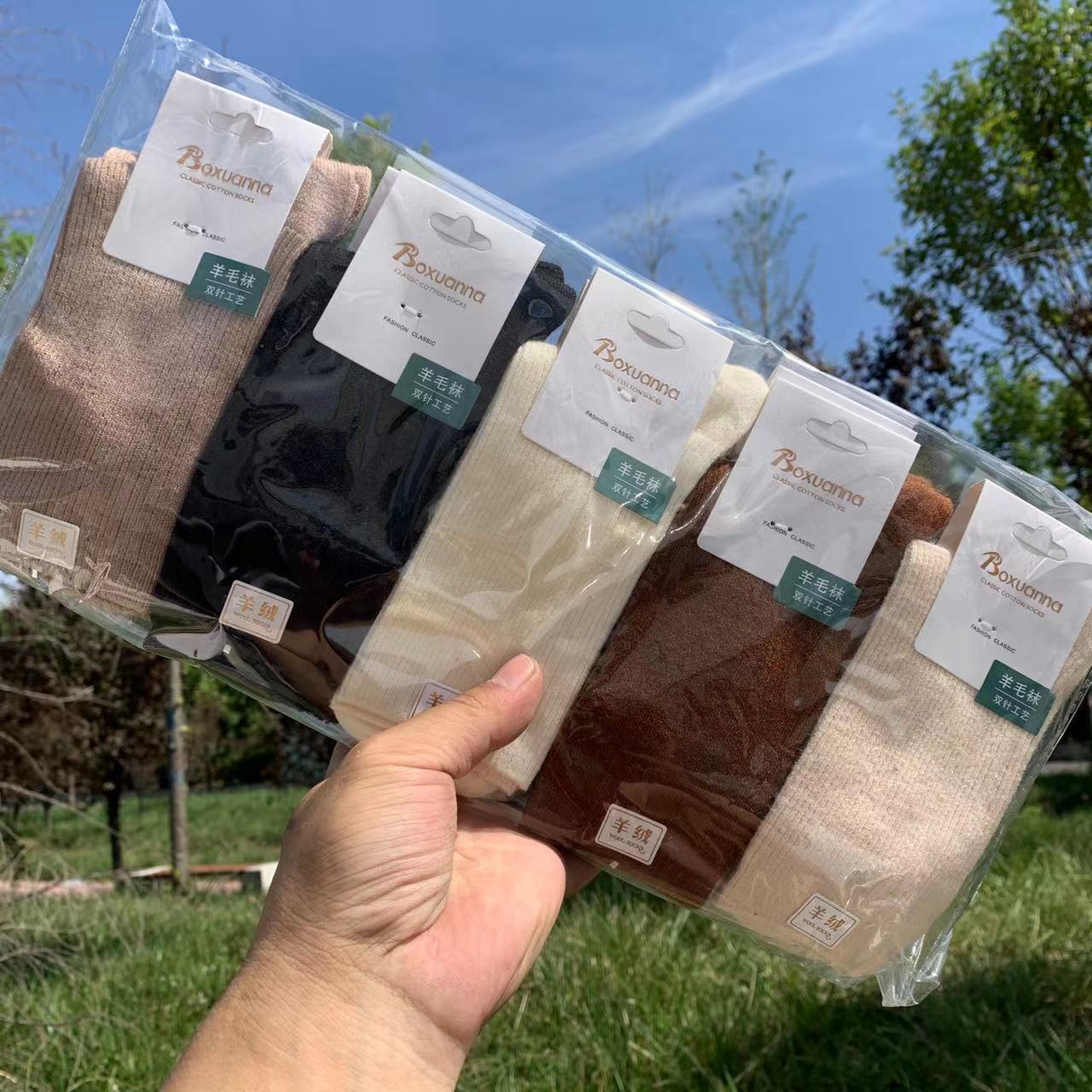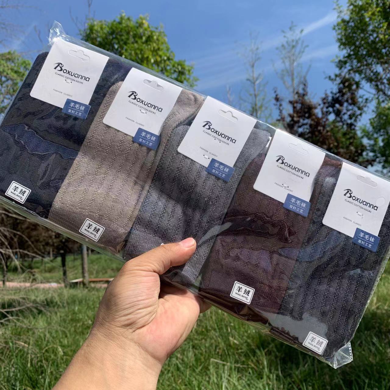 남성과 여성을위한 캐시미어 양말 가을과 겨울 중간 배럴 두꺼운 캐시미어 스타킹 스택 단색 줄무늬 이중 바늘 공예스토어 가기