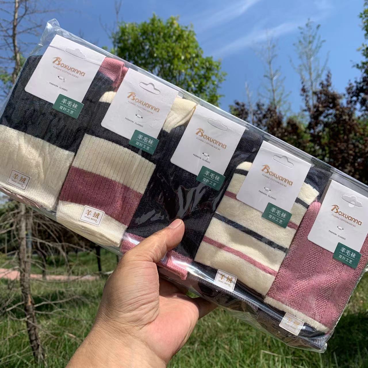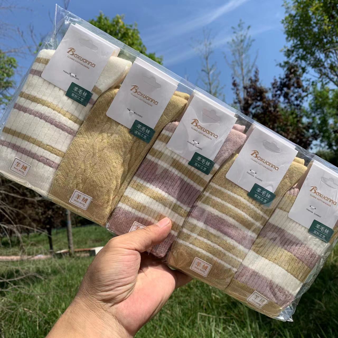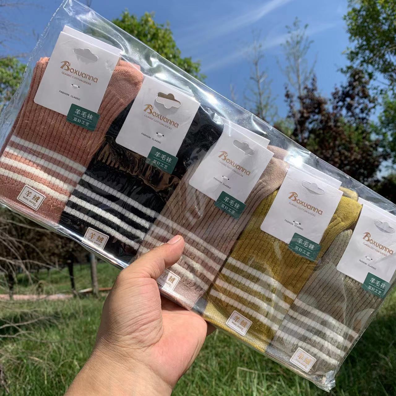 남성과 여성을위한 캐시미어 양말 가을과 겨울 중간 배럴 두꺼운 캐시미어 스타킹 스택 단색 줄무늬 이중 바늘 공예