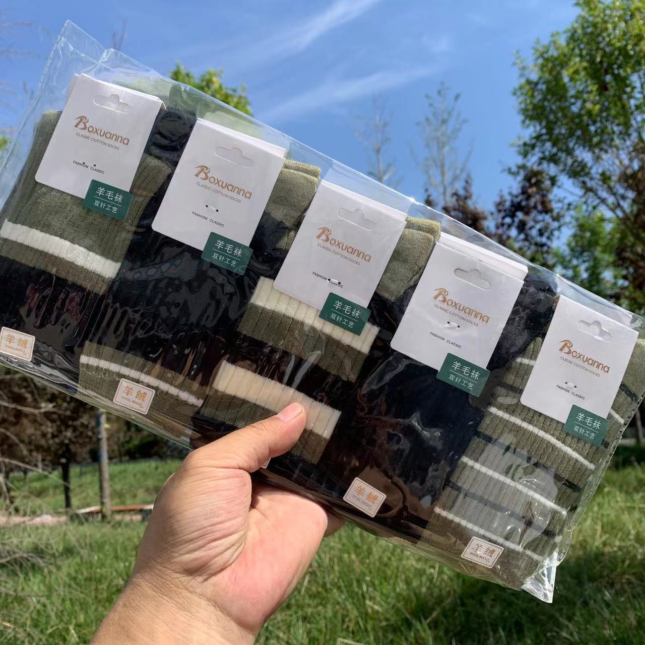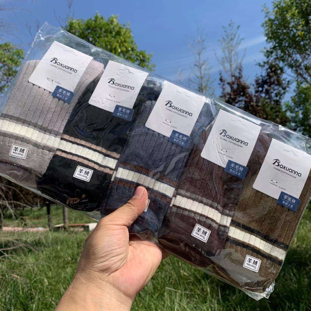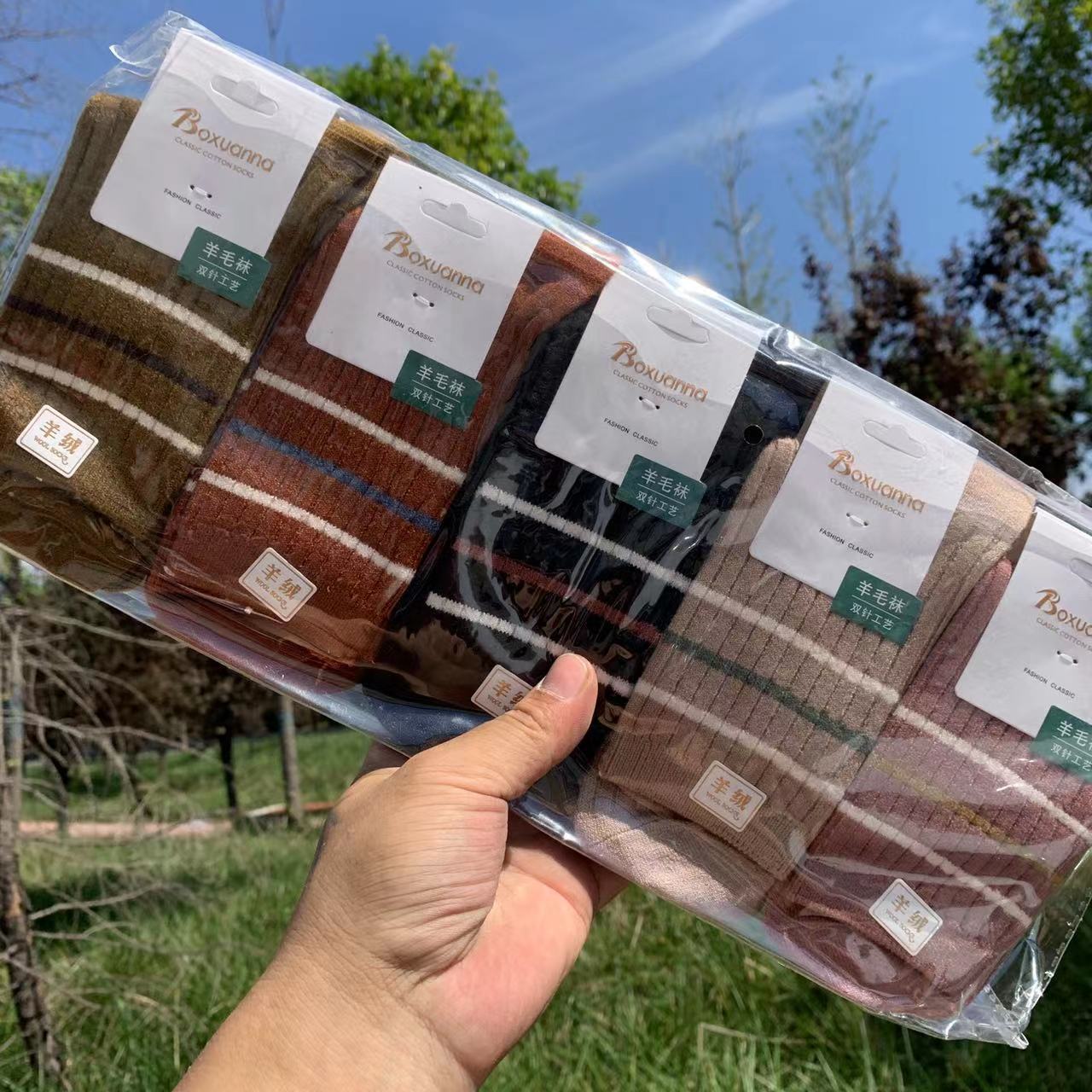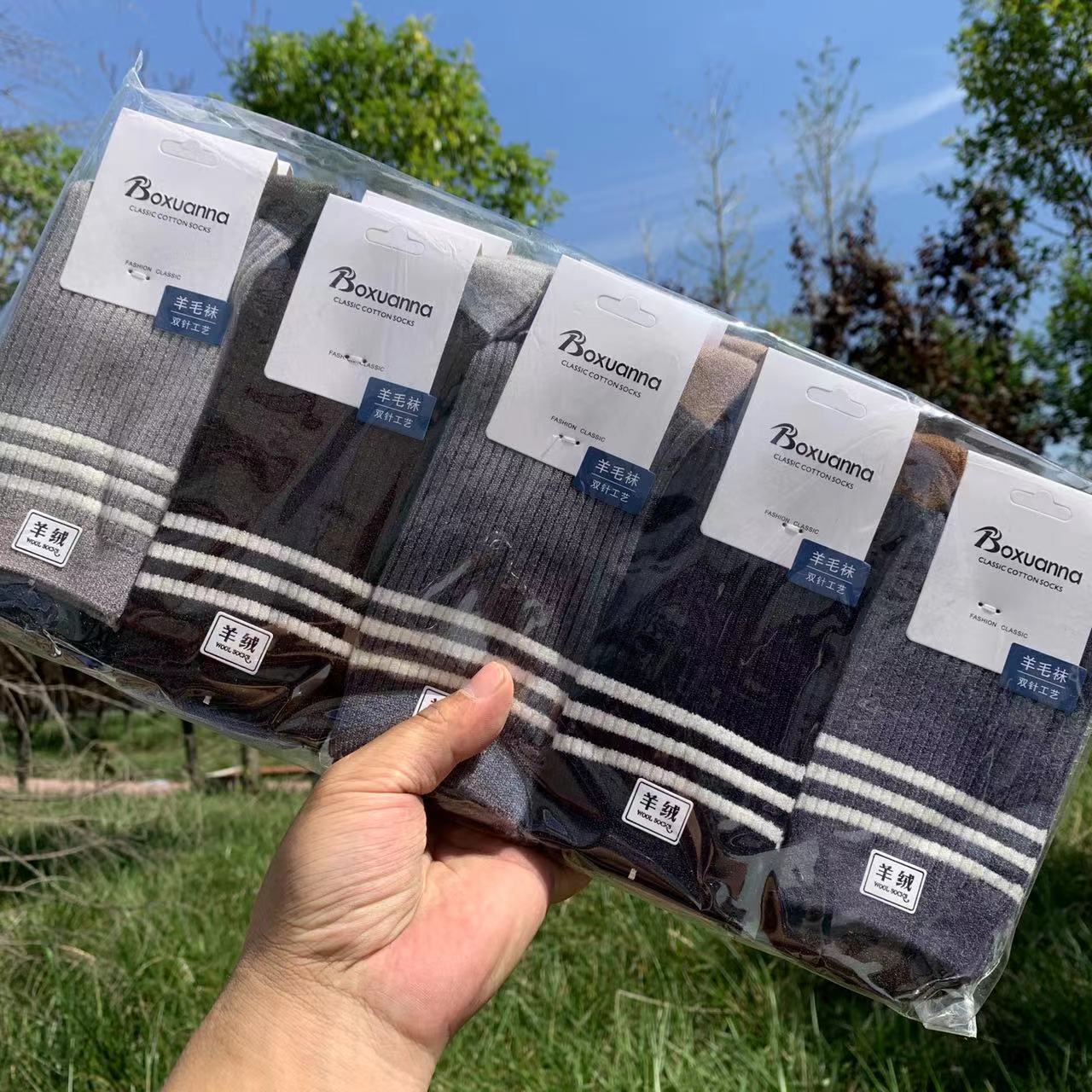 남성과 여성을위한 캐시미어 양말 가을과 겨울 중간 배럴 두꺼운 캐시미어 스타킹 스택 단색 줄무늬 이중 바늘 공예