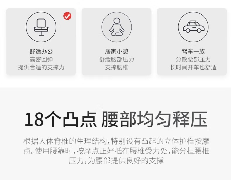 느린 반발 메모리폼 허리 쿠션, 해외판 마사지 포인트 쿠션, 돌출형 쿠션, 등받이 허리 보호 쿠션, 옆으로 자는 베개