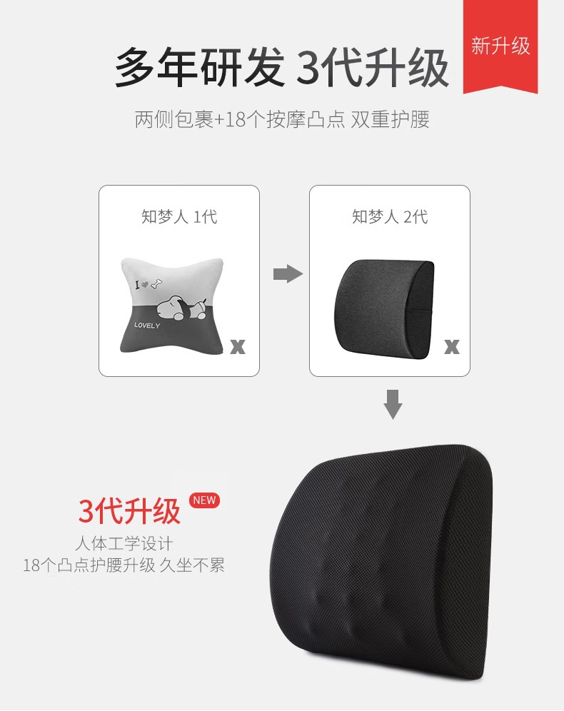 느린 반발 메모리폼 허리 쿠션, 해외판 마사지 포인트 쿠션, 돌출형 쿠션, 등받이 허리 보호 쿠션, 옆으로 자는 베개스토어 가기