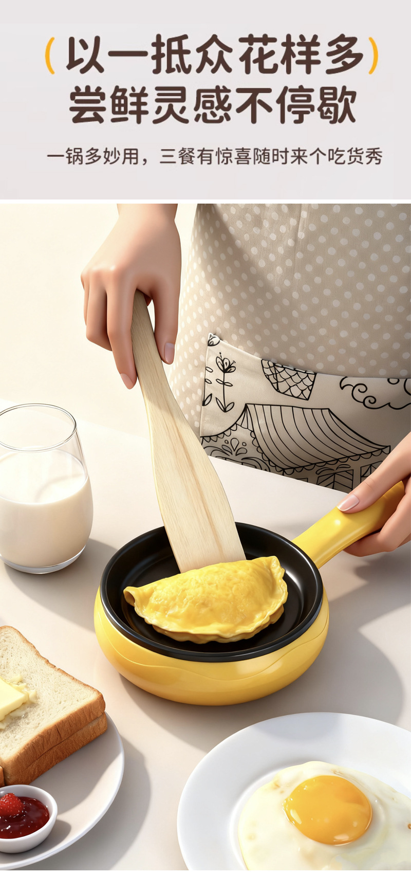 • 빠른 조리/느린 조리 겸용 (미색) 단일 프라이팬 + 나무 주걱