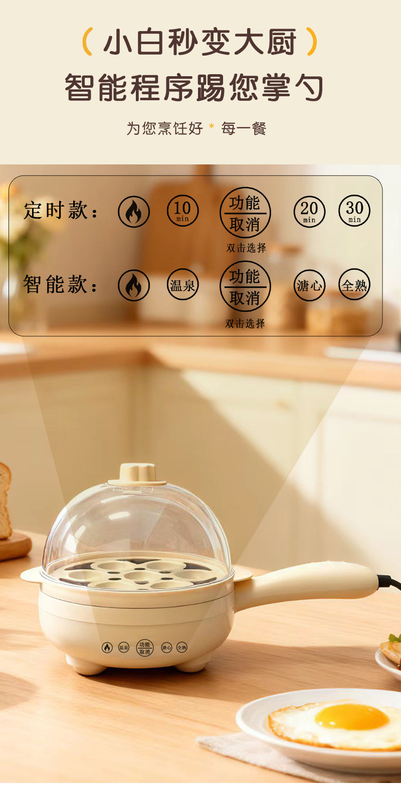 • 업그레이드 버전 (미색) 단일 프라이팬 + 나무 주걱 + 계란 몰드