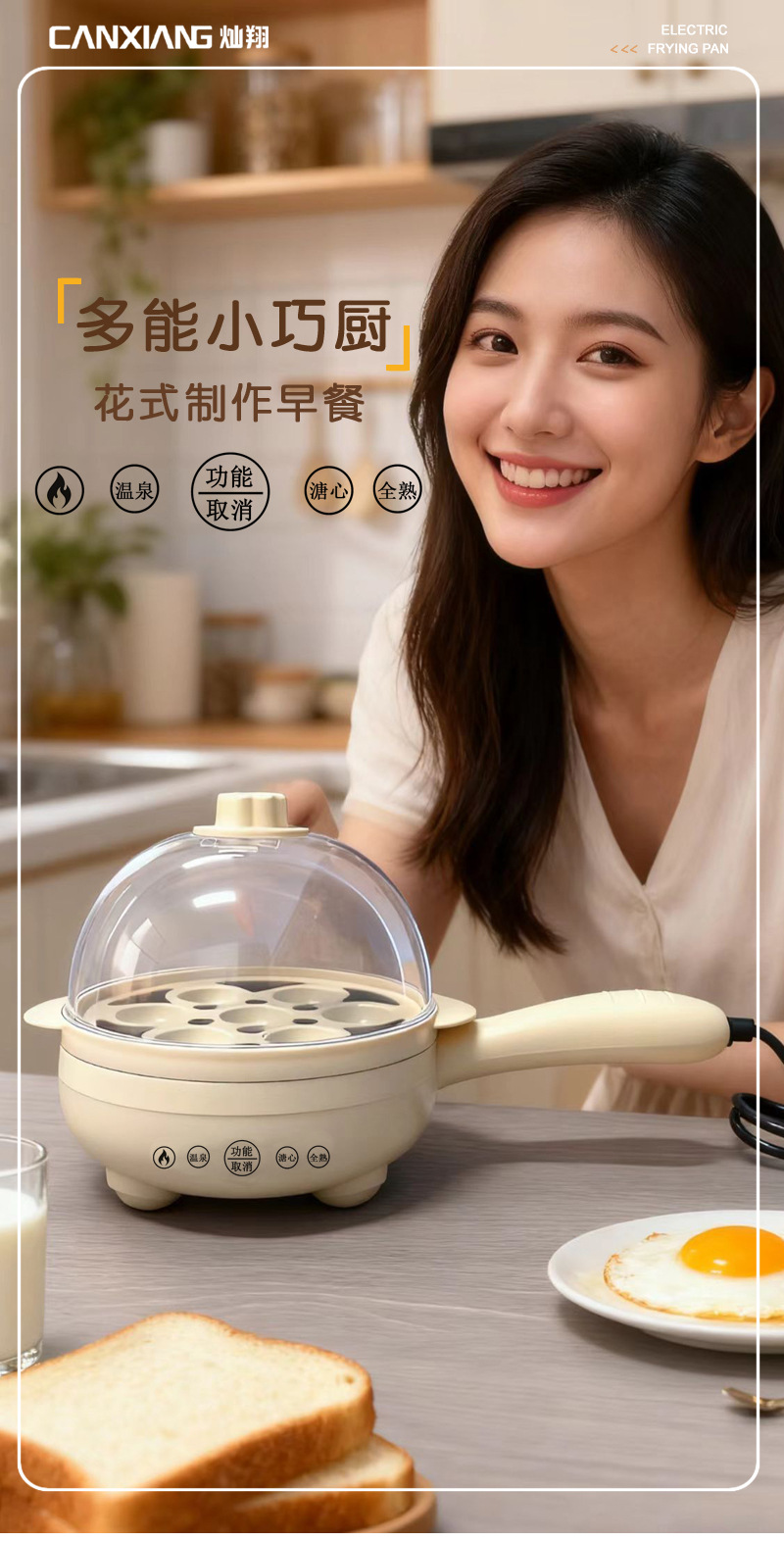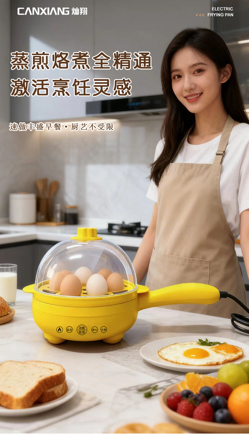 Canxiang 플러그인 소형 프라이팬, 수란 팬, 계란 만두, 붙지 않는 팬, 계란 밥솥, 전기 프라이팬, 전기 프라이팬, 선물 아침 식사 기계