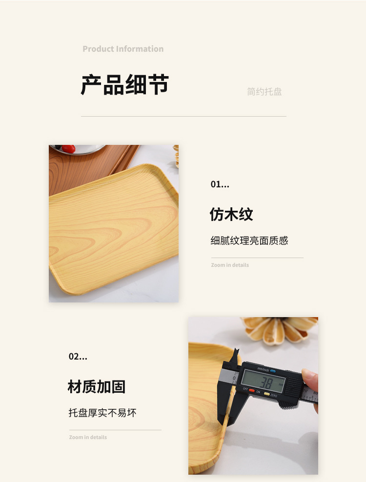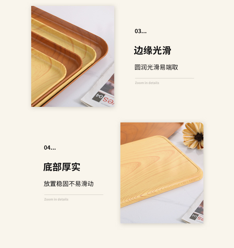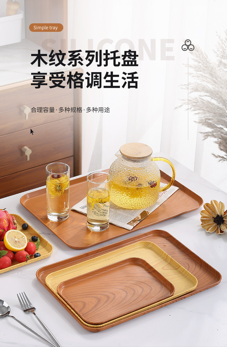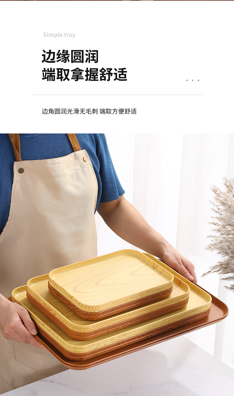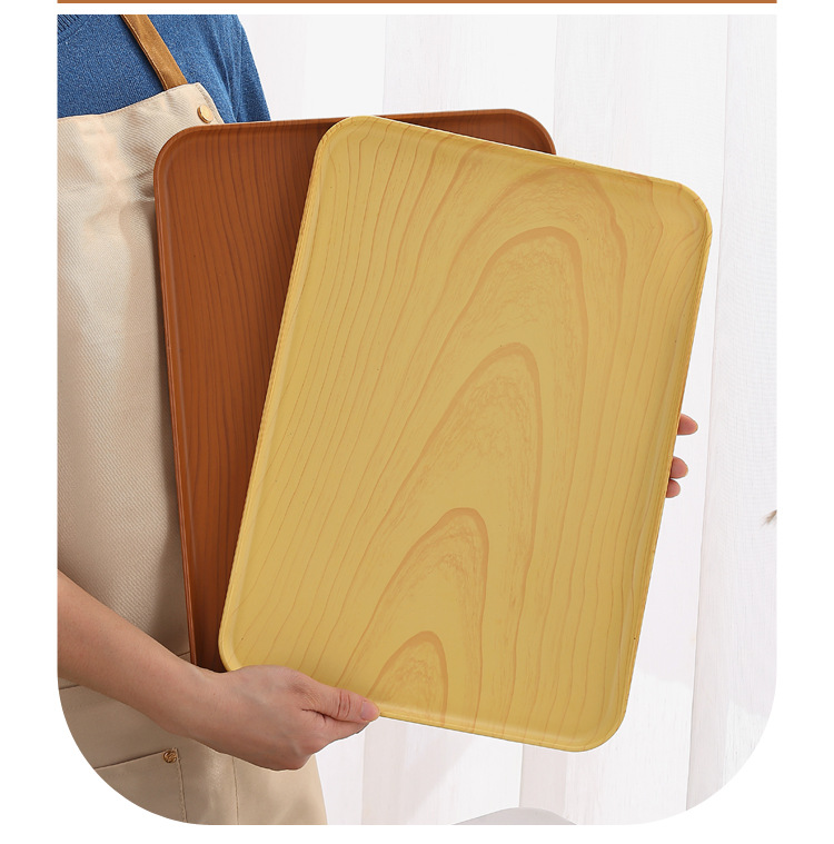 크로스 보더 라이트 럭셔리 모조 우드 그레인 플라스틱 트레이 레스토랑 상업용 직사각형 워터 트레이 가정용 거실 디너 트레이 티 트레이스토어 가기