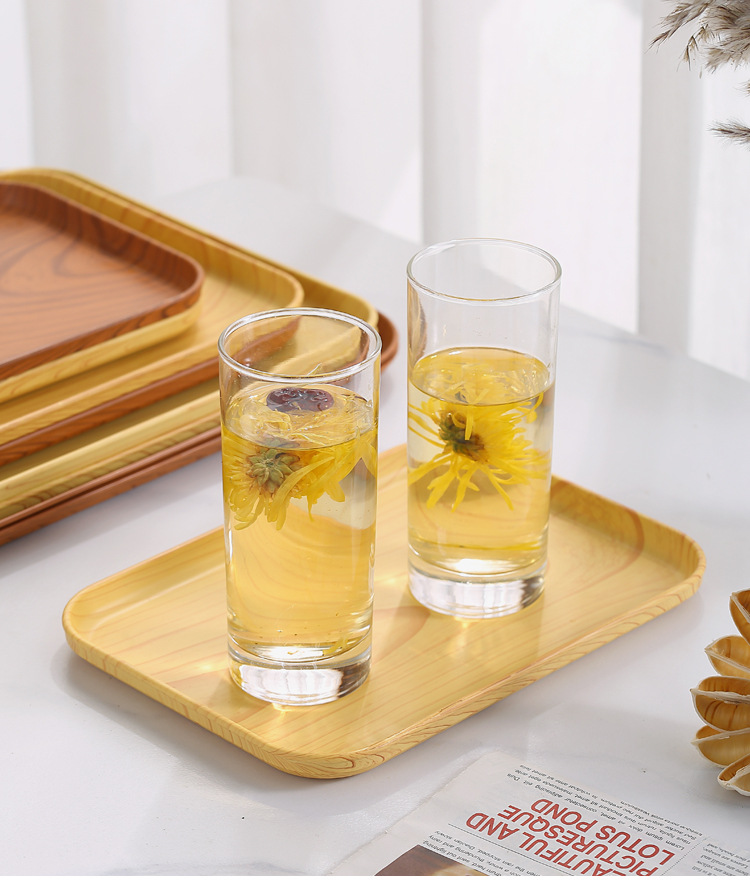 크로스 보더 라이트 럭셔리 모조 우드 그레인 플라스틱 트레이 레스토랑 상업용 직사각형 워터 트레이 가정용 거실 디너 트레이 티 트레이