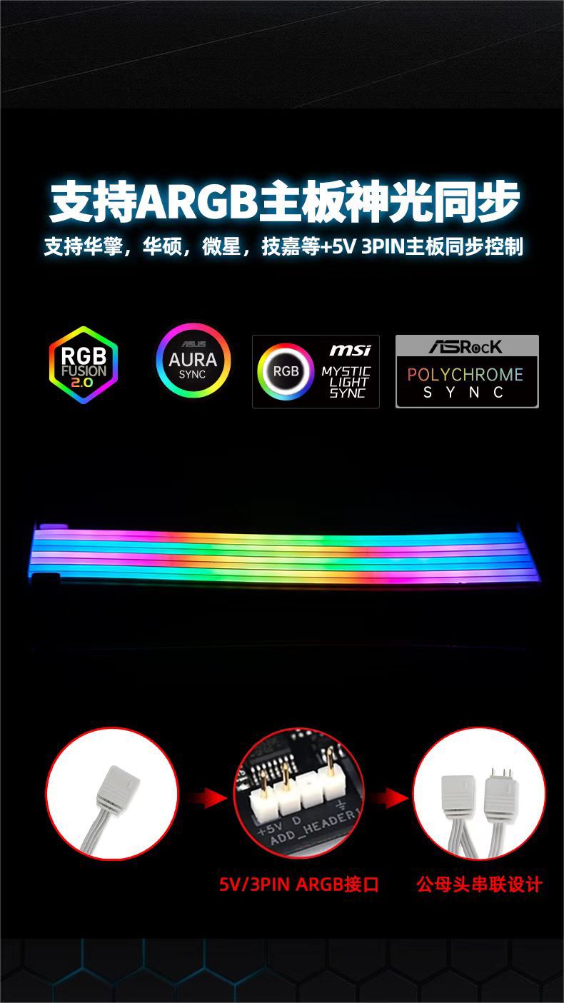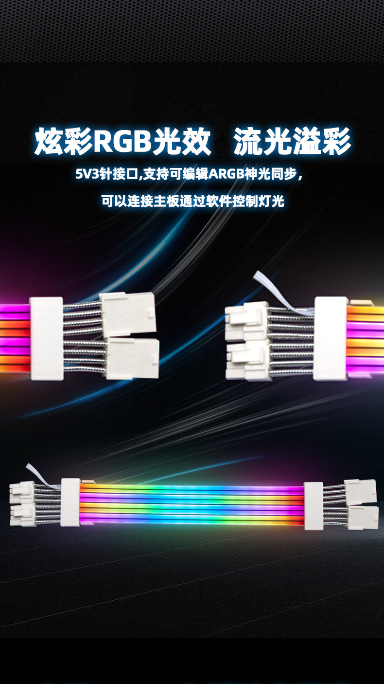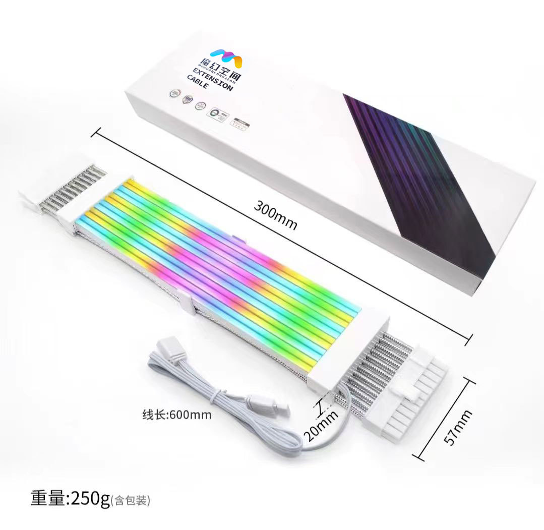 데스크탑 컴퓨터 그래픽 카드 마더보드 24핀 전원 공급 케이블 조명 보드 신광 동기화 ARGB 발광 케이블 조명 효과 데스크탑 컴퓨터용