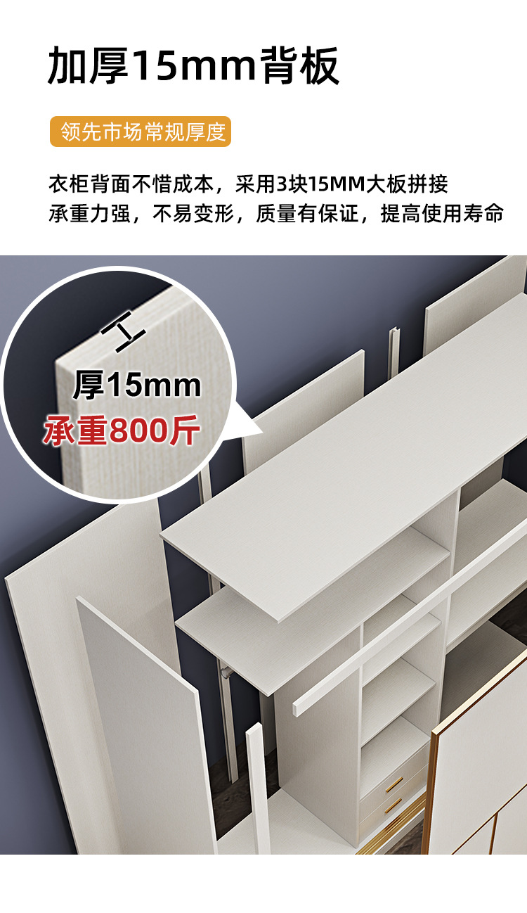 • 1.8 m 옷장 + 탑 캐비닛 “단단한 나무 다층 보드]