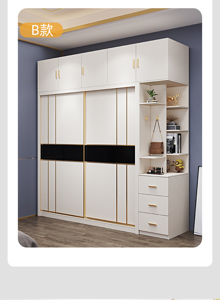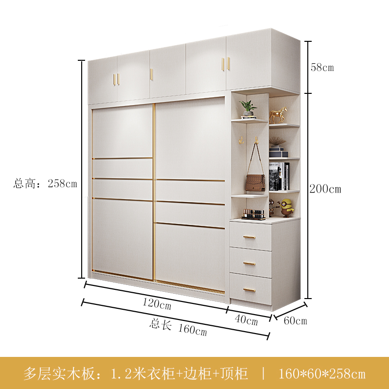 • 1.6 m 옷장 + 탑 캐비닛 + 사이드 캐비닛 [원목 다층 보드]]