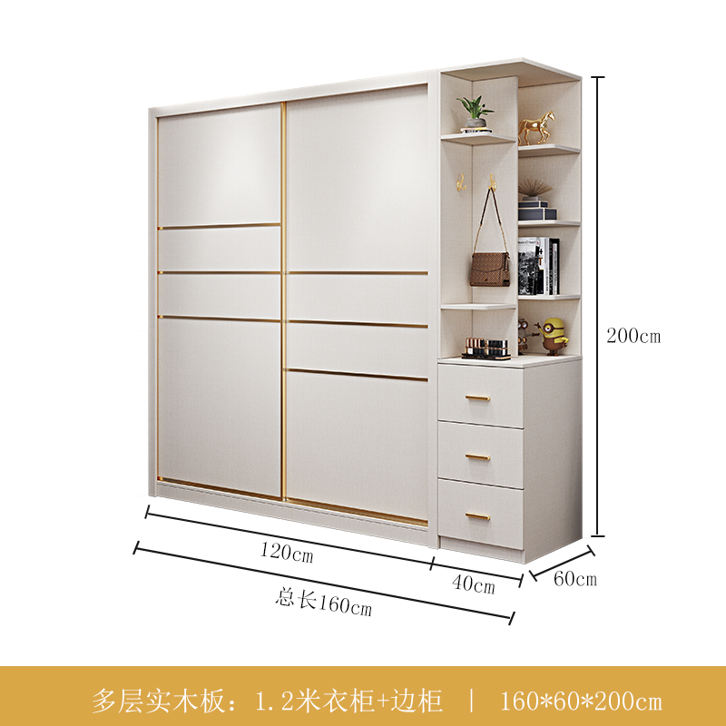 • 1.2 m 옷장 + 사이드 캐비닛 [원목 다층 보드]]