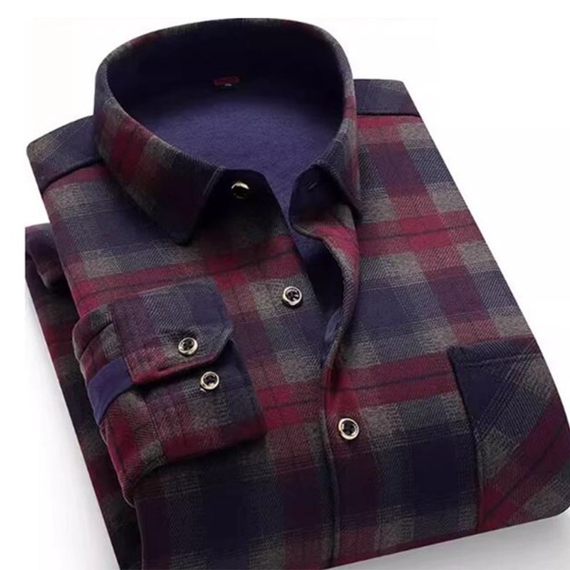 새로운 가을과 겨울 기모 두꺼운 따뜻한 남자 셔츠 긴 소매 겉옷 아빠 중년 격자 무늬 셔츠 도매스토어 가기