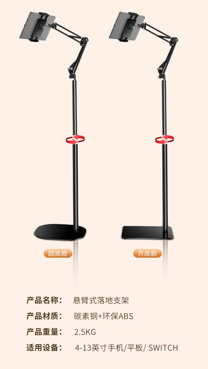 캔틸레버 바닥 휴대 전화 브래킷 리프팅 조정 금속베이스 라이브 추격 놀이 바닥 접는 게으른 플랫 브래킷스토어 가기