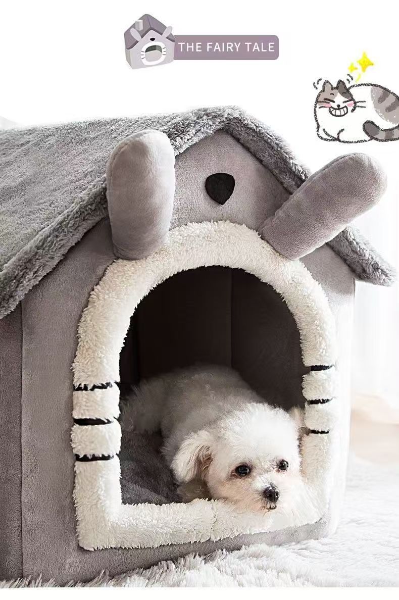 가을 겨울 개집, 토끼털 따뜻한 밀폐형 고양이집, 겨울 텐트 개침대, 애완동물 집, 사계절 모두 사용 가능한 개집