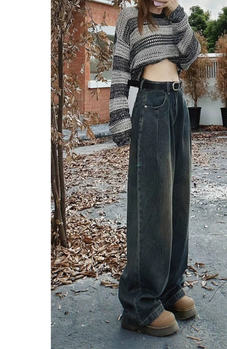 아메리칸 스타일 레트로 와이드 레그 청바지 여성용 플러스 사이즈 여성용 느슨한 디핑 슬리밍 스트레이트 플로어 팬츠 봄과 가을 2023스토어 가기