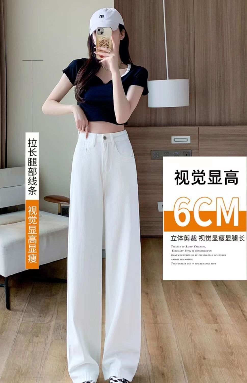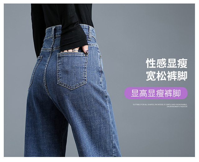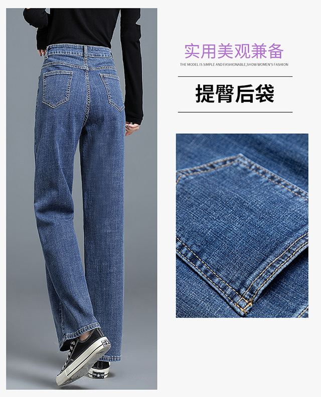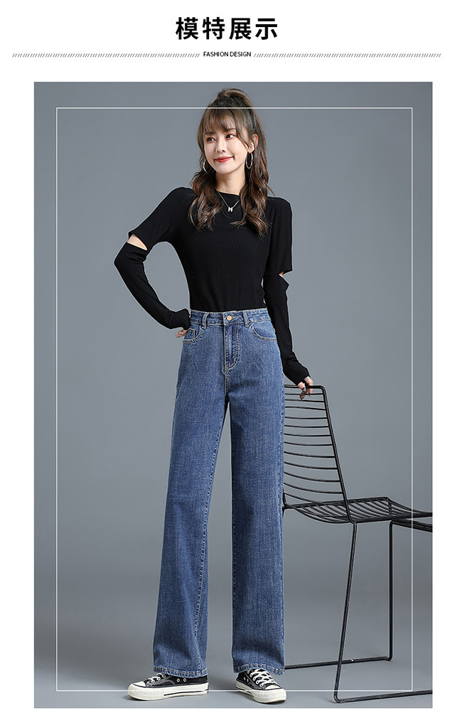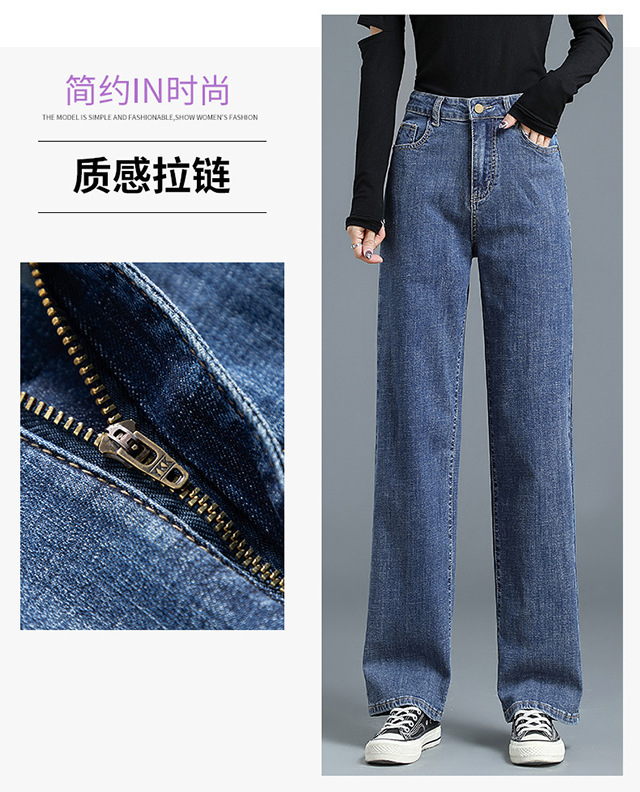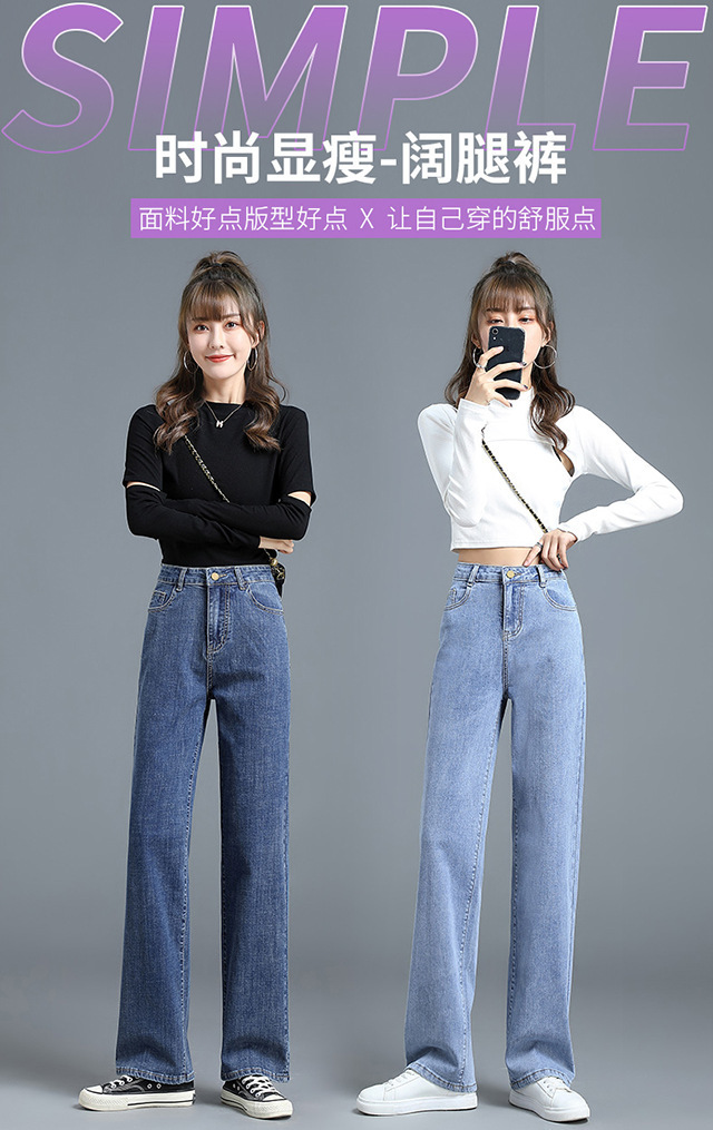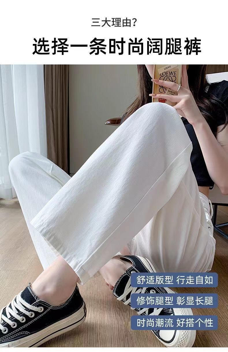 화이트 슬림핏 와이드 팬츠 스트레이트 데님 팬츠 여성 가을 겨울 신상 하이웨이스트 슬림핏 키 작은 여성용 드레이프 바닥 길이 팬츠스토어 가기