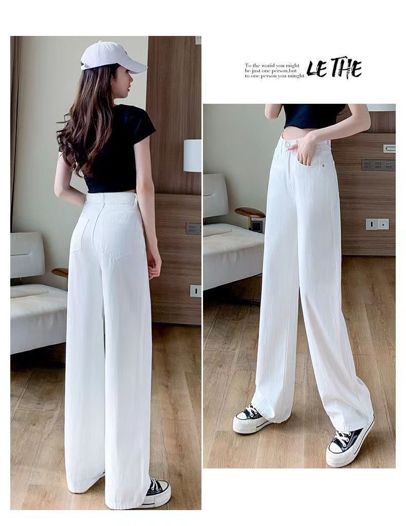 화이트 슬림핏 와이드 팬츠 스트레이트 데님 팬츠 여성 가을 겨울 신상 하이웨이스트 슬림핏 키 작은 여성용 드레이프 바닥 길이 팬츠