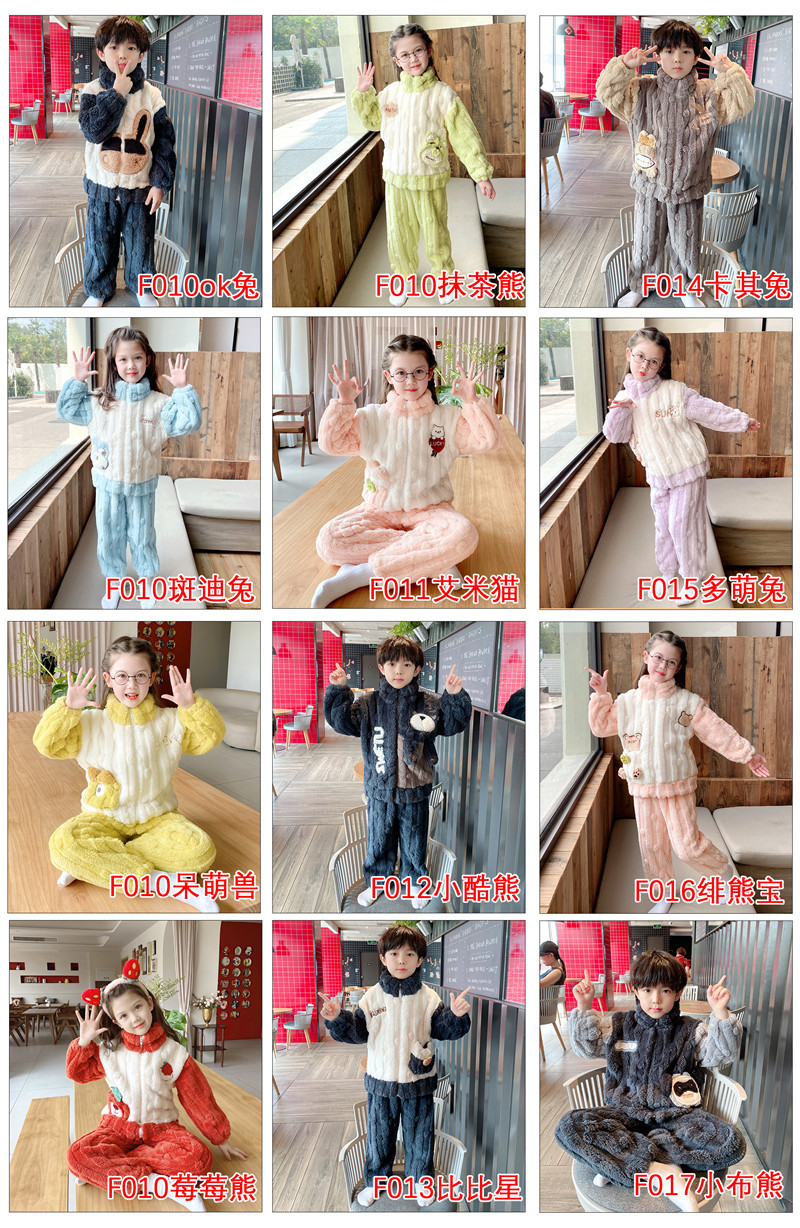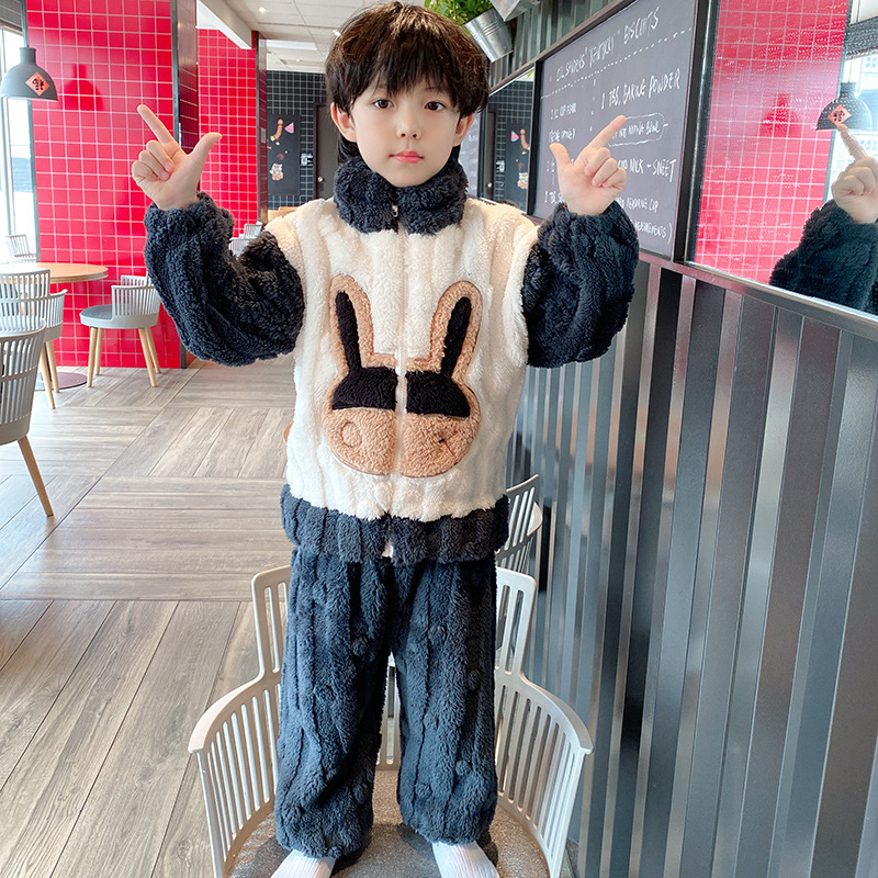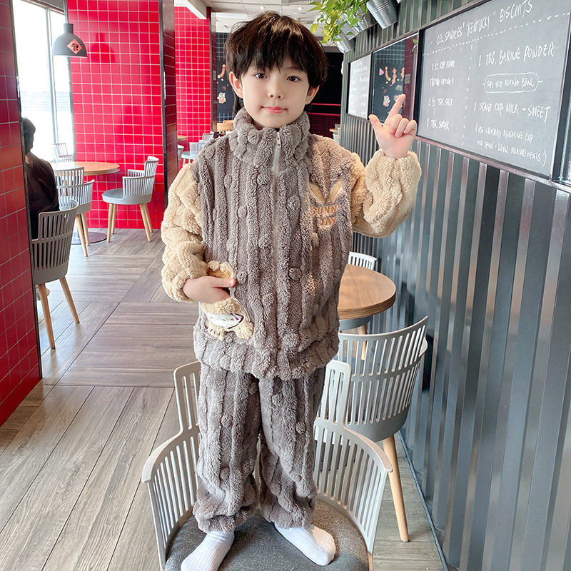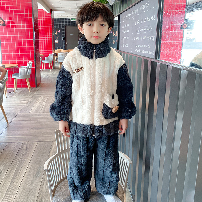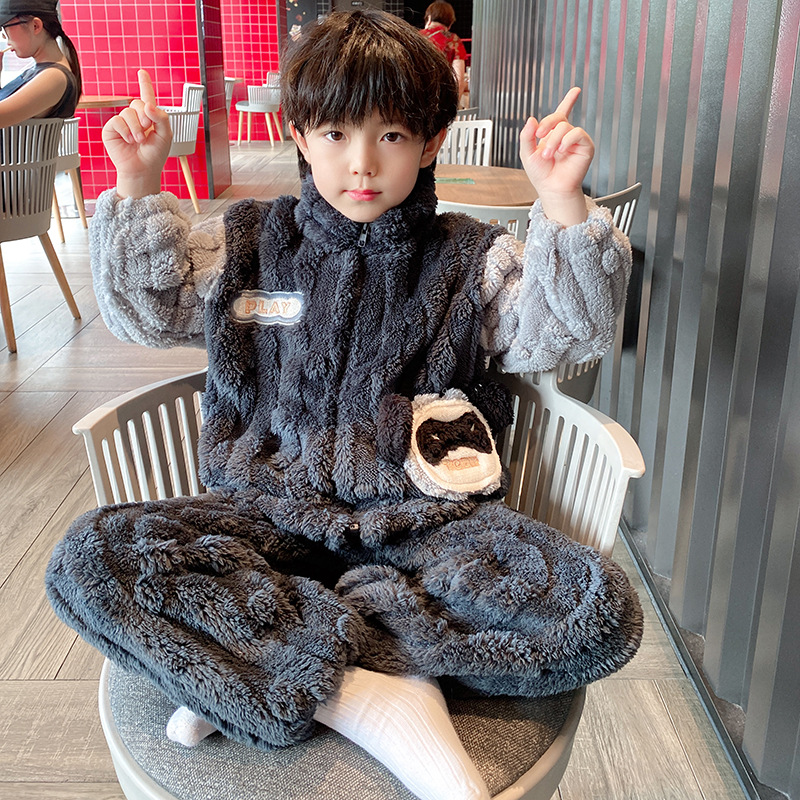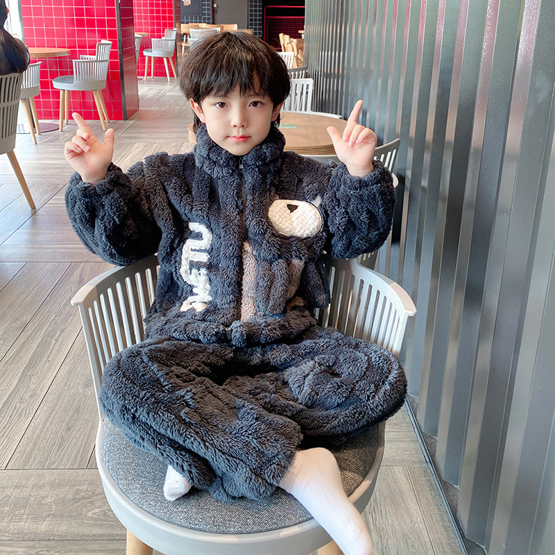 100-150 패딩 플란넬 어린이 잠옷 소년 가을과 겨울 산호 양털 소년 큰 어린이 가정 옷 도매스토어 가기