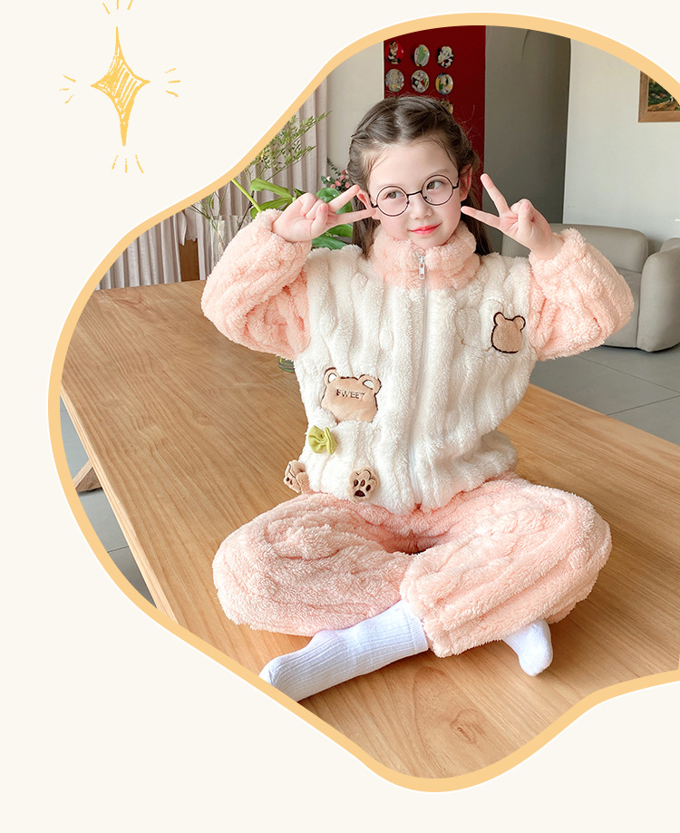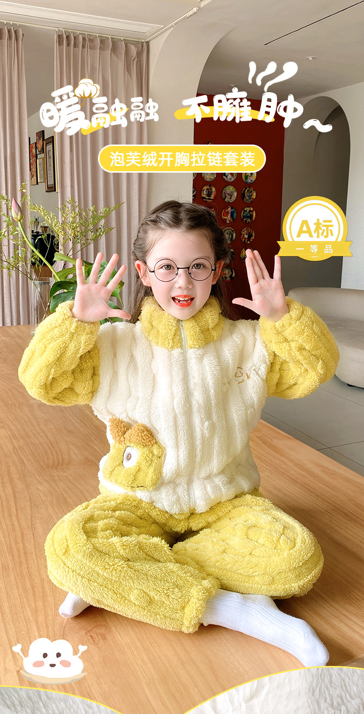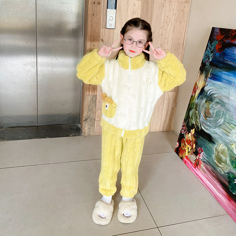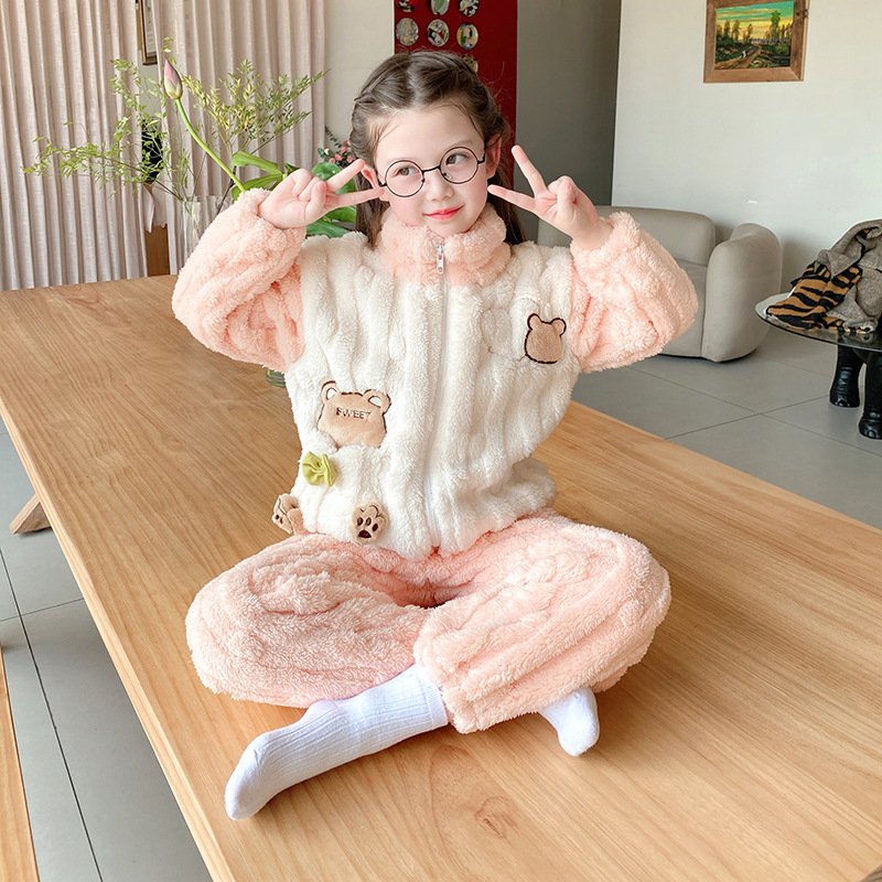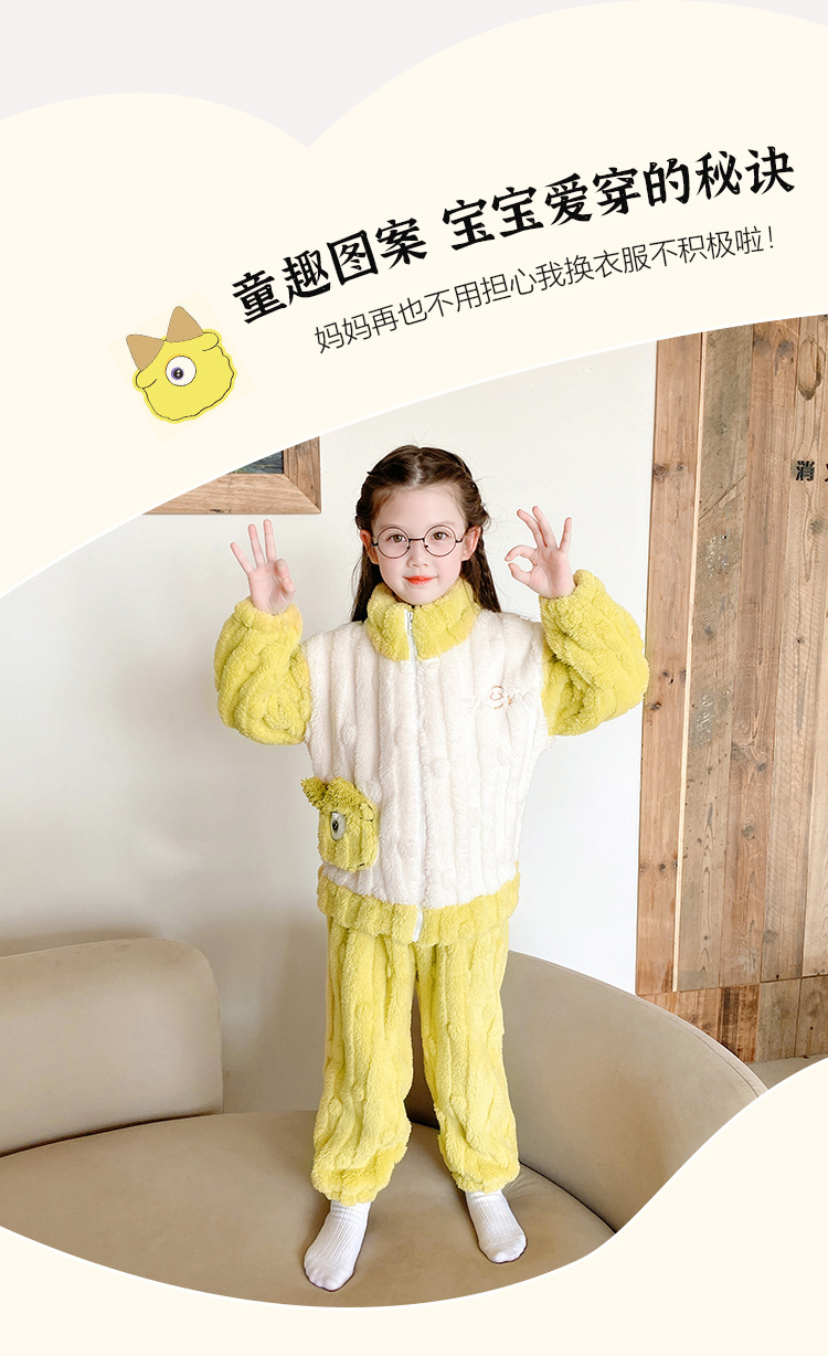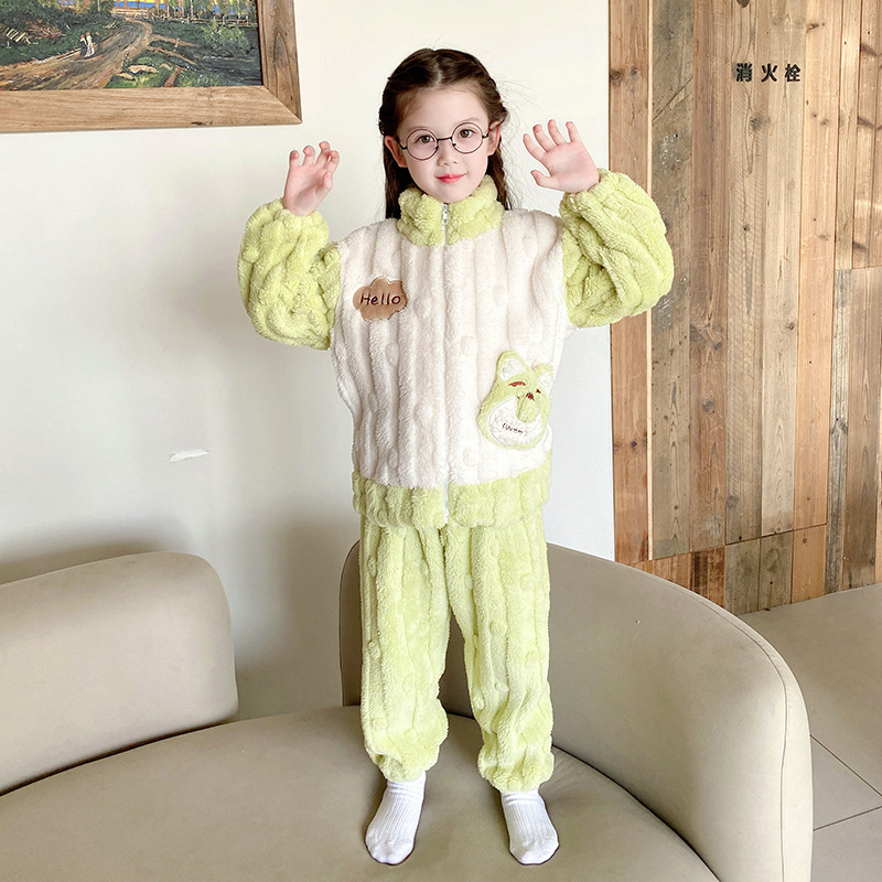100-150 패딩 플란넬 어린이 잠옷 소년 가을과 겨울 산호 양털 소년 큰 어린이 가정 옷 도매스토어 가기
