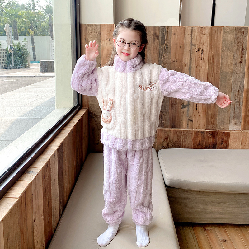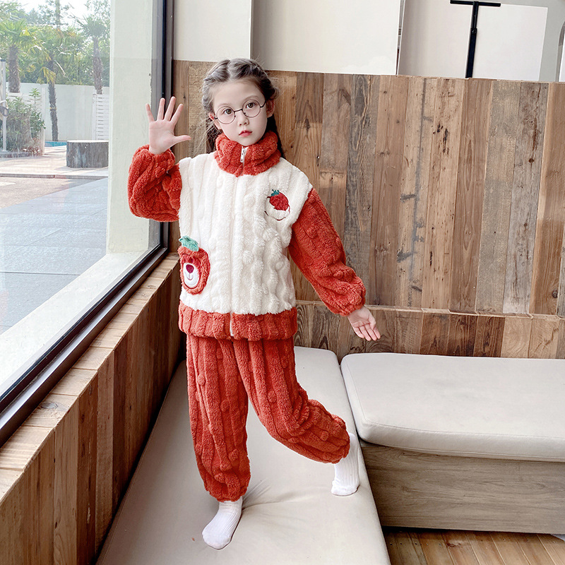100-150 패딩 플란넬 어린이 잠옷 소년 가을과 겨울 산호 양털 소년 큰 어린이 가정 옷 도매
