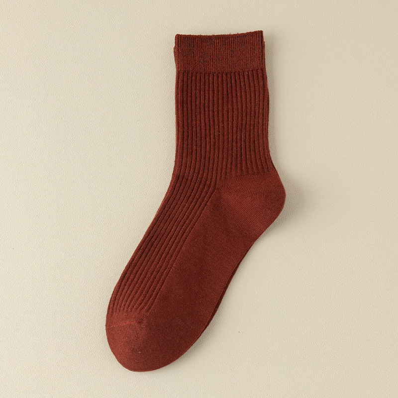 양말 여성용 순면 가을과 겨울 이중 바늘 튜브 양말 단색 품질 항균 탈취제 세로면 양말 간단한 다목적 여성 양말