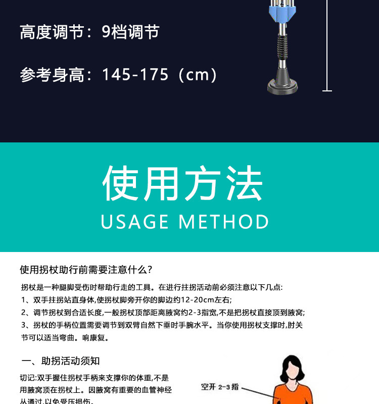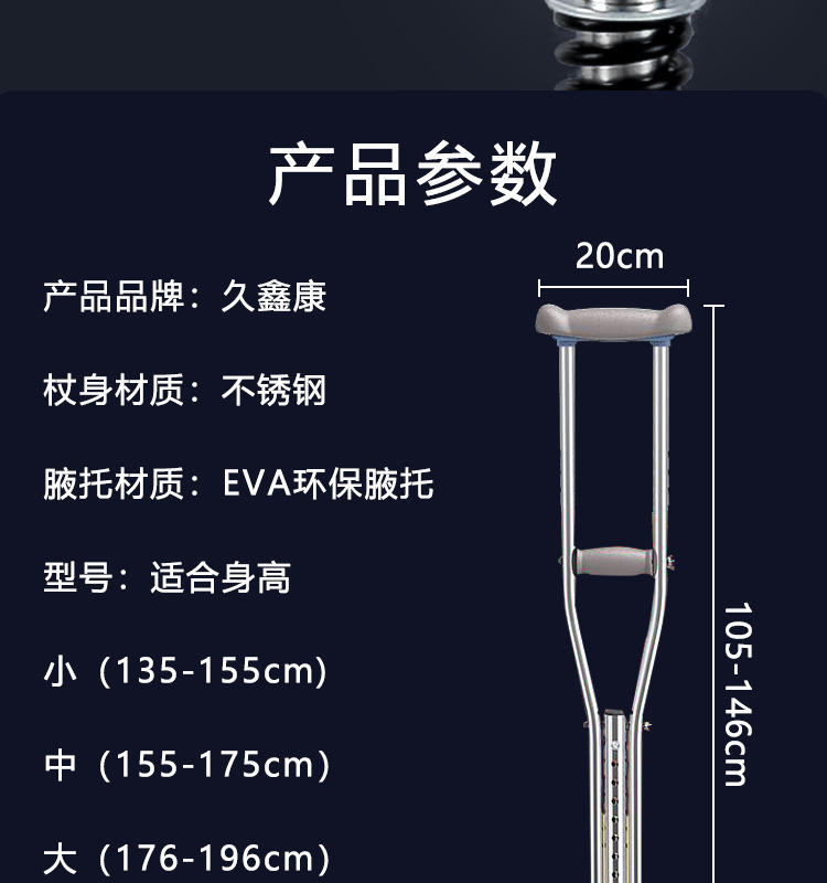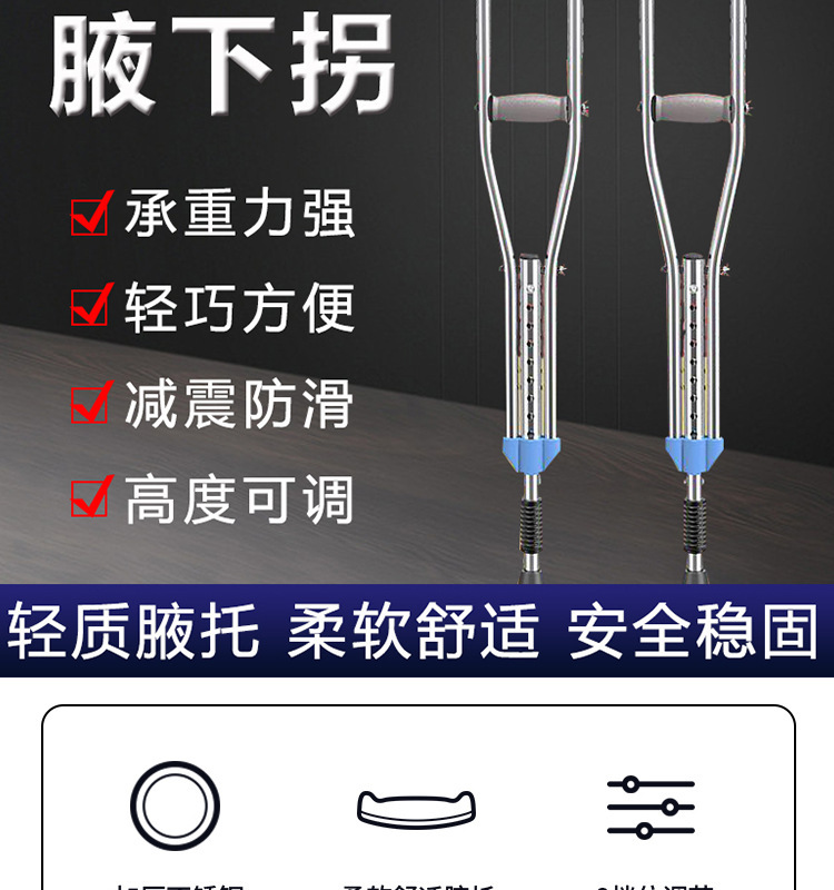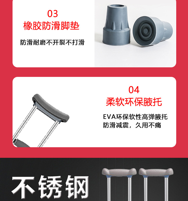 공장 도매 스테인레스 스틸 충격 흡수 목발 겨드랑이 목발 미끄럼 방지 겨드랑이 목발 스테인레스 스틸 겨드랑이 목발 싱글 리프트 조정 가능한 목발스토어 가기