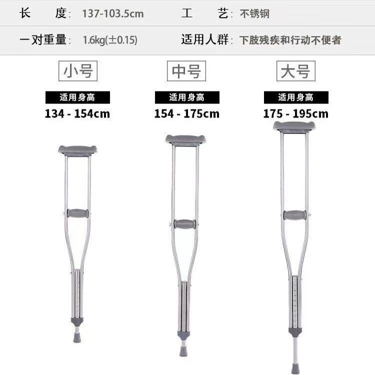 공장 도매 스테인레스 스틸 충격 흡수 목발 겨드랑이 목발 미끄럼 방지 겨드랑이 목발 스테인레스 스틸 겨드랑이 목발 싱글 리프트 조정 가능한 목발