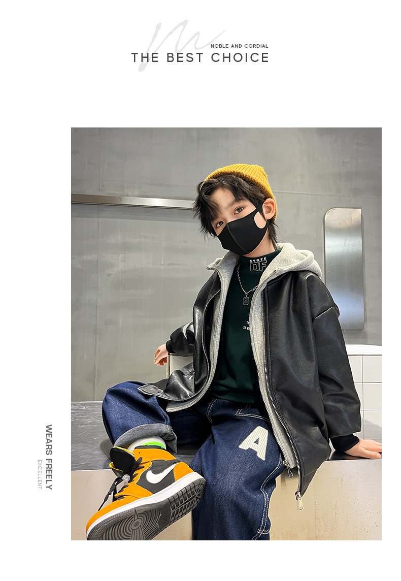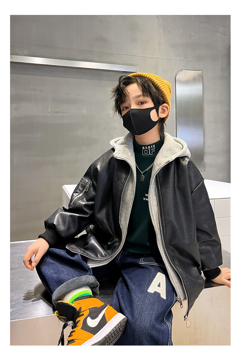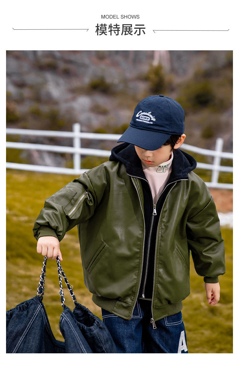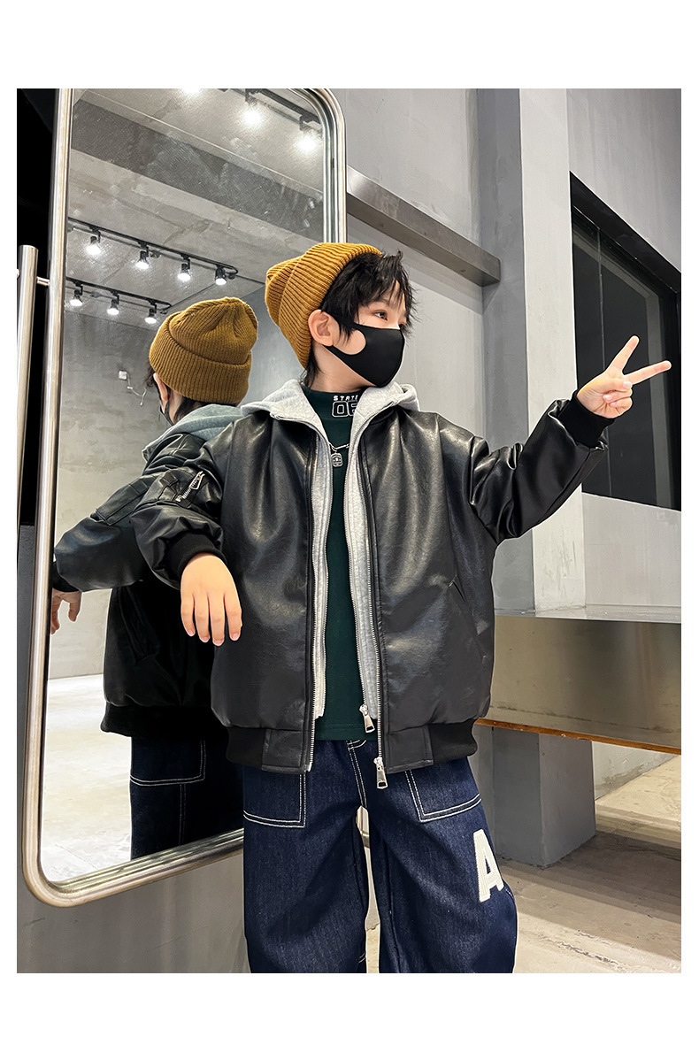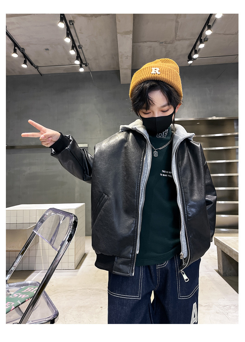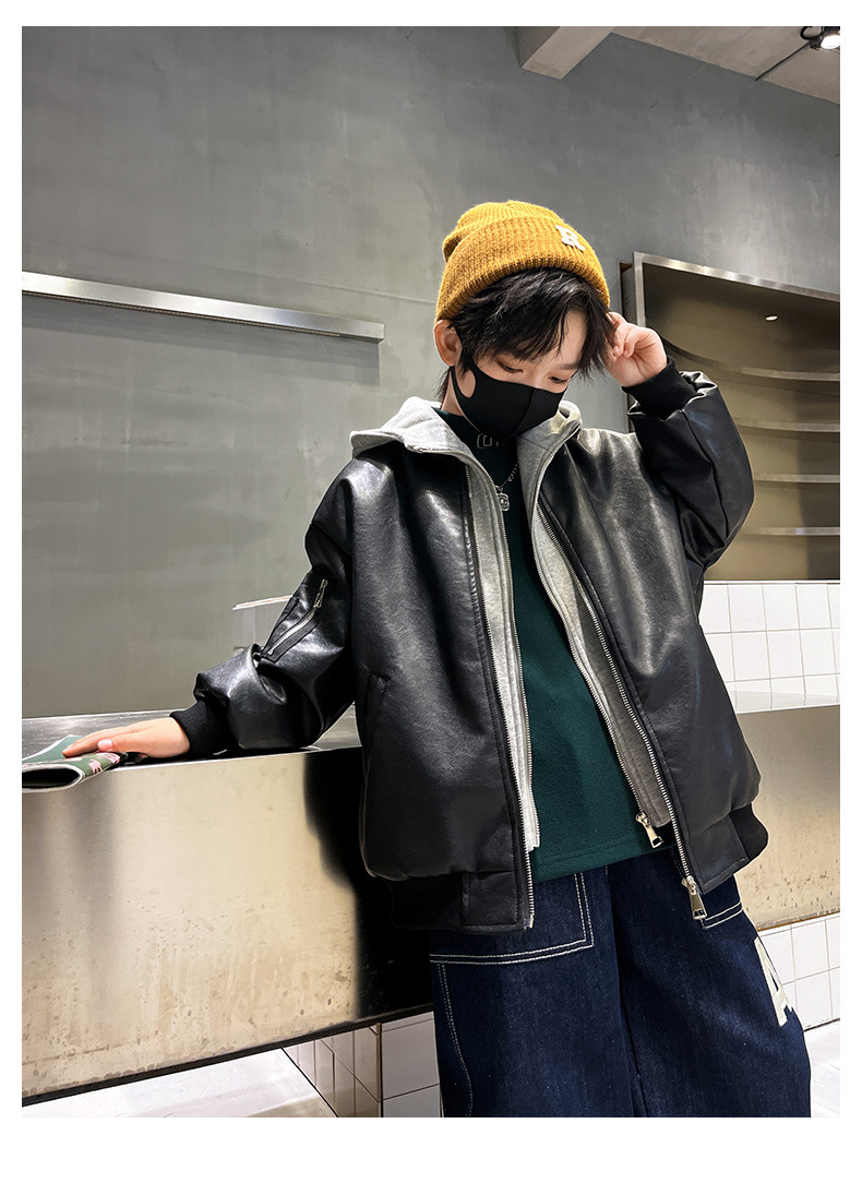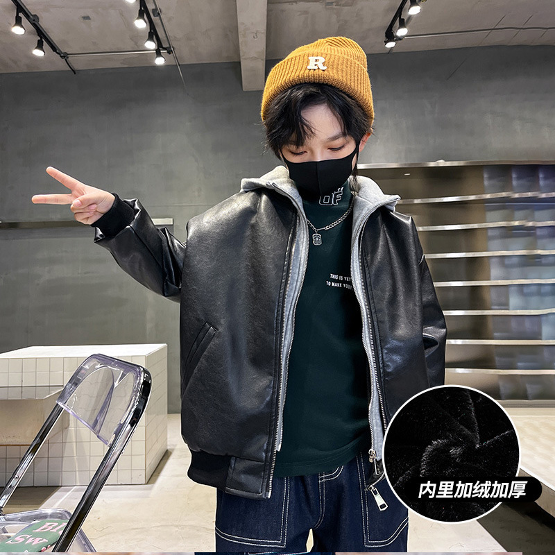 남아용 플리스 가죽 자켓, 한국 스타일 패션, 어린이 가을 겨울 의류, 2024년 신상, 멋진 후드 따뜻한 자켓스토어 가기