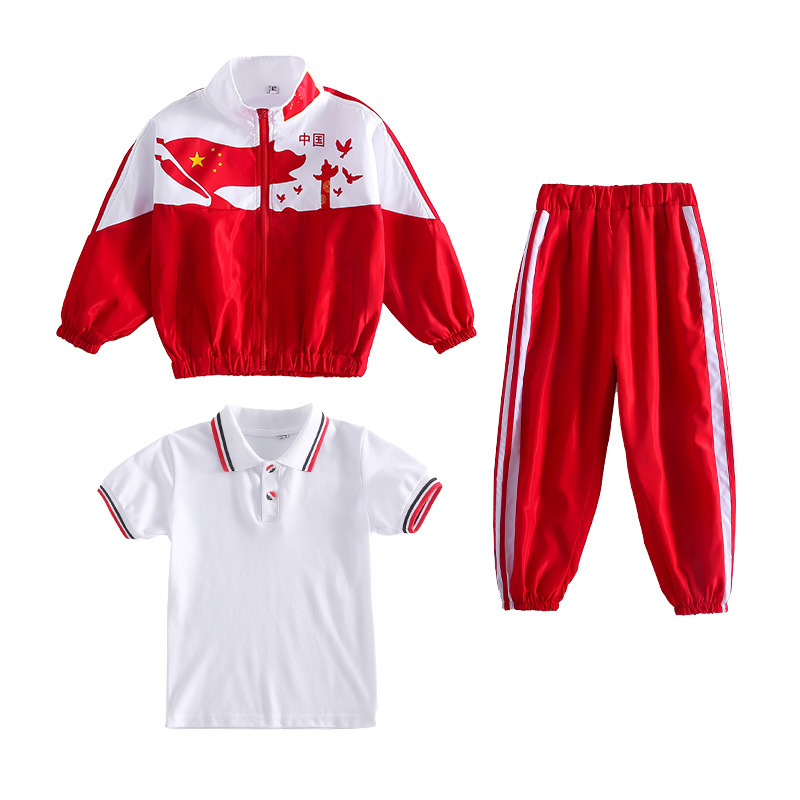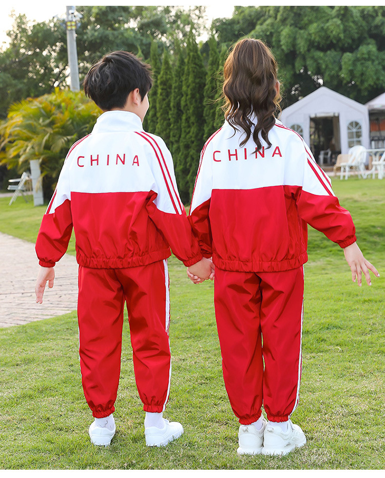 초등학생을위한 교복 봄 가을 옷 세트 국경일 중국 빨간 어린이 스포츠 유치원 정원 옷 수업 옷 3 종 세트