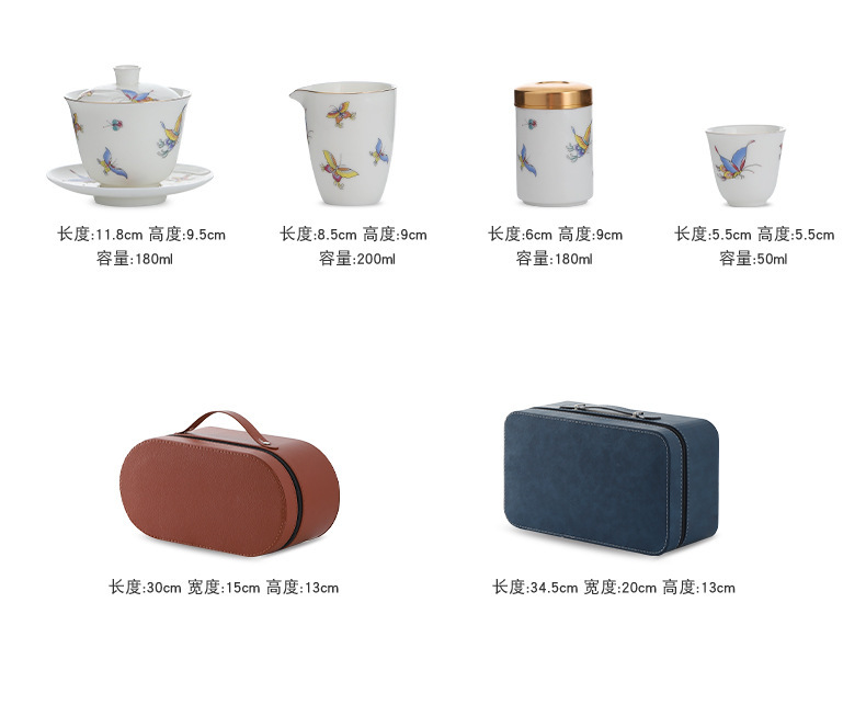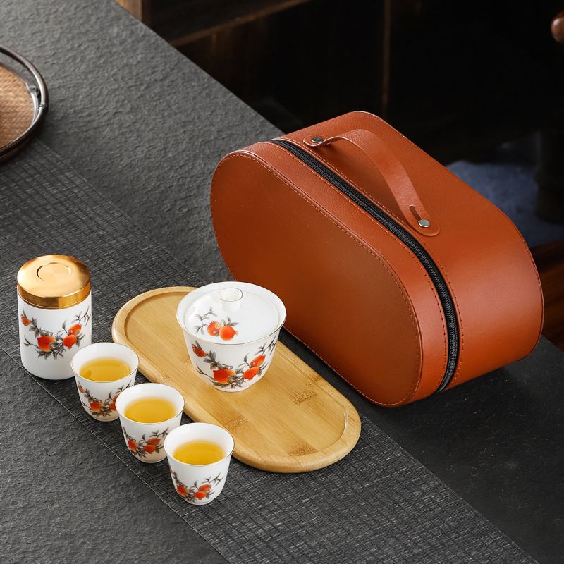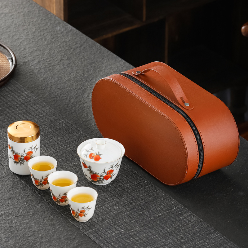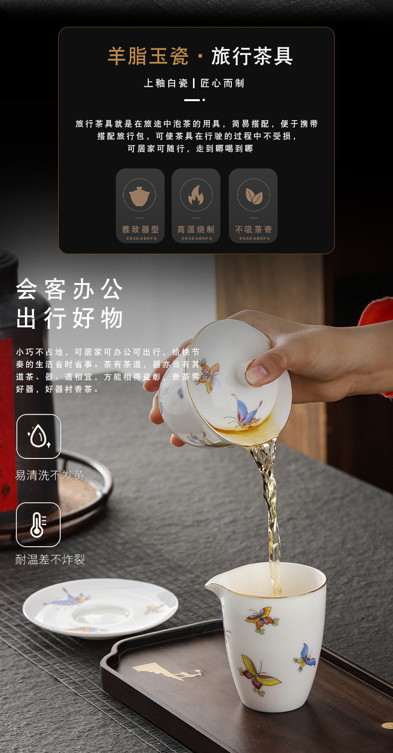 Dehua Suet 옥 도자기 여행 차 세트 세트 세라믹 차 세트 휴대용 가방 완전한 쿵푸 차 세트 자동차 야외 가방스토어 가기