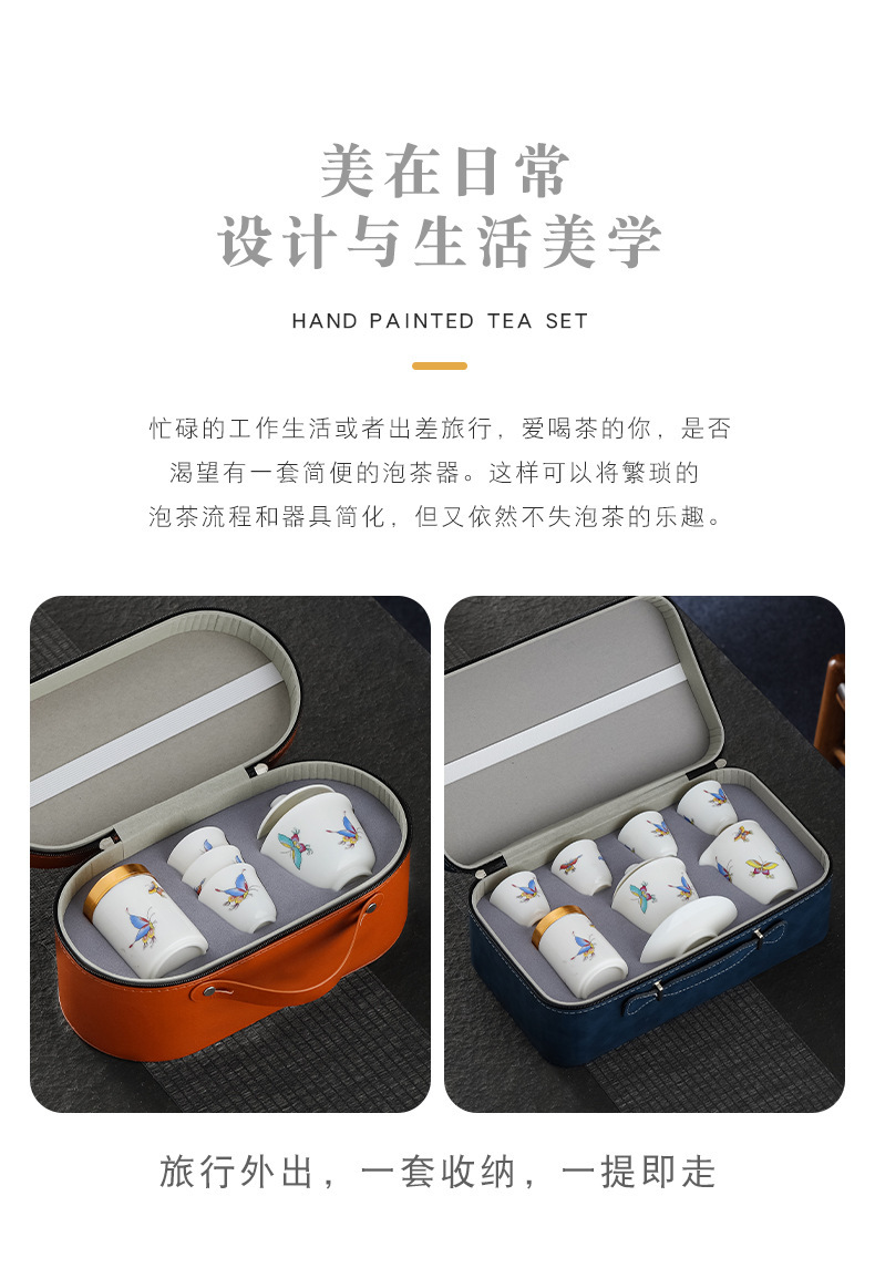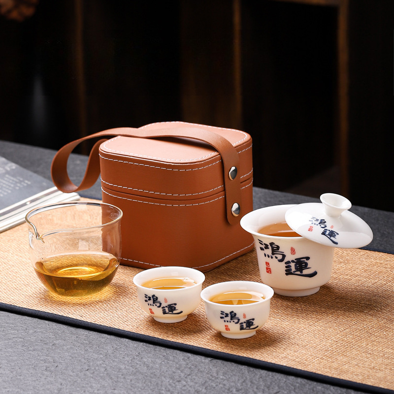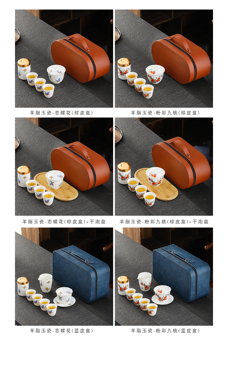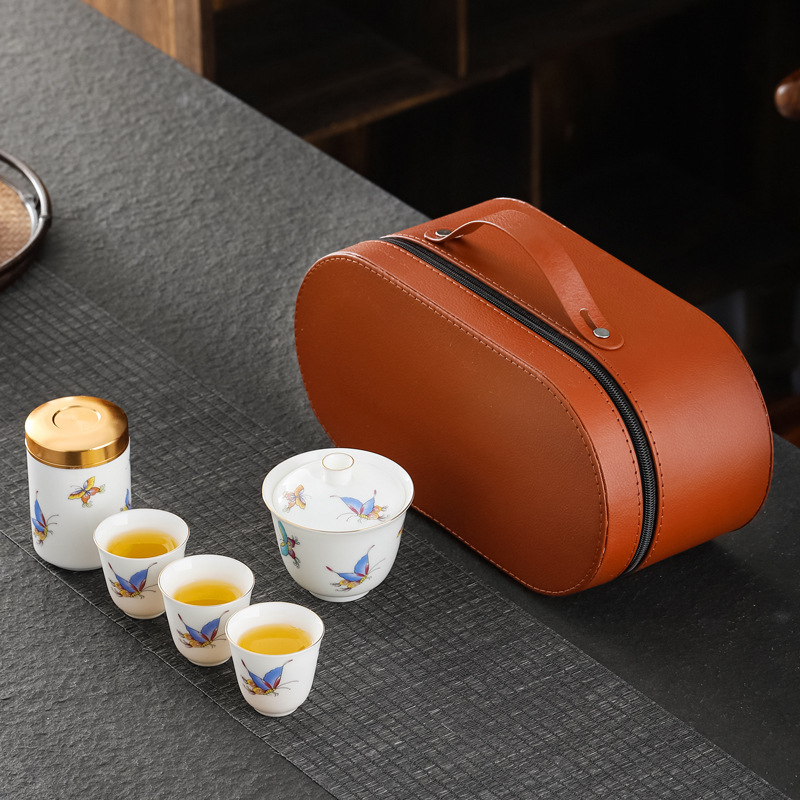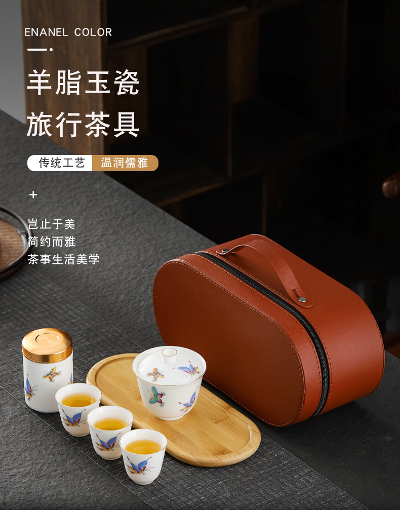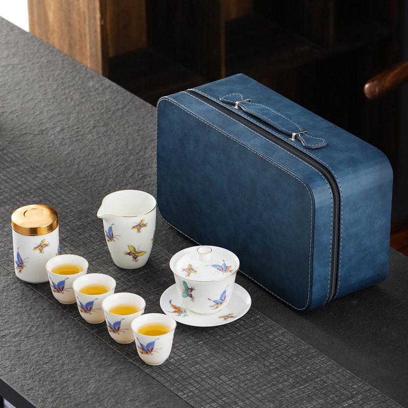 Dehua Suet 옥 도자기 여행 차 세트 세트 세라믹 차 세트 휴대용 가방 완전한 쿵푸 차 세트 자동차 야외 가방