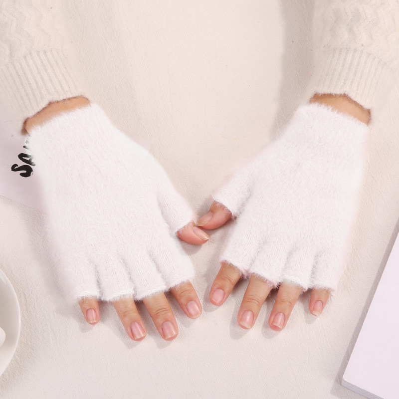 25년 가을 겨울 장갑 성인용 크로스보더 스타일 따뜻한 남녀 학생용 손가락 노출형 단색 반손가락 터치스크린 방한 장갑