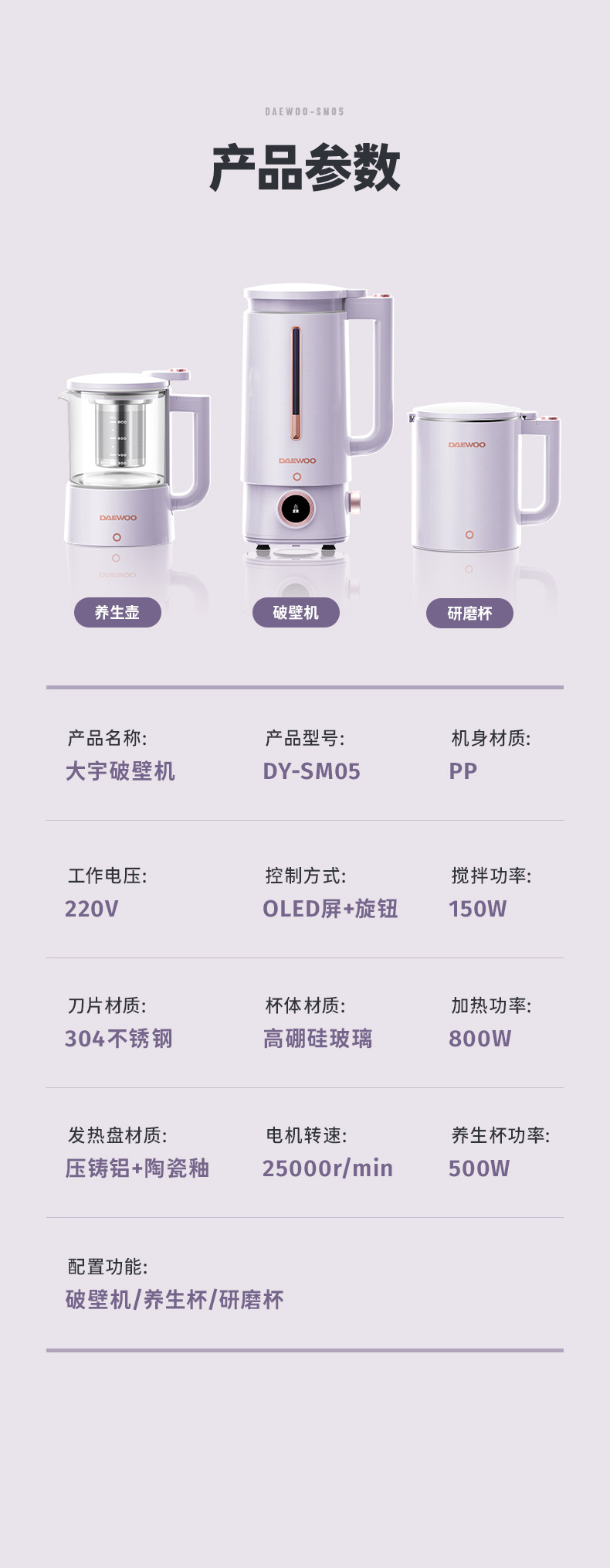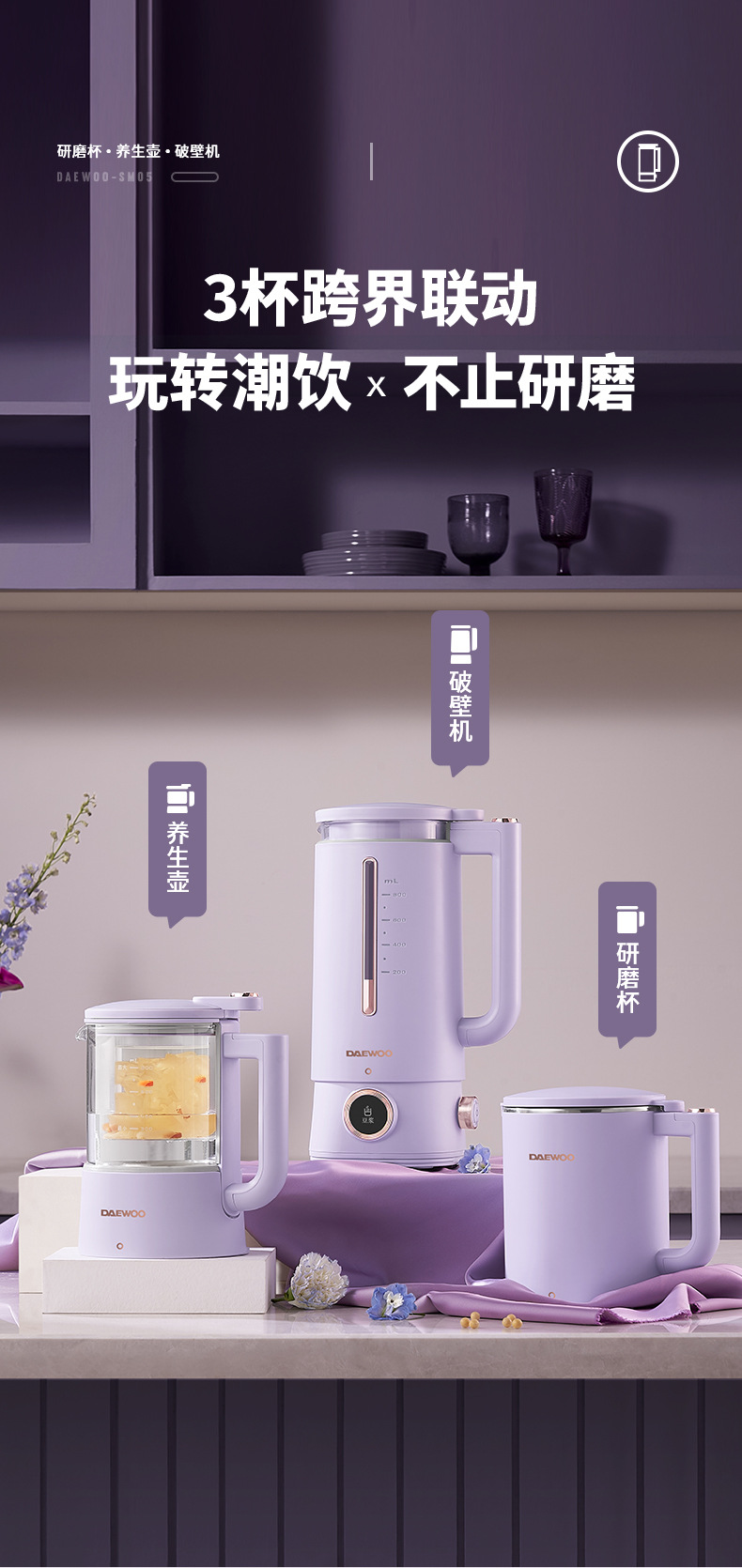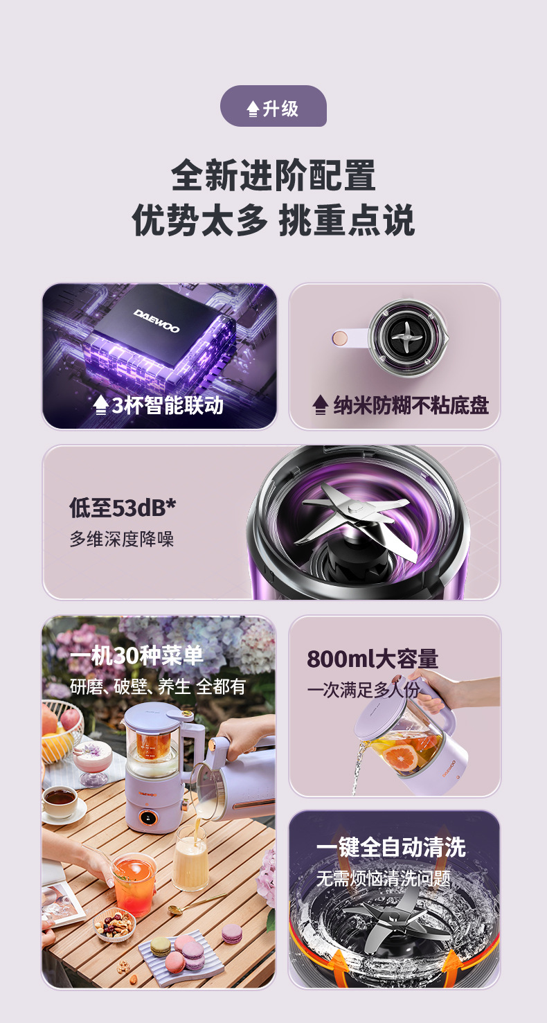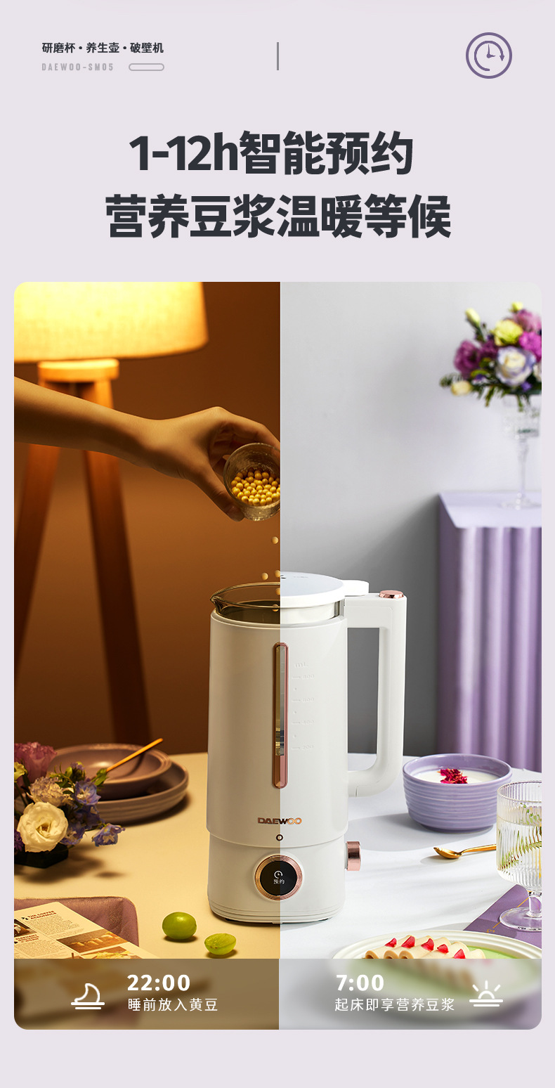 대우 벽부수기 두유 기계 가정용 자동 소형 미니 3 컵 조리기 건강 포트스토어 가기