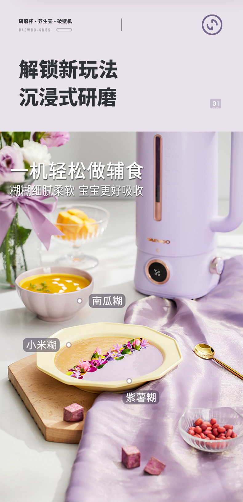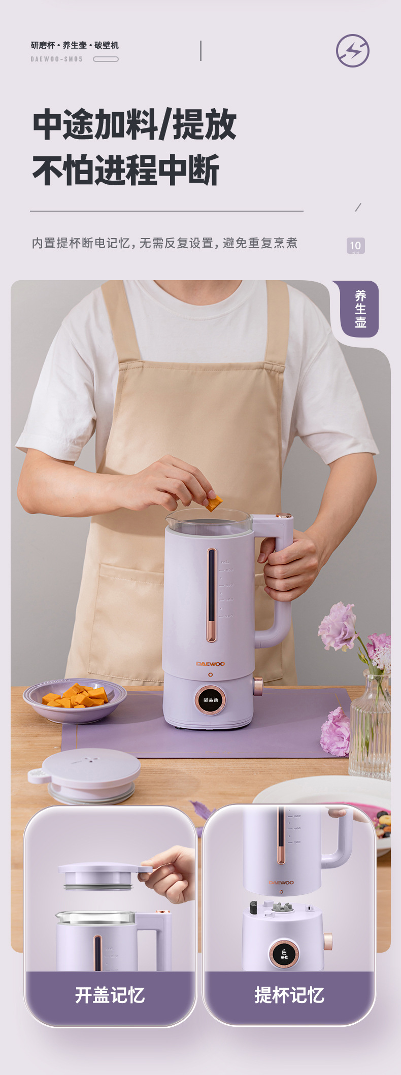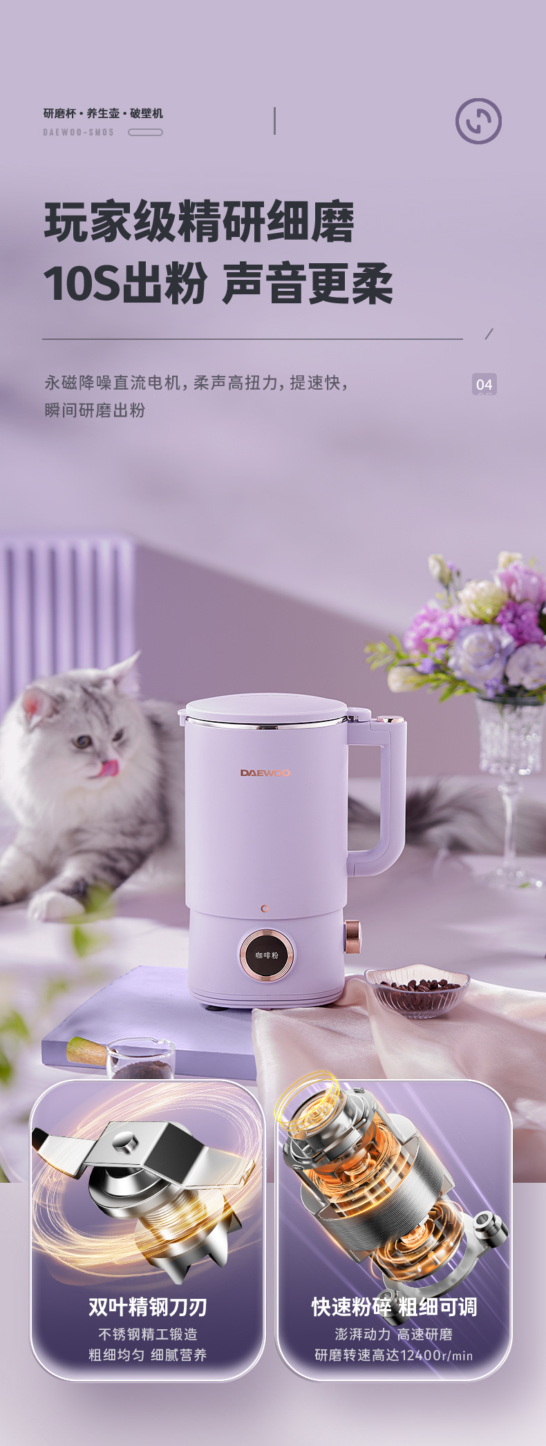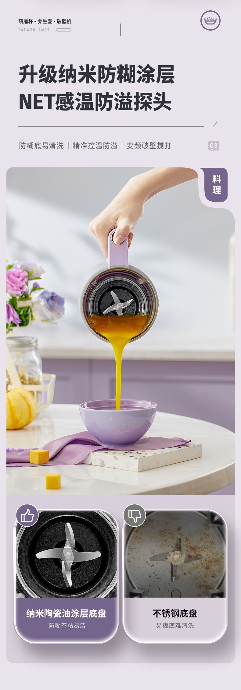 대우 벽부수기 두유 기계 가정용 자동 소형 미니 3 컵 조리기 건강 포트스토어 가기