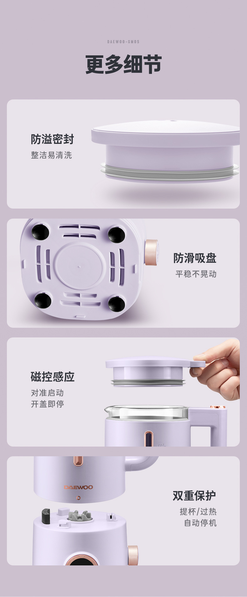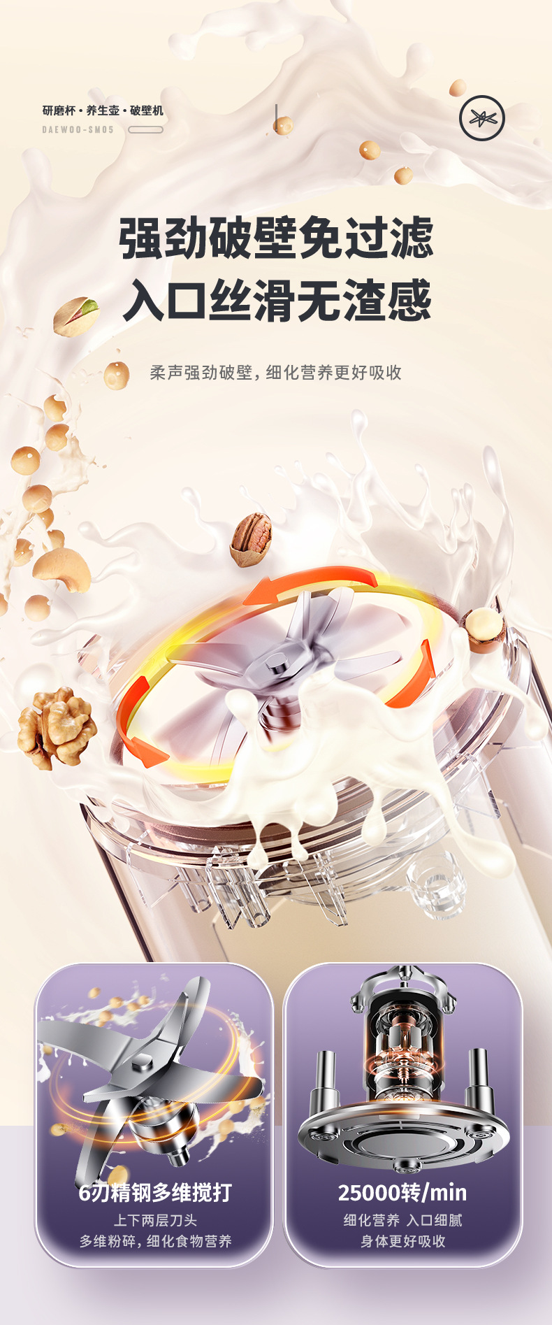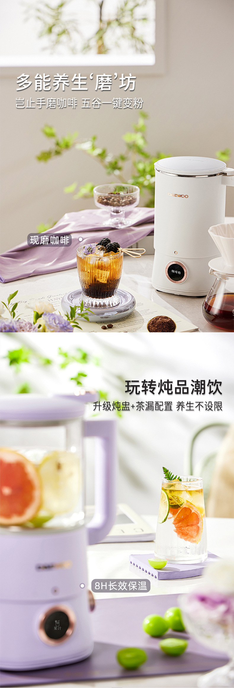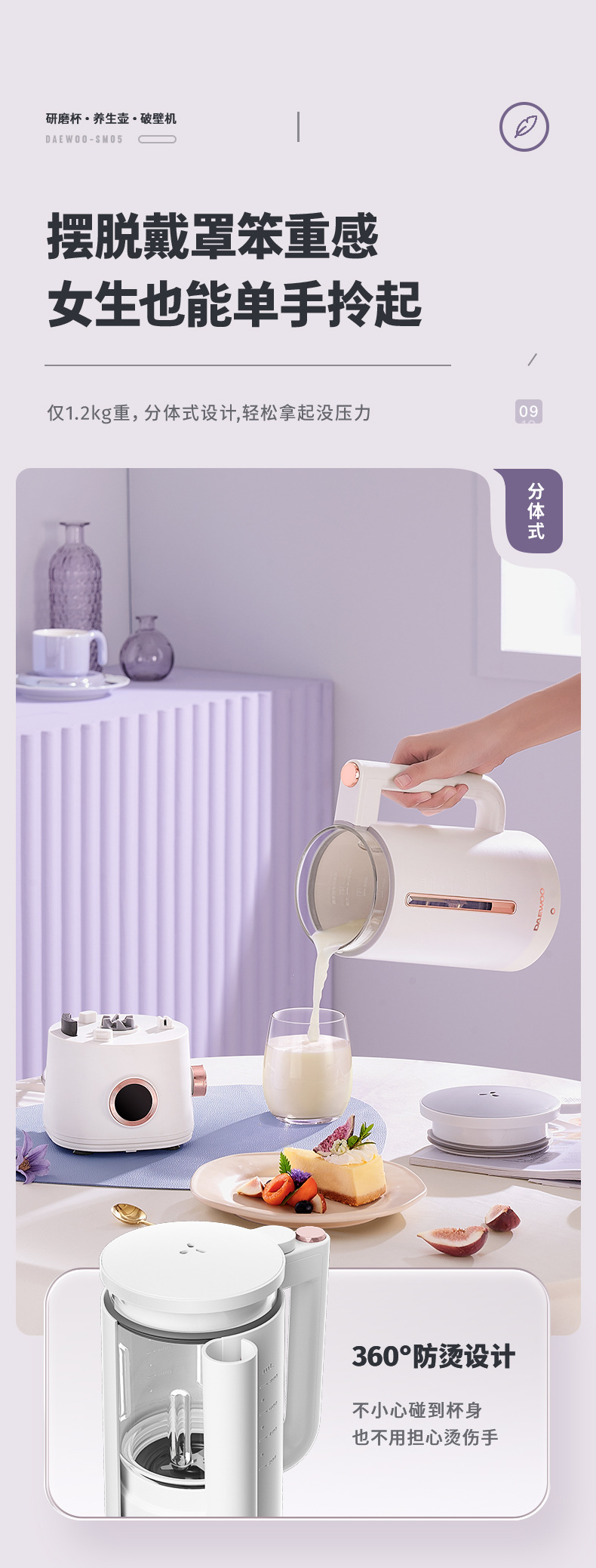 대우 벽부수기 두유 기계 가정용 자동 소형 미니 3 컵 조리기 건강 포트