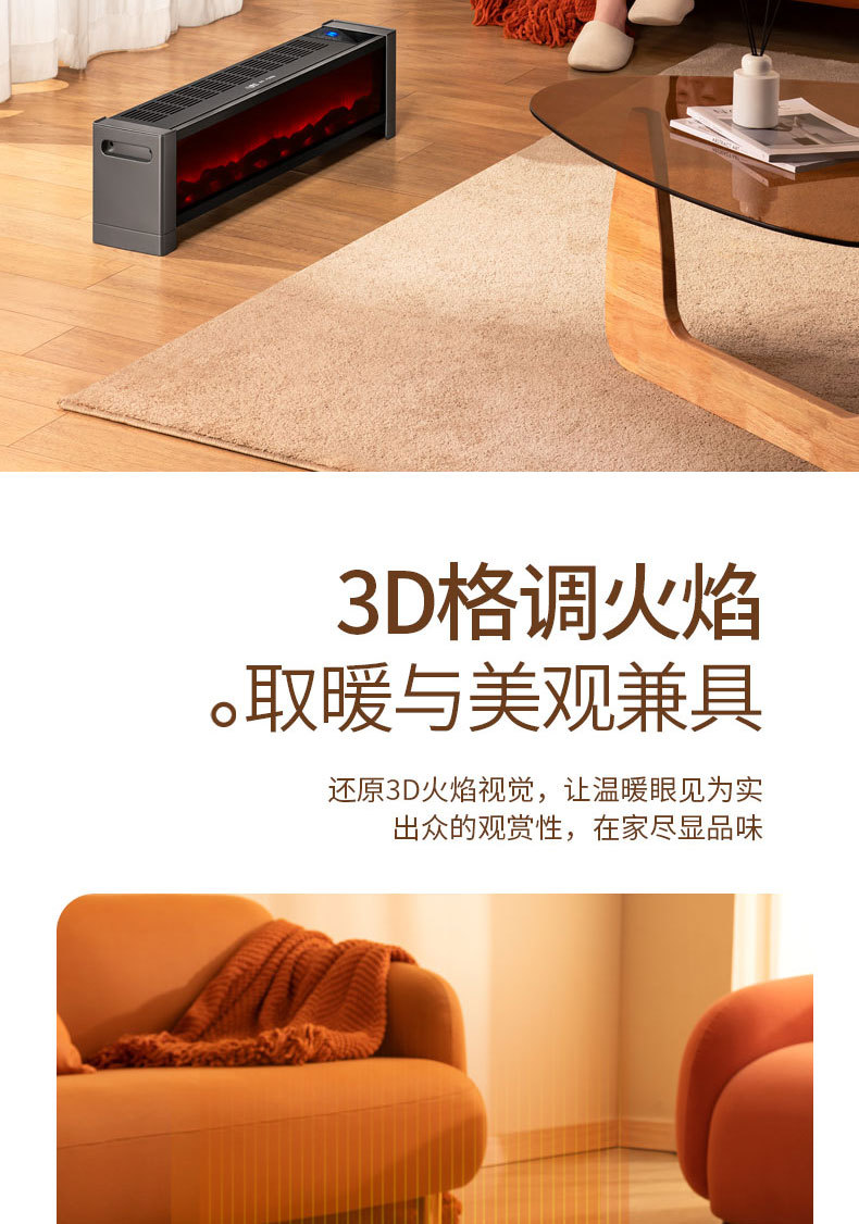 양지 보이스 스커트 히터 가정용 고속 가열 팬 오븐 욕실 3D 시뮬레이션 불꽃 전기 히터스토어 가기