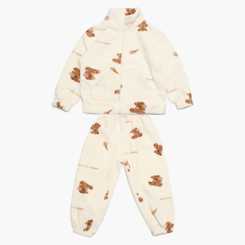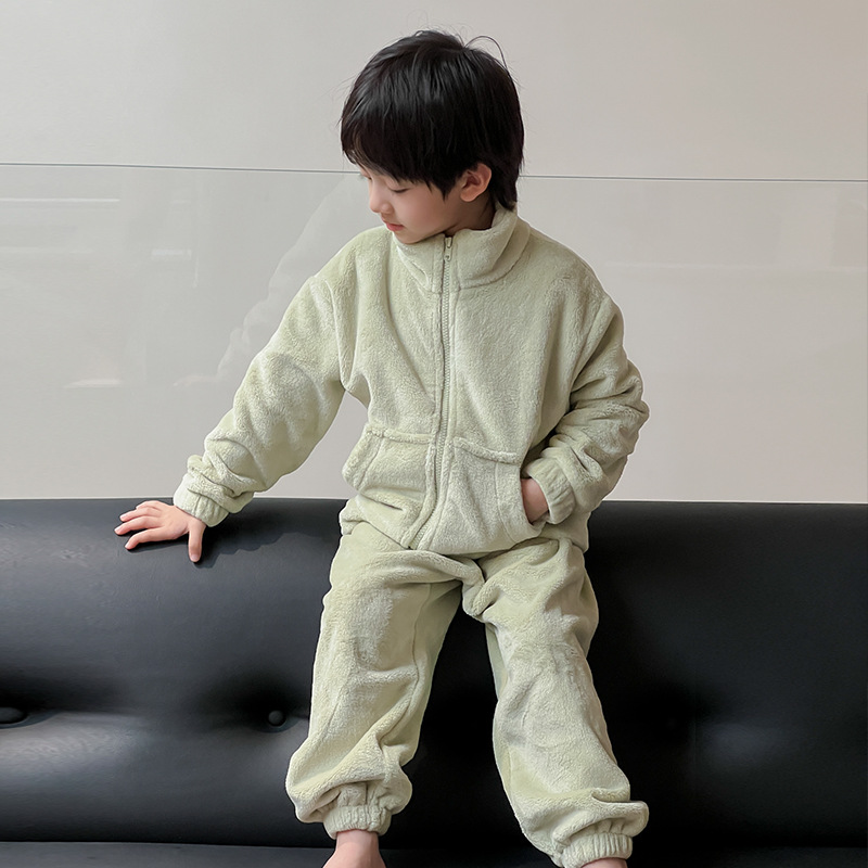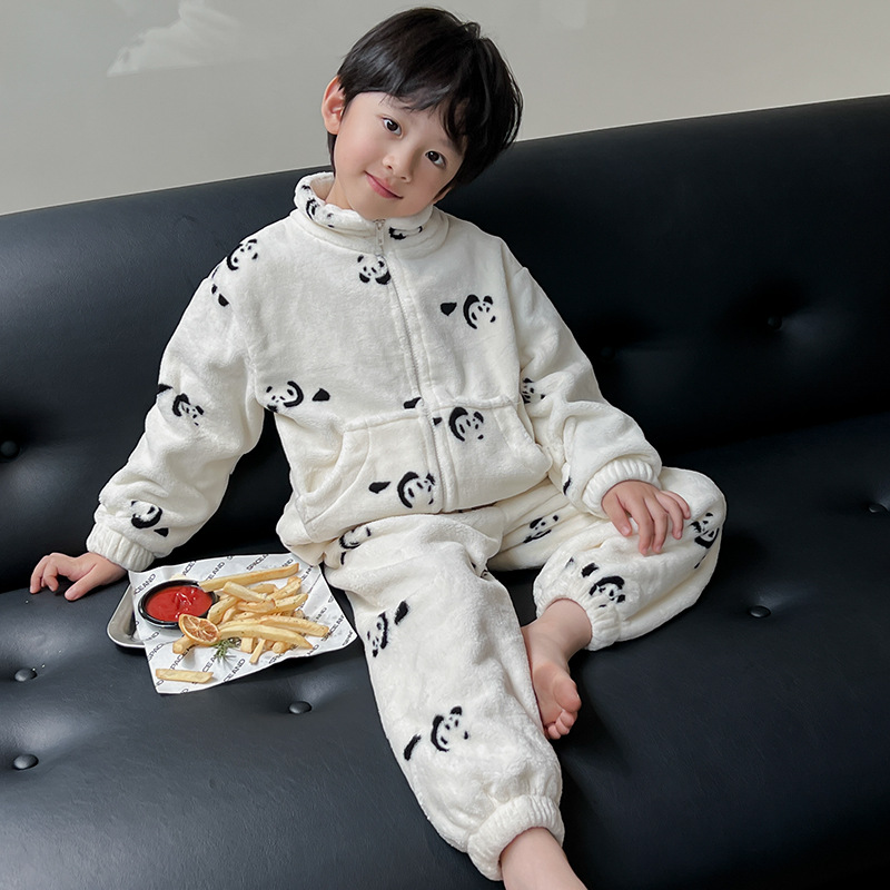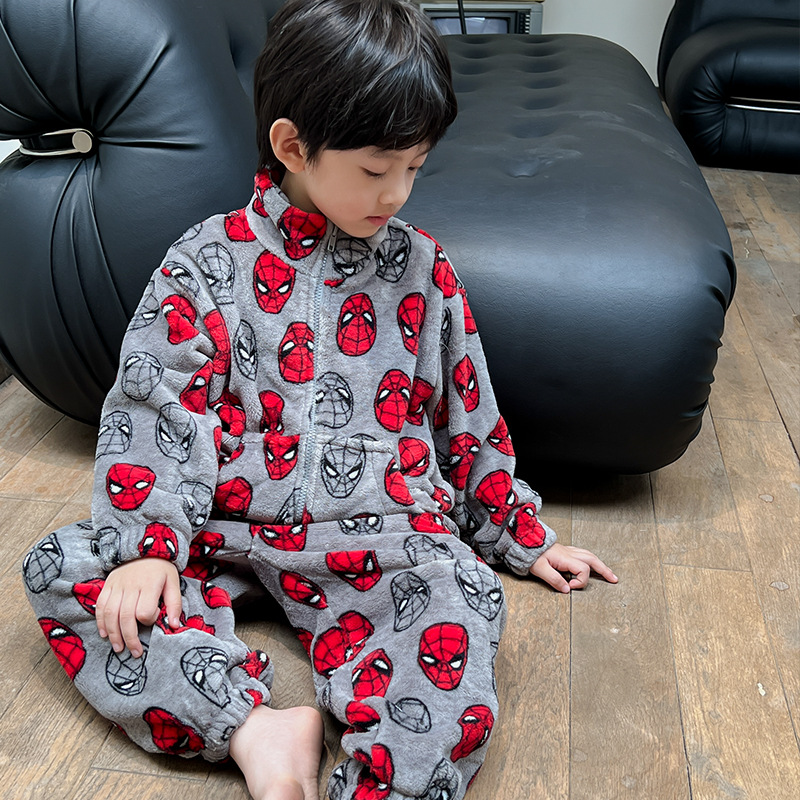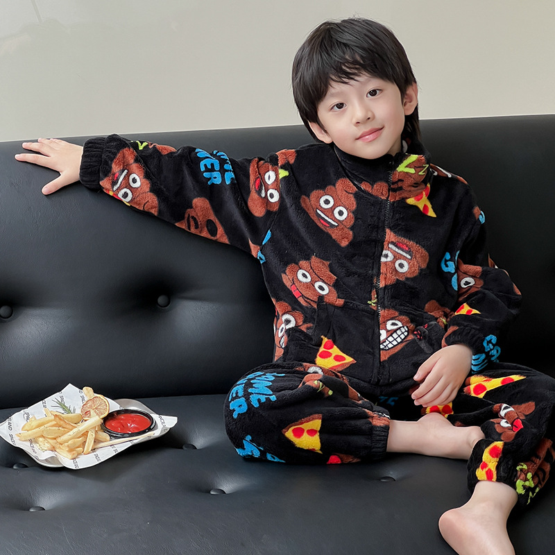 소년 잠옷 겨울 한국 만화 귀여운 따뜻한 플란넬 세트 어린이 두꺼운 봉제 홈 옷