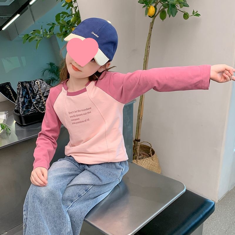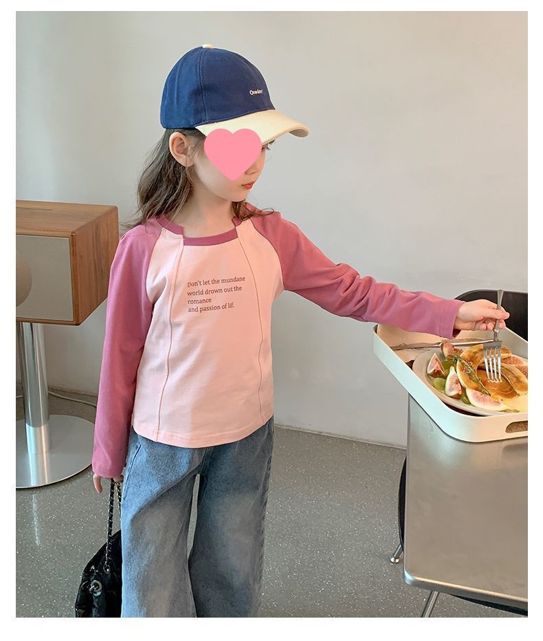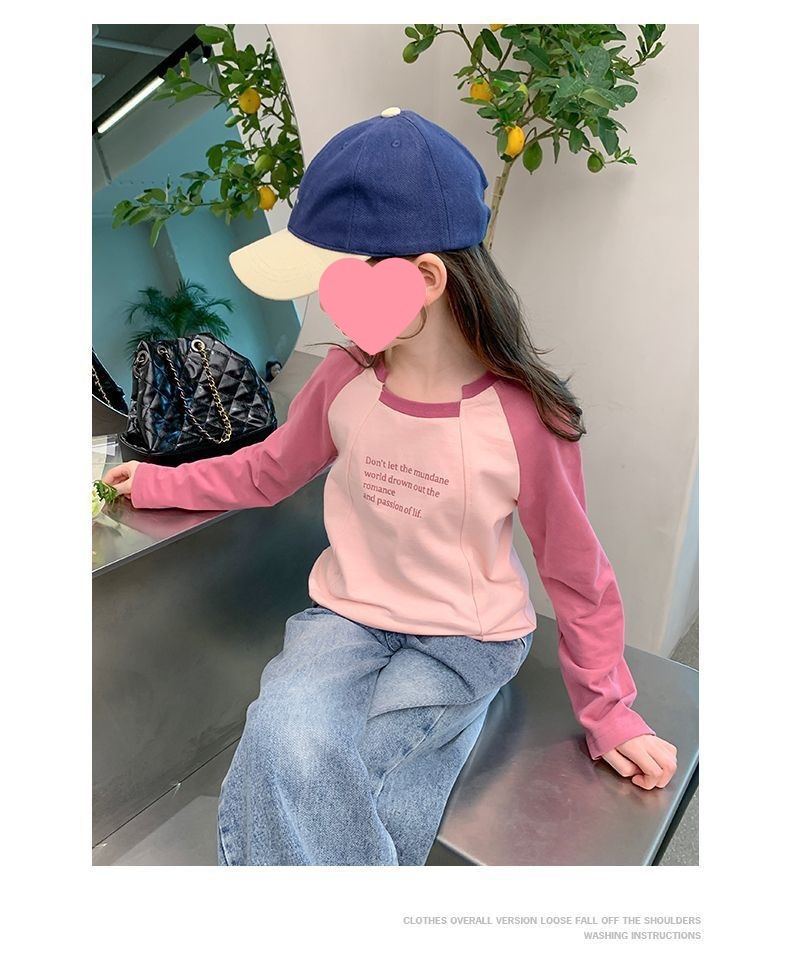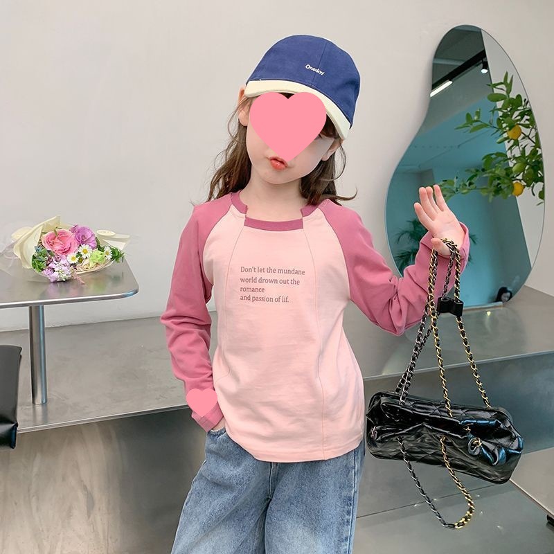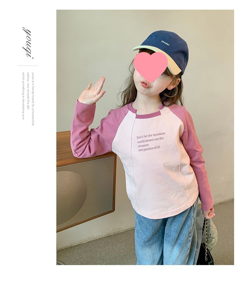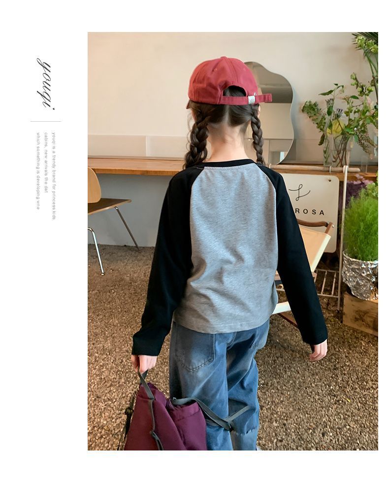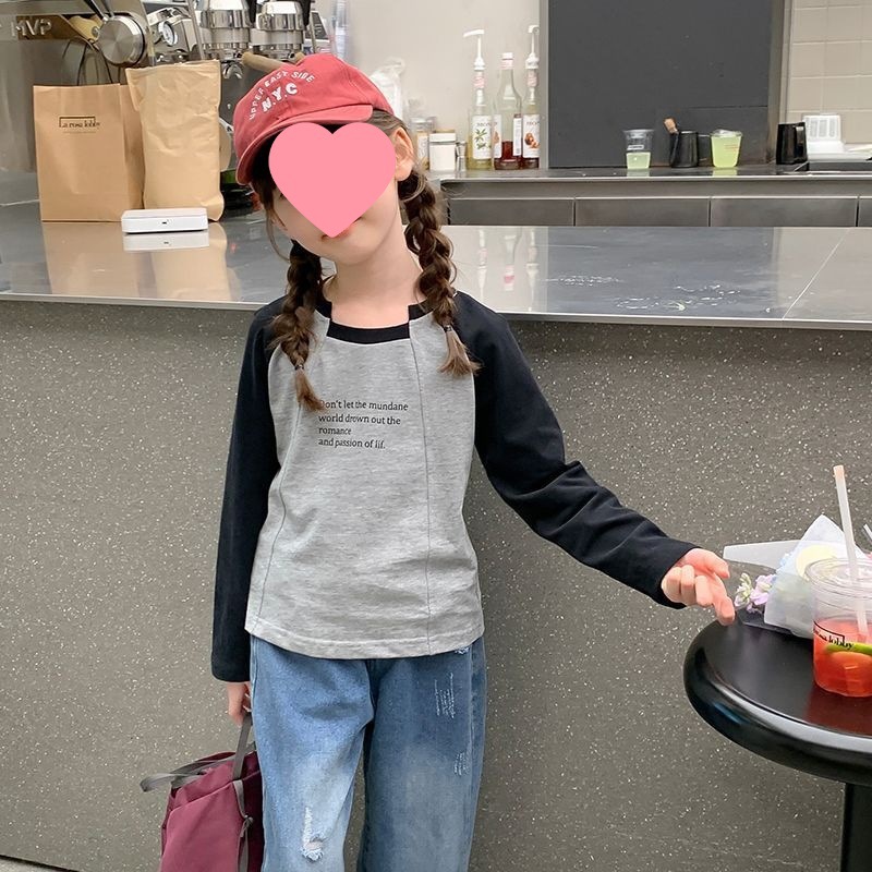 여아용 한국 스타일 캐주얼 만능 상의 긴팔 2024 봄 가을 신상 패션 배색 스타일리시 레터링 이너웨어 트렌디스토어 가기