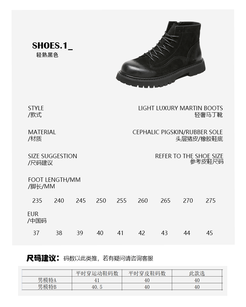 영국 높이 증가 야외 툴링 올매치 정품 가죽 마틴 부츠 2024 가을 청소년 패션 레트로 남성용 부츠 트렌디스토어 가기