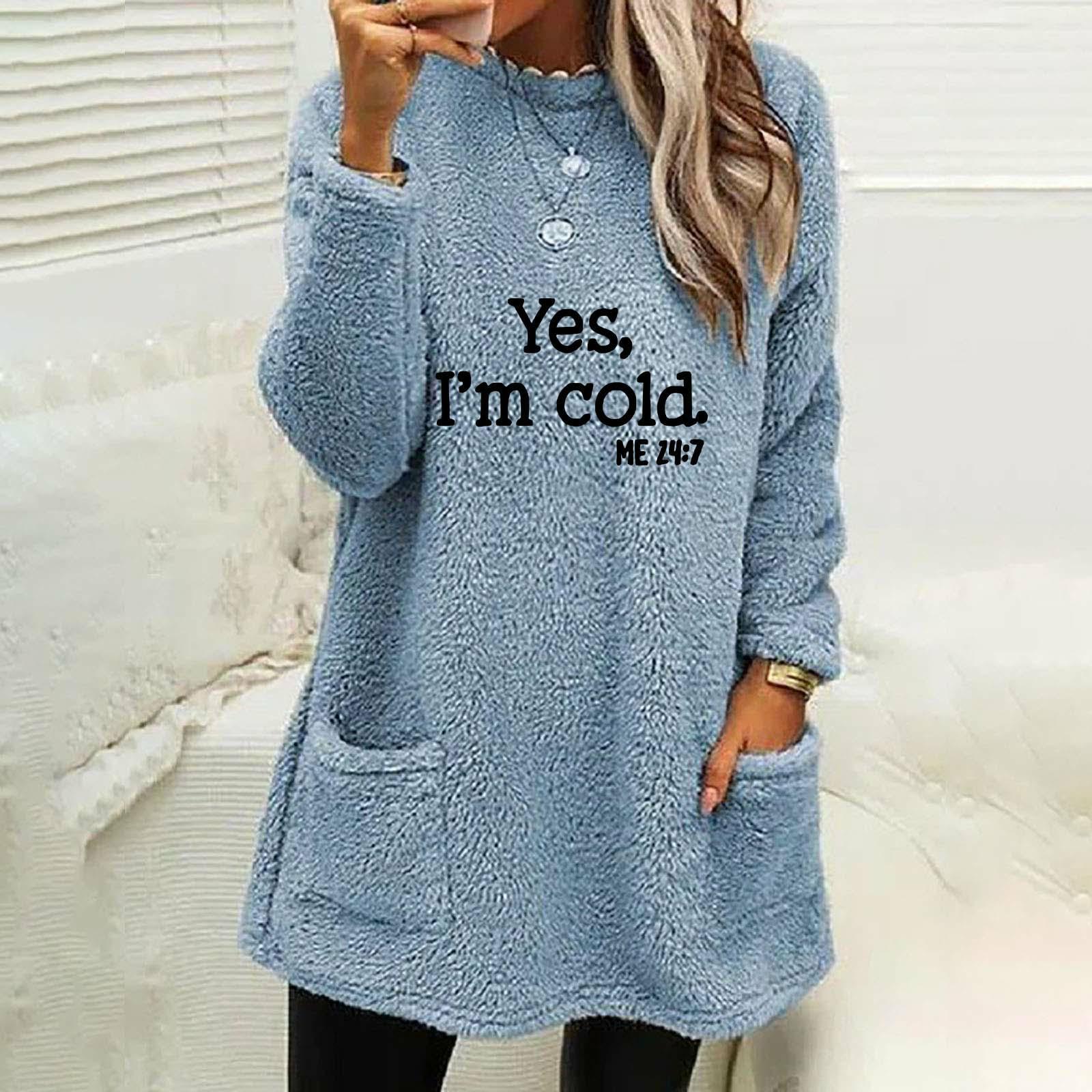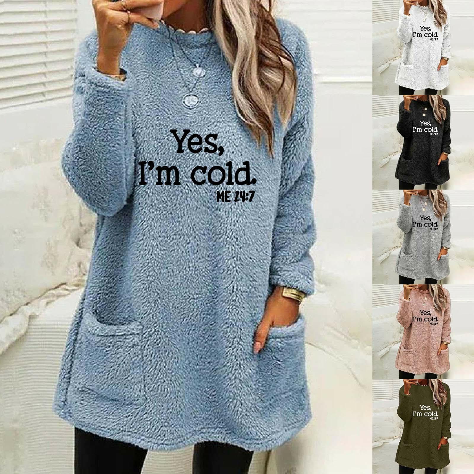 2023 가을과 겨울 크로스 보더 아마존 여성용 새로운 루즈한 긴팔 레터 프린트 양면 양털 포켓 라운드 넥 스웻셔츠스토어 가기