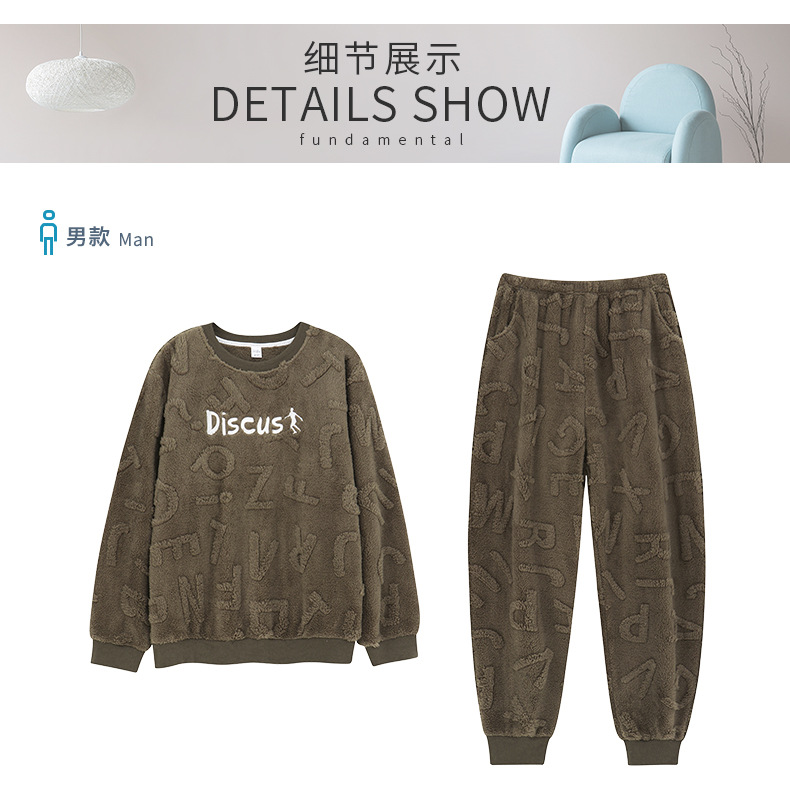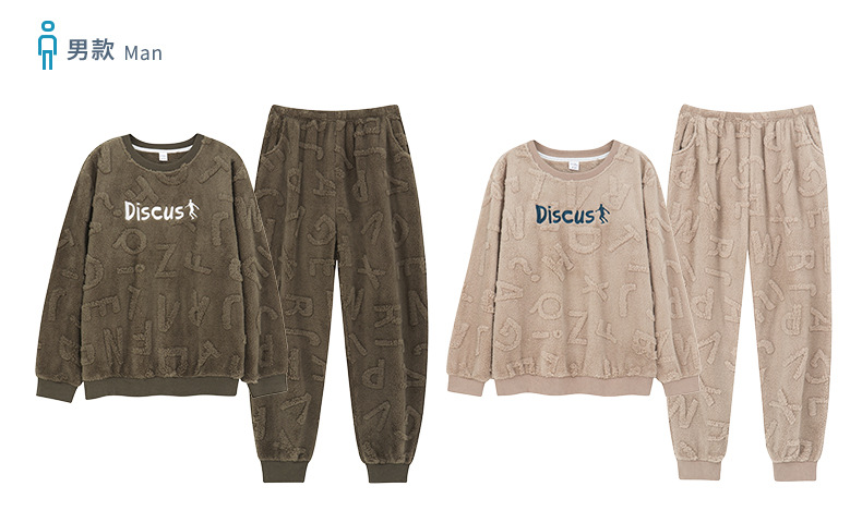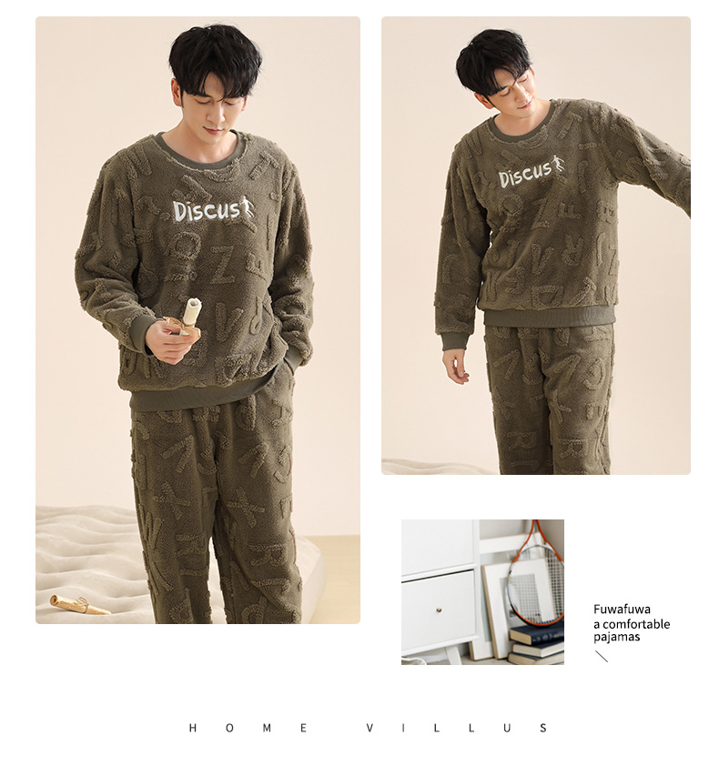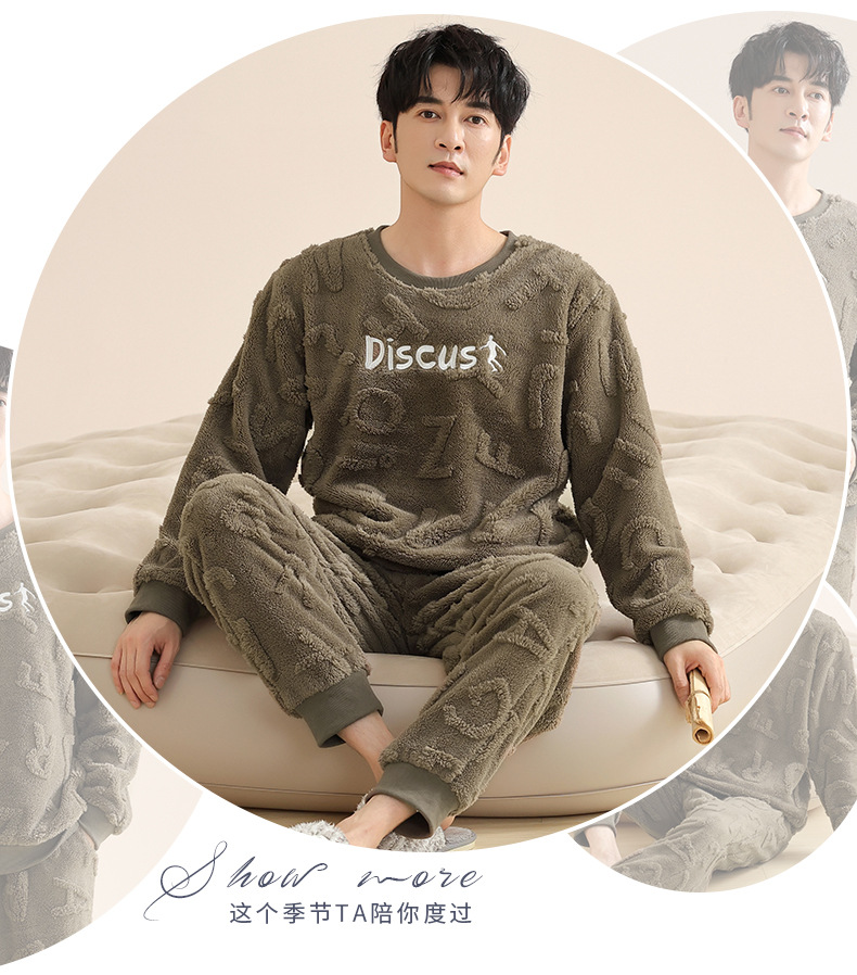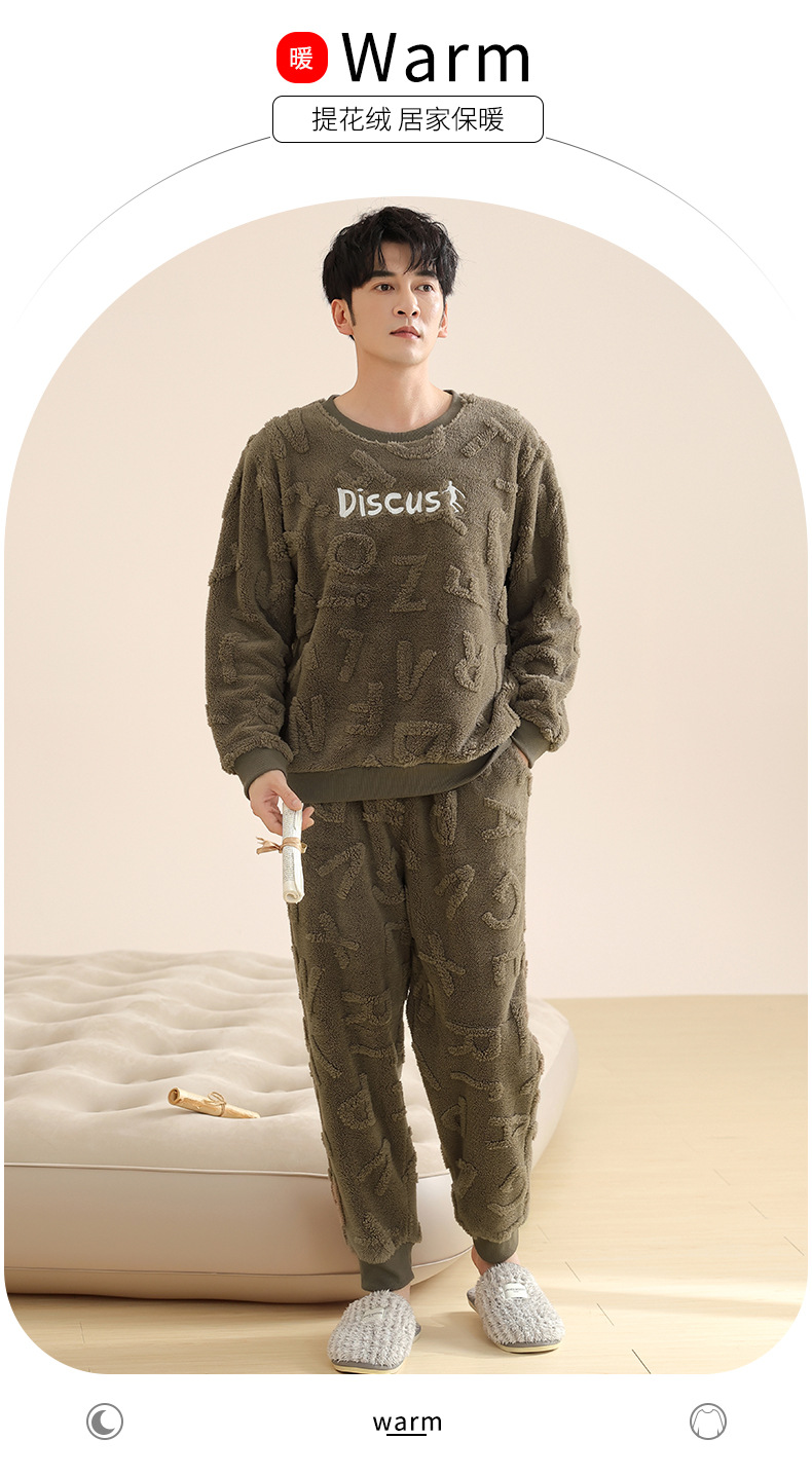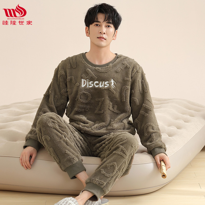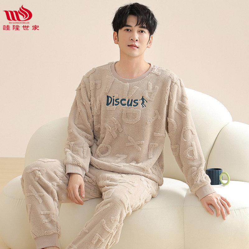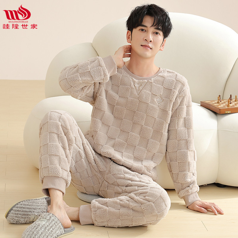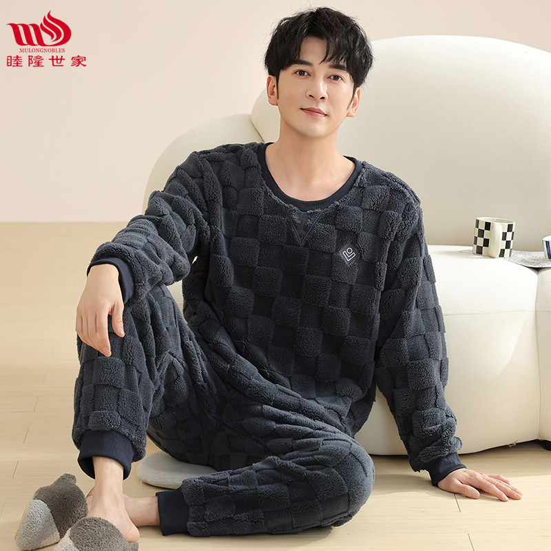 Longshijia 잠옷 남자 겨울 두꺼운 플란넬 플러시 자카드 간단한 캐주얼 라운드 넥 풀오버 세트스토어 가기